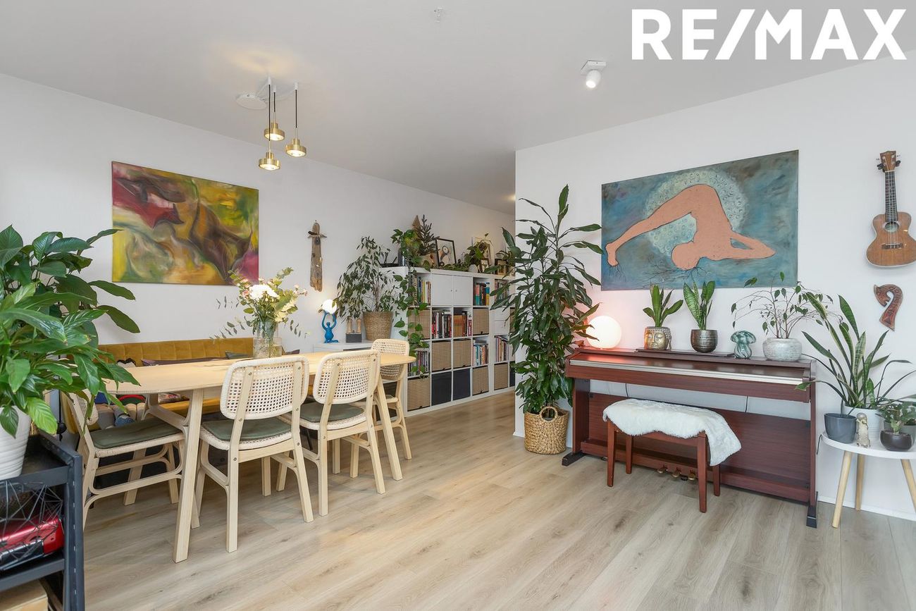 Sameiginlegur stór garður með leiktækjum, sameiginlegt þvottahús, sameiginleg bílastæði, sameiginleg hjóla- og vagnageymsla.