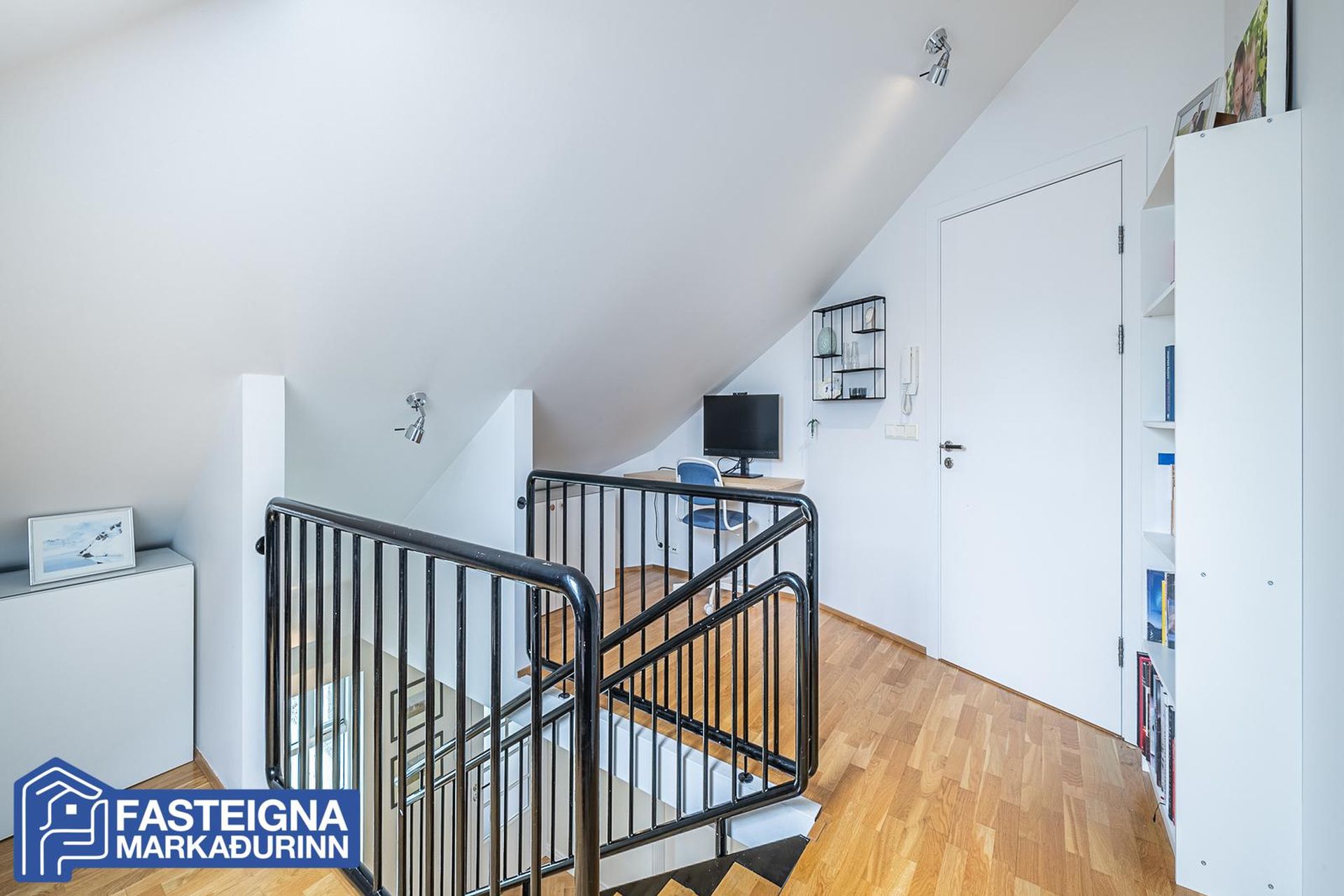 Fasteignamarkaðurinn ehf. s: 570-4500 kynnir til sölu virkilega glæsilega, vel skipulagða og mikið endurnýjaða 159,0 fermetra sérhæð og ris og þar af 23,0 fermetra bílskúr í reisulegu steinhúsi á einstaklega góðum stað við Flókagötu teiknað af Halldóri Jónssyni. Eignin hefur verið mikið endurnýjuð n... Sýna meira