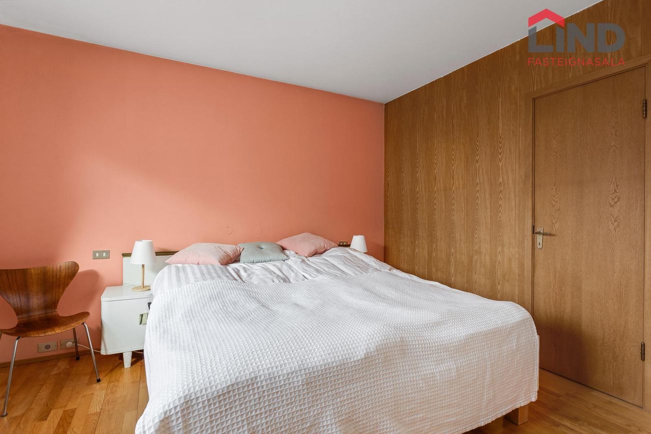 Fimm svefnherbergi. Hjónaherbergi með sér fataherbergi og parketgólfi. Aðrir svefnherbergi með parketgólfi, sum með fataskáp. Eitt herbergi litið inn af forstofu.