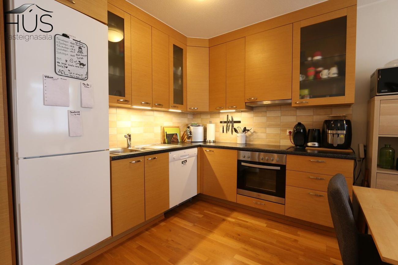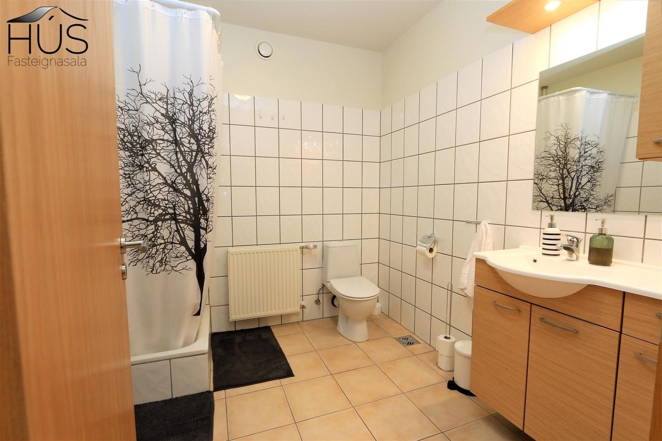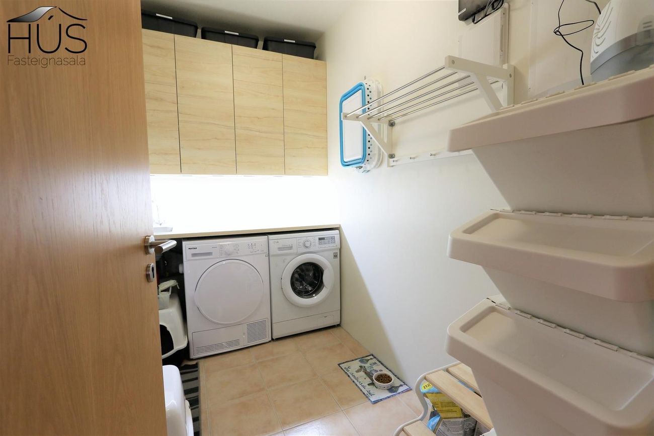 Eignin telur forstofu með flísum á gólfi og fataskáp, gangur með parketi á gólfi, tvö svefnherbergi með parketi á gólfi, annað þeirra með stórum fataskáp og hitt með minni. Rúmgott baðherbergi með flísum á gólfi, innréttingu og sturtuklefa. Þvottahús með flísum á gólfi og innréttingu, samliggjandi stofa og eldhús með parketi á gólfi og góðri spónlagðri innréttingu. Góðar 7,1 fm svalir eru á íbúðinni sem snúa mót suðvestri. Á jarðhæð er 6,5 fm geymsla. Húsið er steypueiningahús einangrað að utan með viðhaldslítilli álklæðningu.
