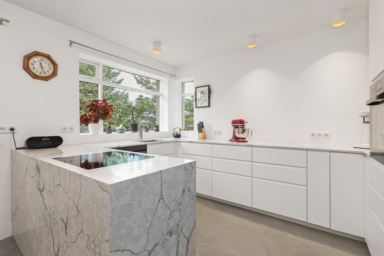 Nýtt eldhús (2023-2024) með microcementgólfi, nýjum vatns- og raflagnirum, heimilistækjum, kvars borðplötu og niðurföldu helluborði.