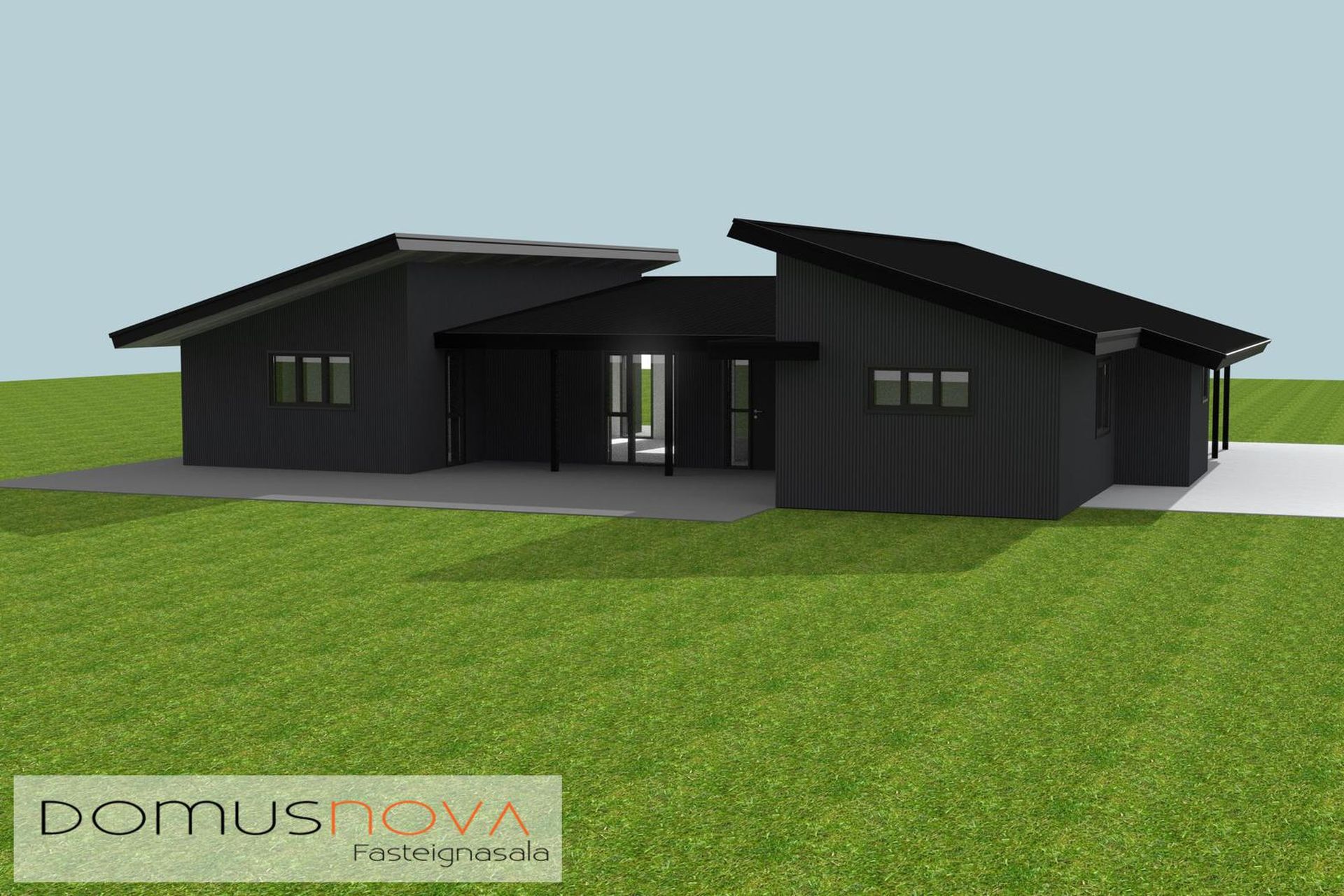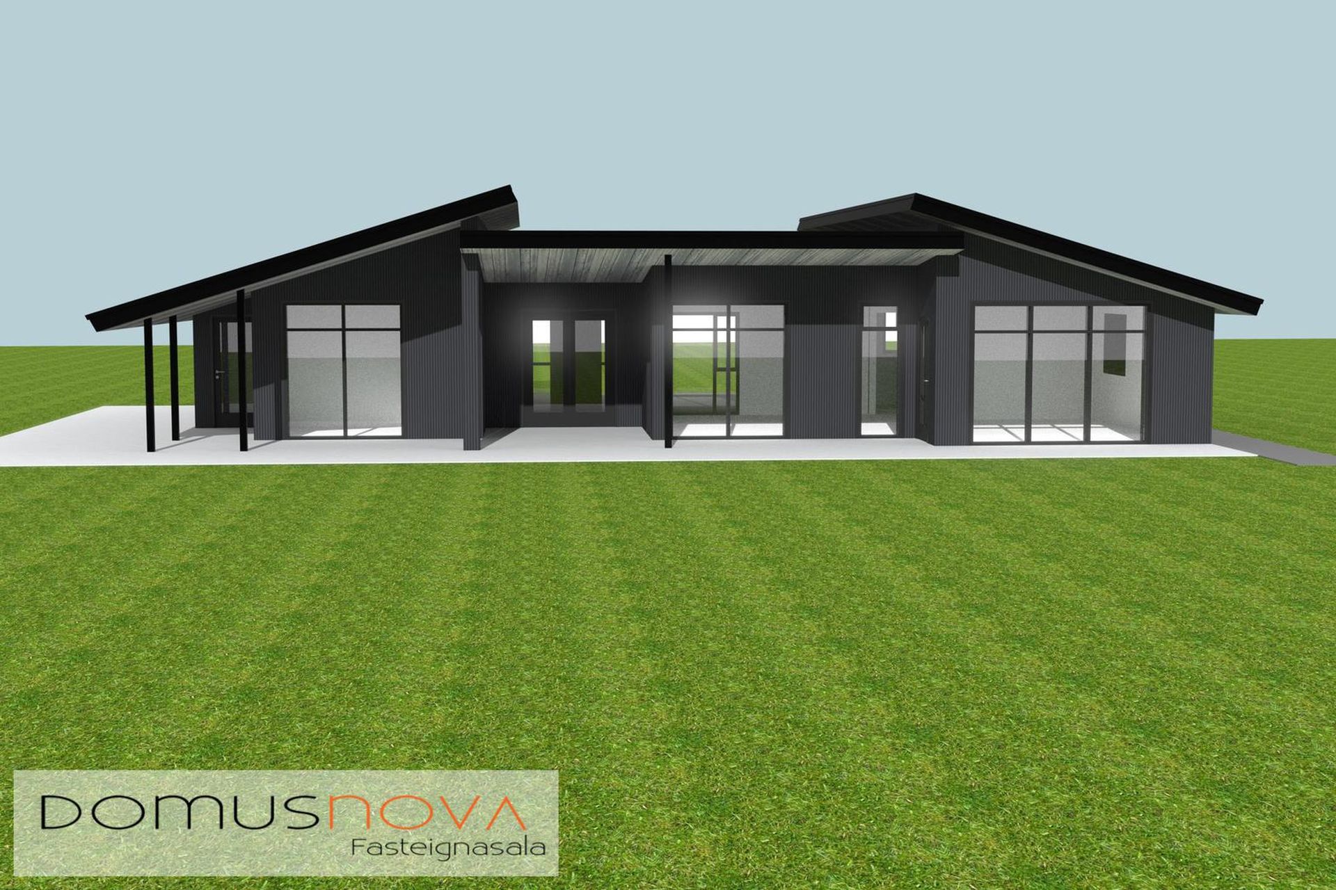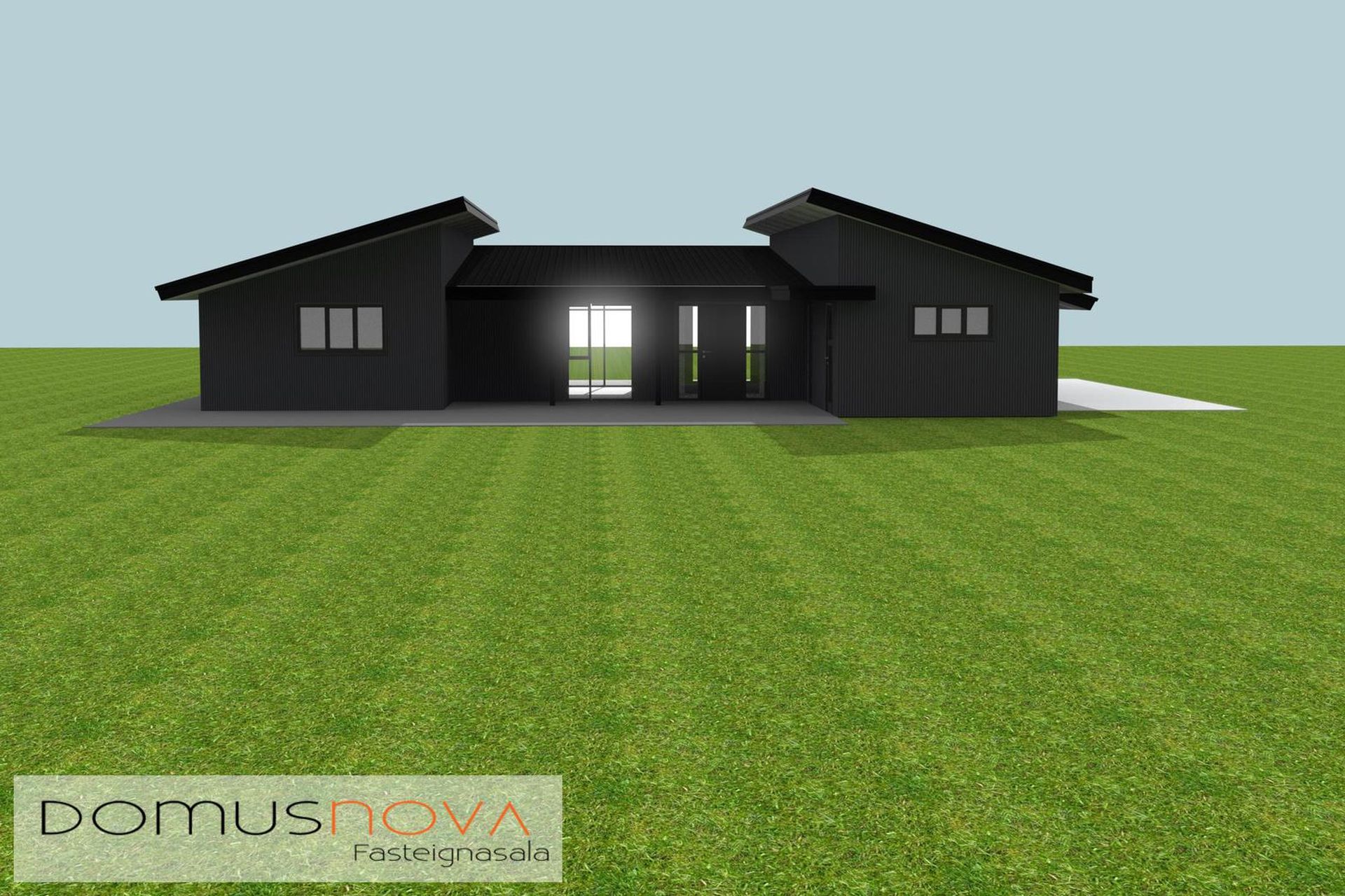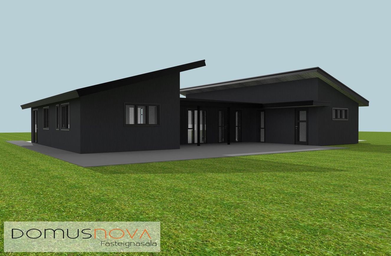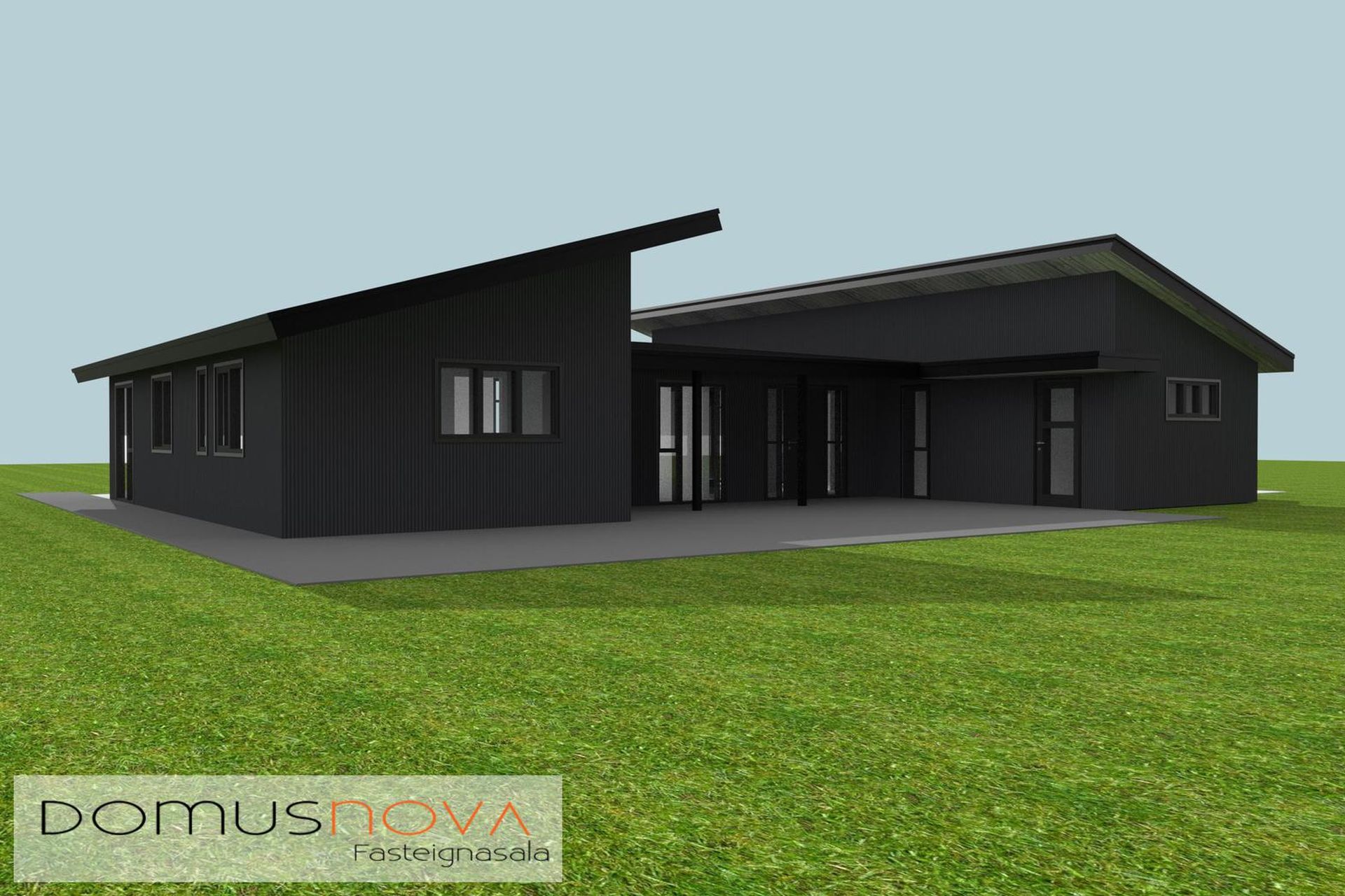 150 fm heilsárshús með þremur svefnherbergjum, tveimur baðherbergjum og 215 fm þaki sem nýtist sem útisvæði. Húsið með RAL 7021 lituðum gluggum bæði að innan og utan.