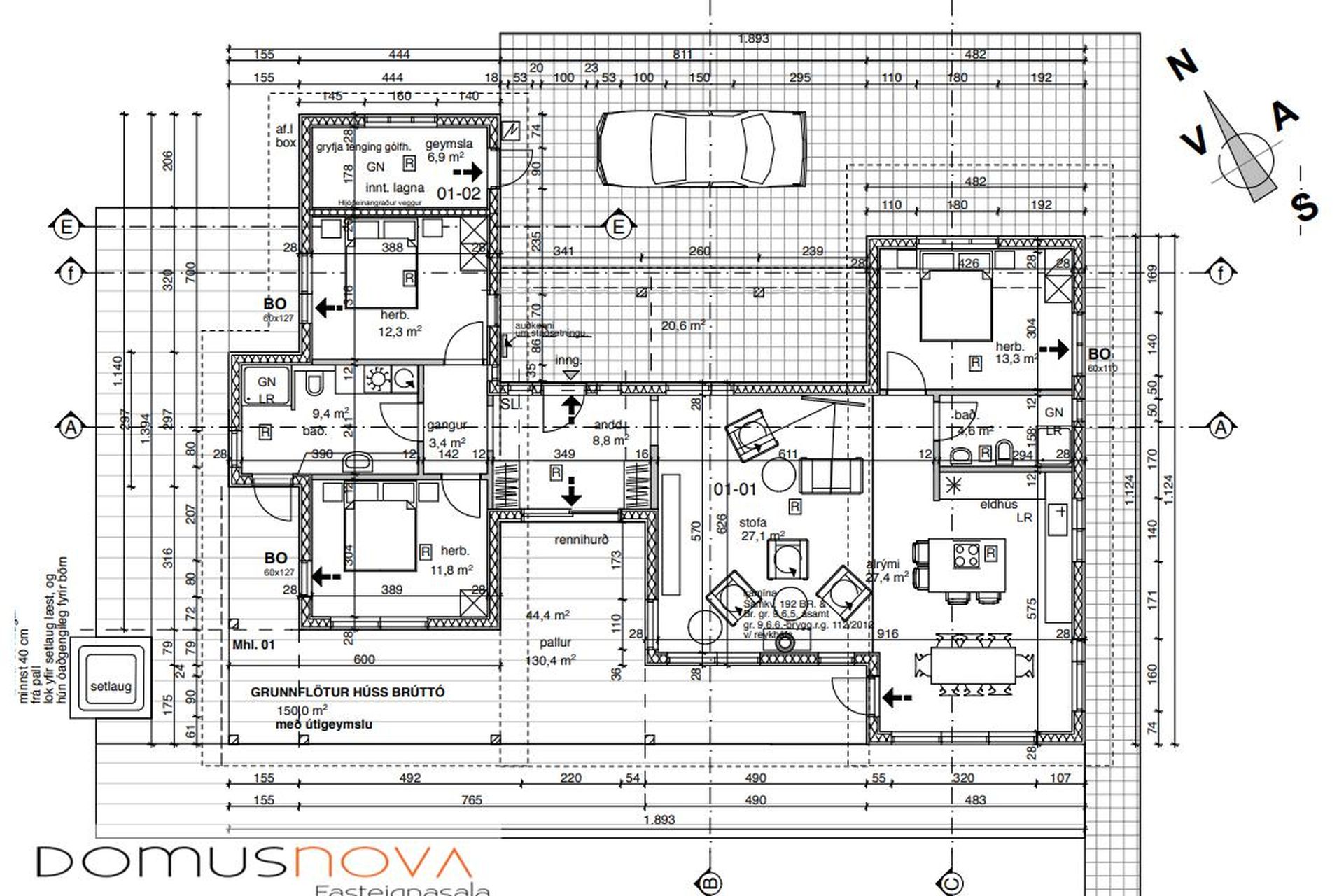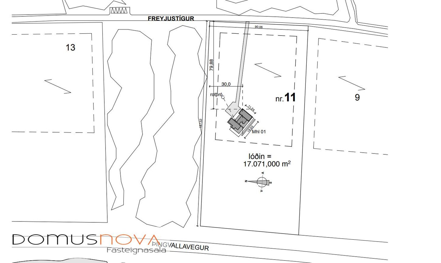 17.071 fm lóð með byggingarleyfi fyrir 150 fm hús, fjögur herbergi, tvö baðherbergi, stórglæsilegir gluggar með þreföldu gleri.