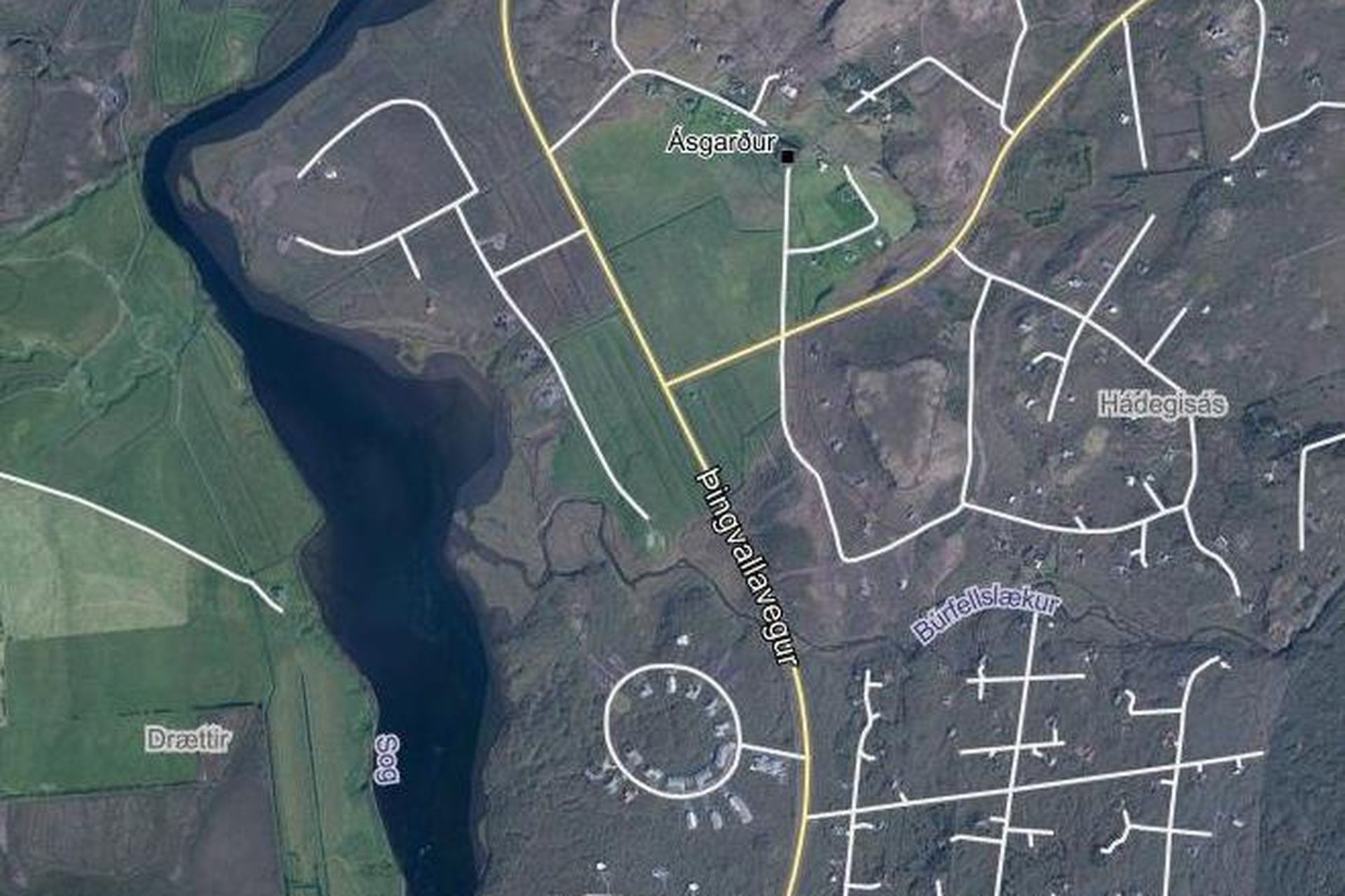 Nálægt náttúru í Grímsnesi með víðsýni. Vegaframkvæmdir við Freyjustíg í gangi.