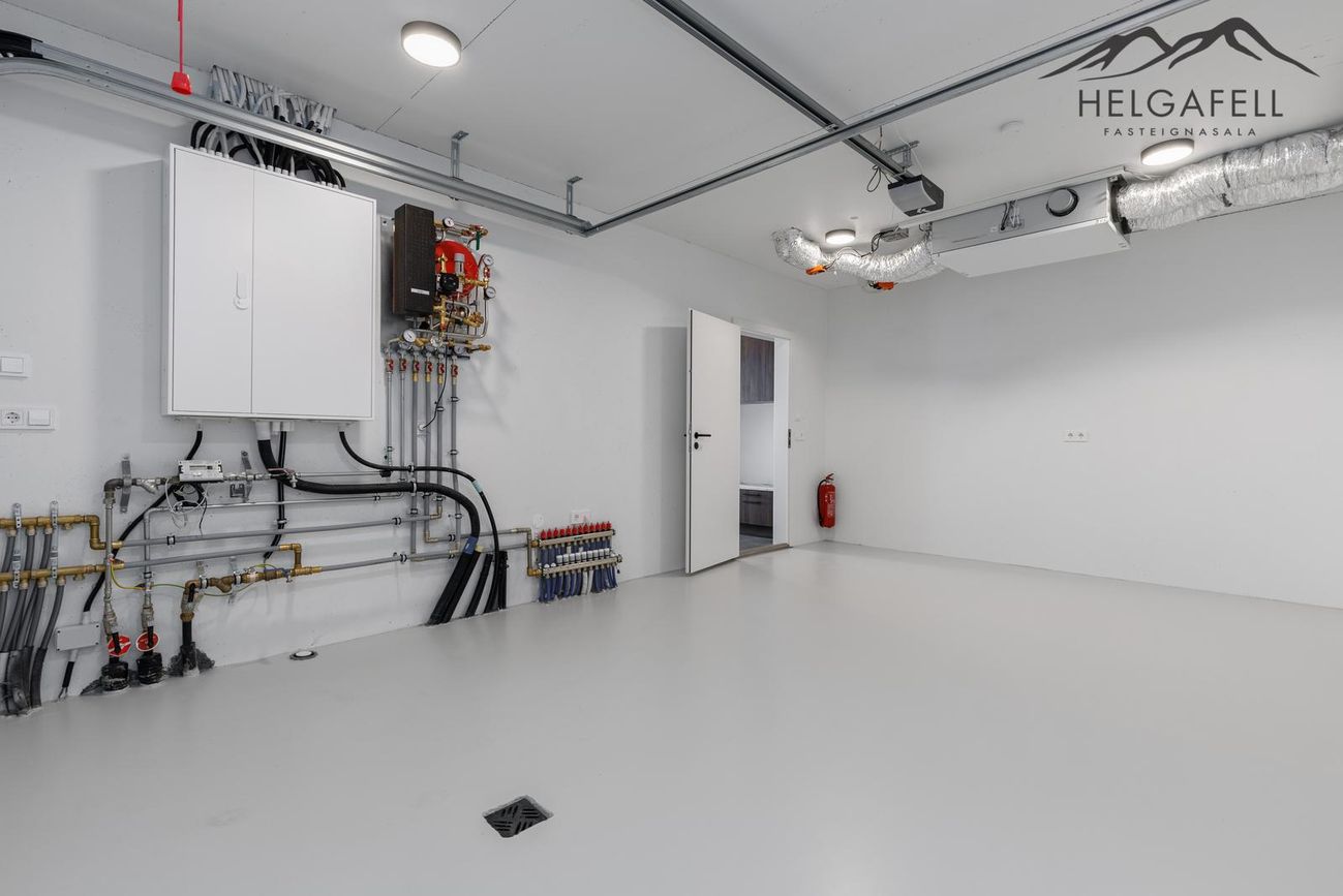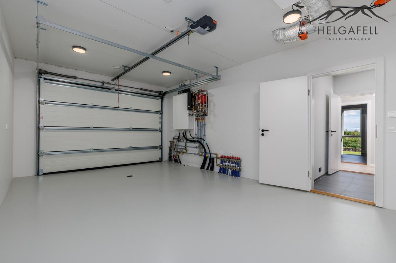 Bílskúr: Stærð 27,5 fm, rafdrifin opnun er á bílskúrshurð, innangengt í þvottahús, loftskipti kerfi, inntök veitna er í bílskúr, rafmagnstafla og gólfhitagrind,