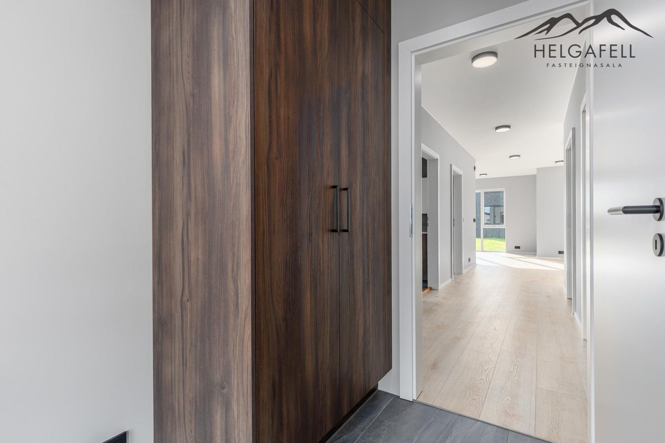 Nánari lýsing:Anddyri: Rúmgott með brúnum fataskáp, flísar á gólfi.