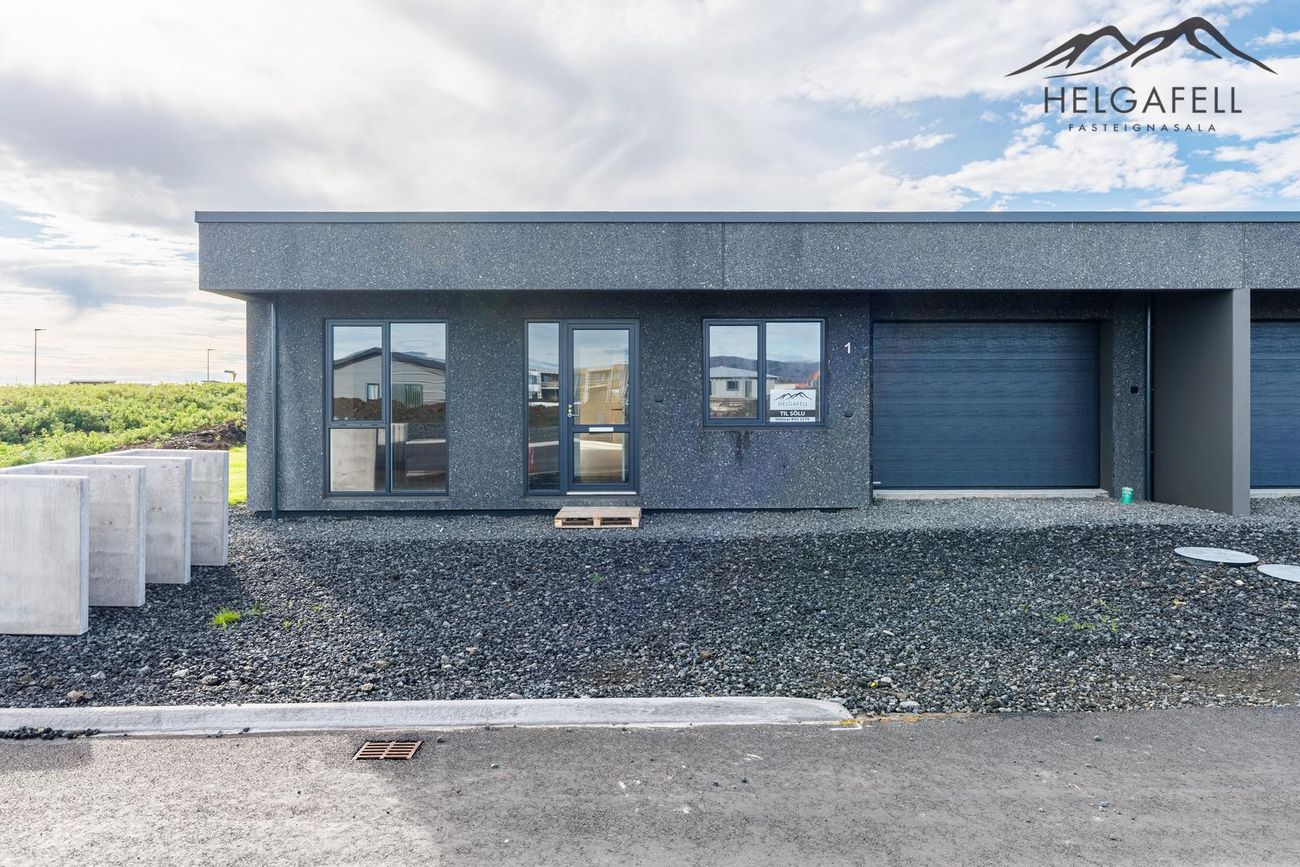 Helgafell fasteignasala og Hólmar Björn Sigþórsson löggiltur fasteignasali kynna í einkasölu Fríðugötu 1, 815 Þorlákshöfn:Nýtt og glæsilegt 4ra herbergja parhús með innbyggðum bílskúr. Birt stærð eignar samkvæmt fasteignaskrá HMS er 150,4 fm og þar af er íbúðarhluti 122,9 fm og innbyggður bílskúr 27,5 fm. Húsið er vel staðsett í Vesturbyggð þar sem sem er nýtt hverfi í vestur jaðri Þorlákshafnar og stutt er í leikskólann Hraunheimar sem er nýr leikskóli í hverfinu, grunnskóla, verslanir, almenna þjónustu og útivistarsvæði.
