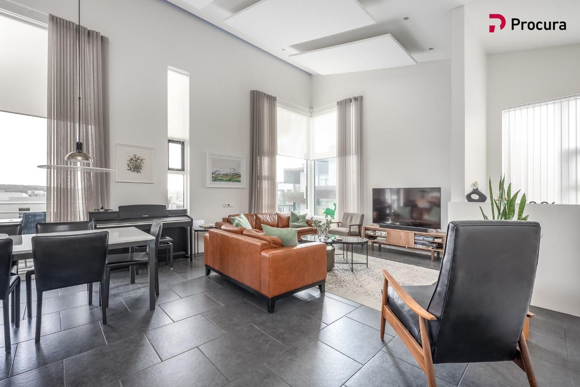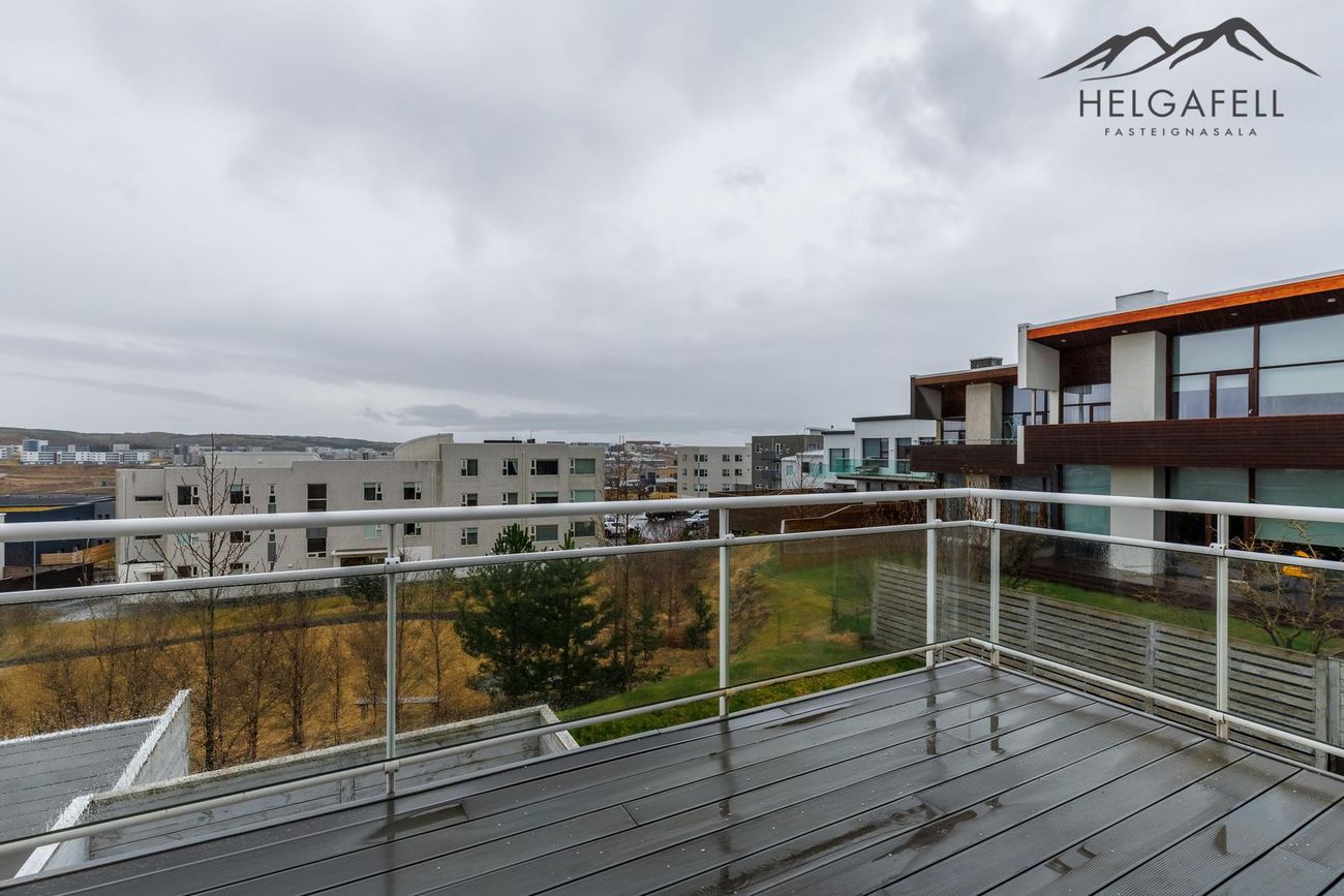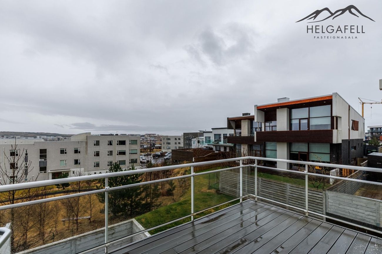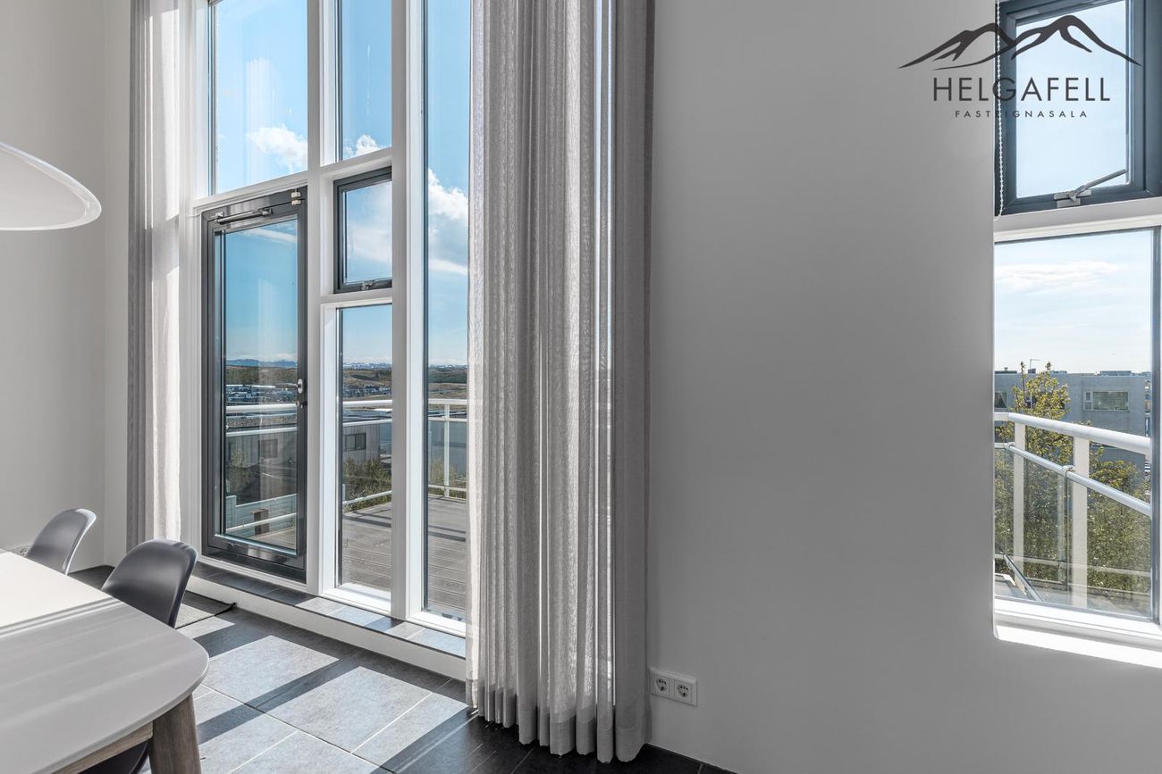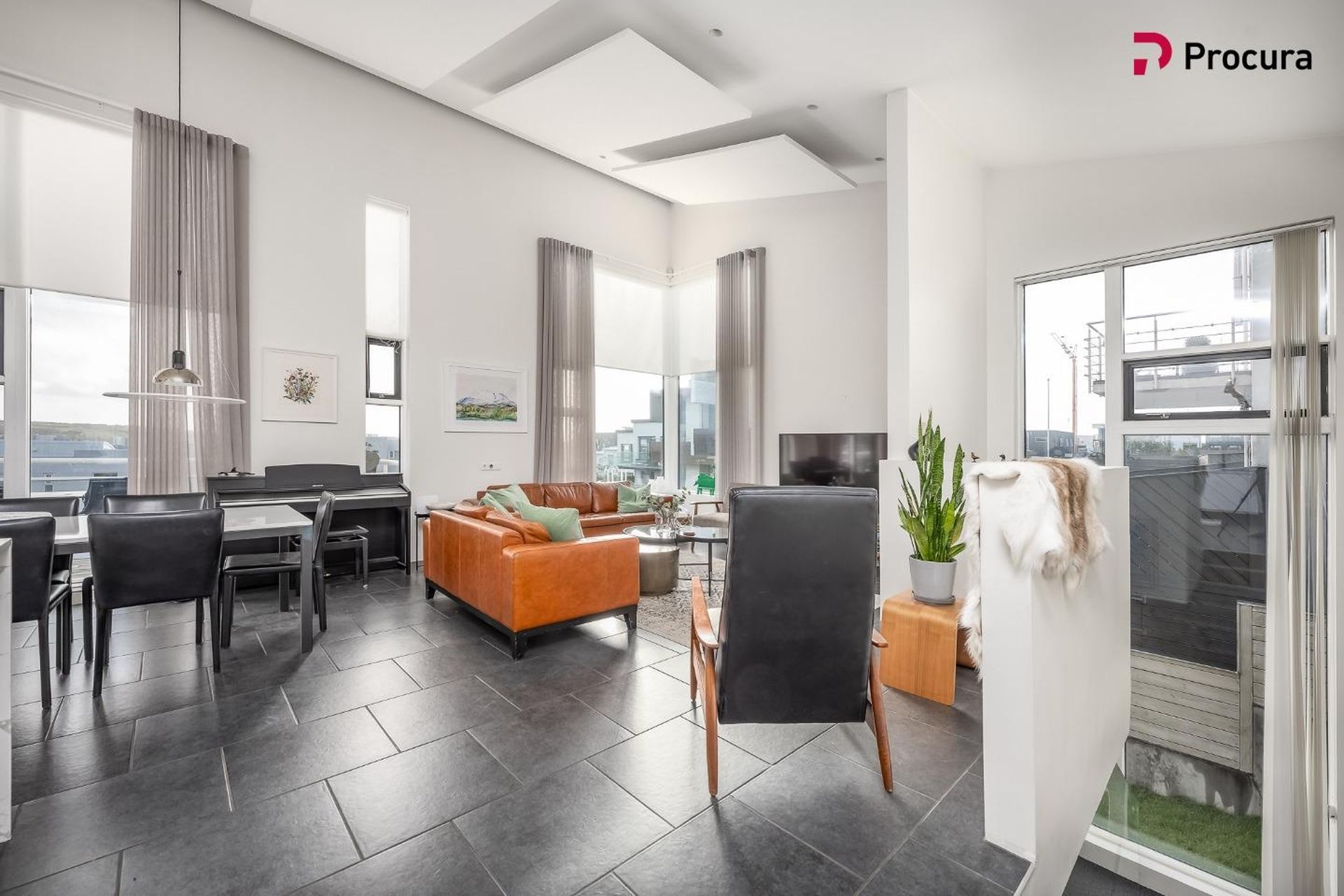 Stofa/Borðstofa: Stofan og borðstofan eru í samhengi við eldhúsið. Frá borðstofunni er gengið út á stórar suður svalir sem bjóða upp á glæsilegt útsýni að Reynisvatnsás. Setustofan er í framhaldi af borðstofunni, þar sem há lofthæðin og gólfsíðu gluggarnir skapa opna og loftkennda stemmingu. Innfelld lýsing og hulin birtu í loftklæðningu auka enn frekar þægindin.