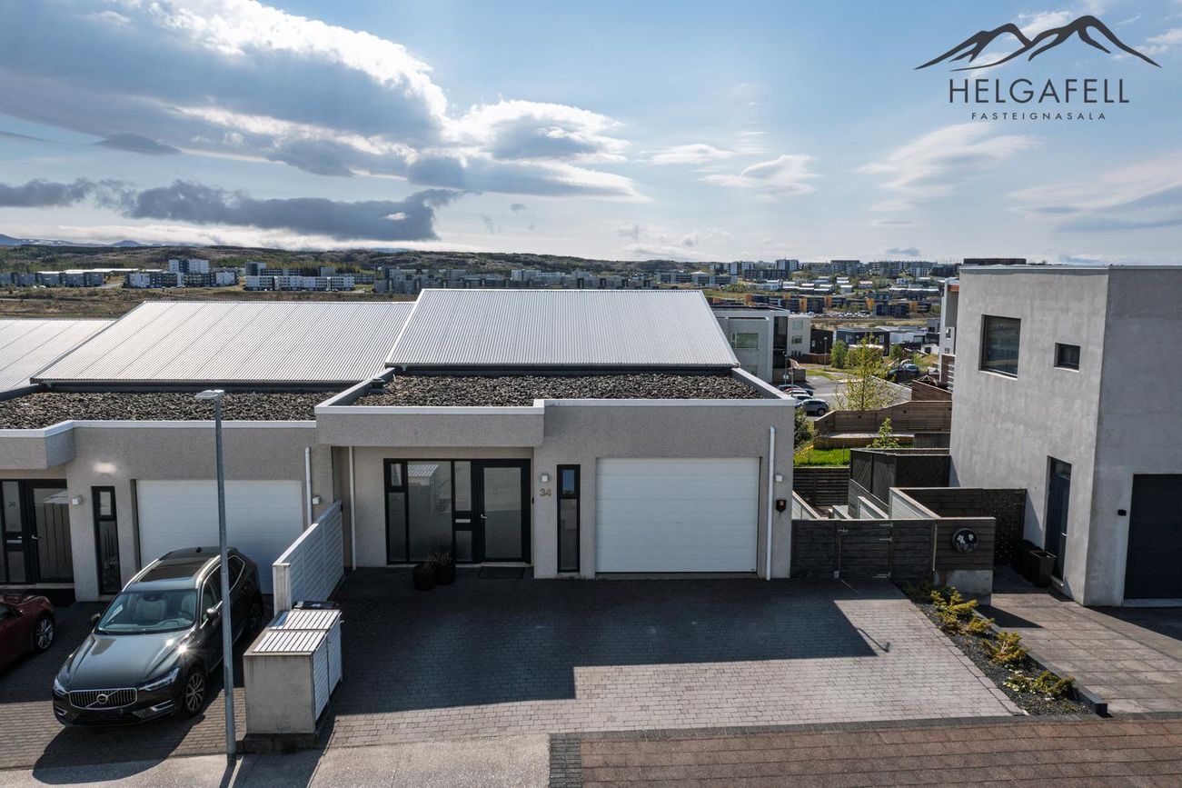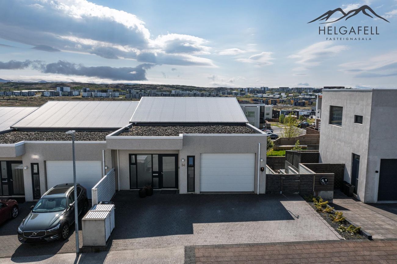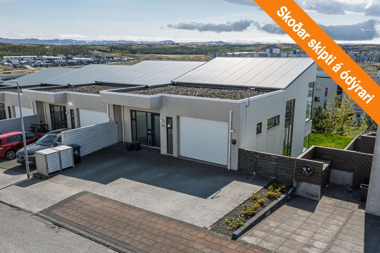 Helgafell fasteignasala kynnir til sölu fallegt endaraðhús við Friggjarbrunn í Reykjavík.Friggjarbrunnur 34, 113 Reykjavík er fallegt og vel skipulagt endaraðhús á tveimur hæðum með innbyggðum bílskúr á skemmtilegum og fjölskylduvænum stað í Úlfarsárdal. Grænt svæði bakvið húsið. Um er að ræða 224,4 fermetra eign sem byggt er árið 2008 og skiptist forstofu, fjögur svefnherbergi, tvö baðherbergi og rúmgóðri stofu með aukinni lofthæð, stórum gluggum og útsýni til suðurs. Gólfihiti er í öllu húsinu og innfelld lýsing er í flestum rýmum.
