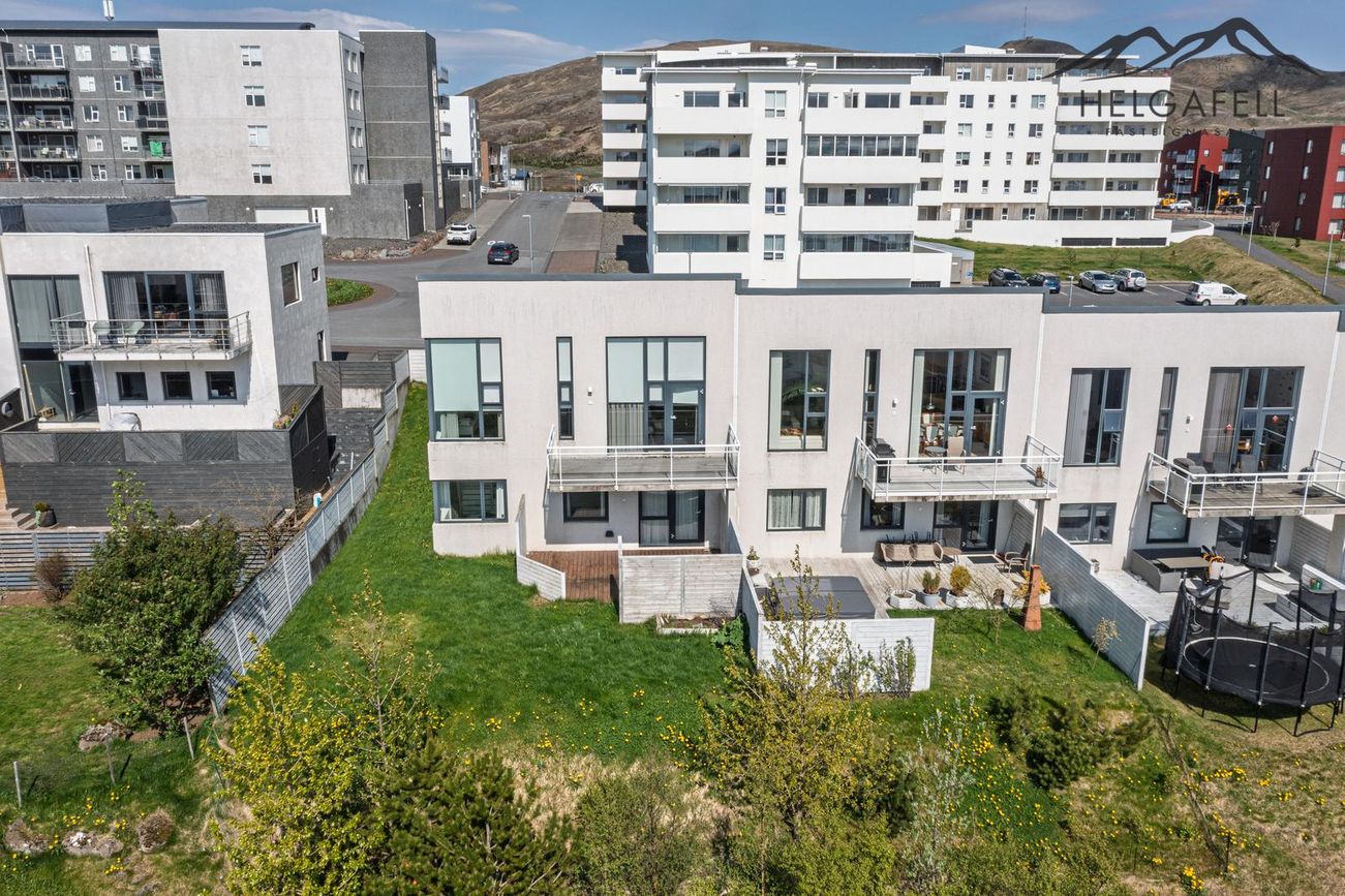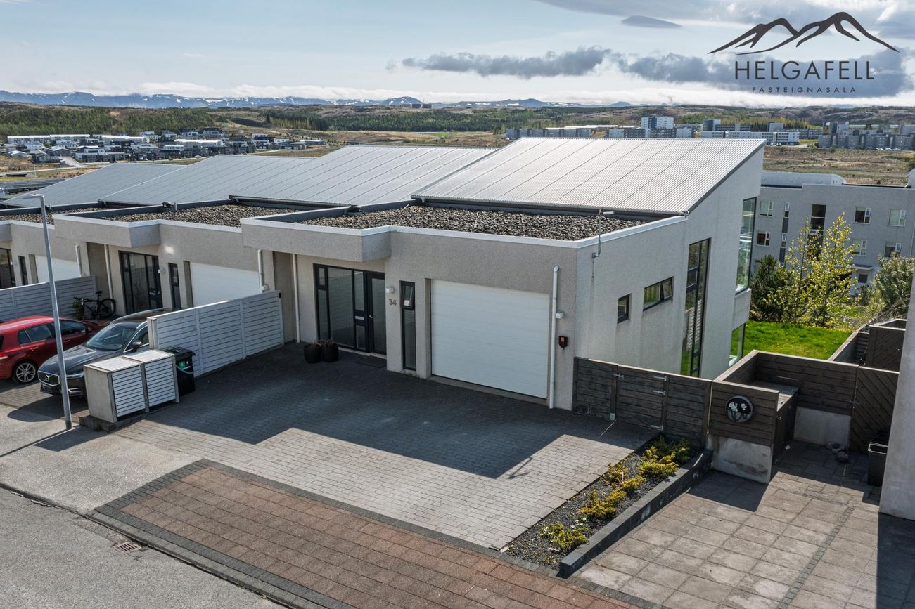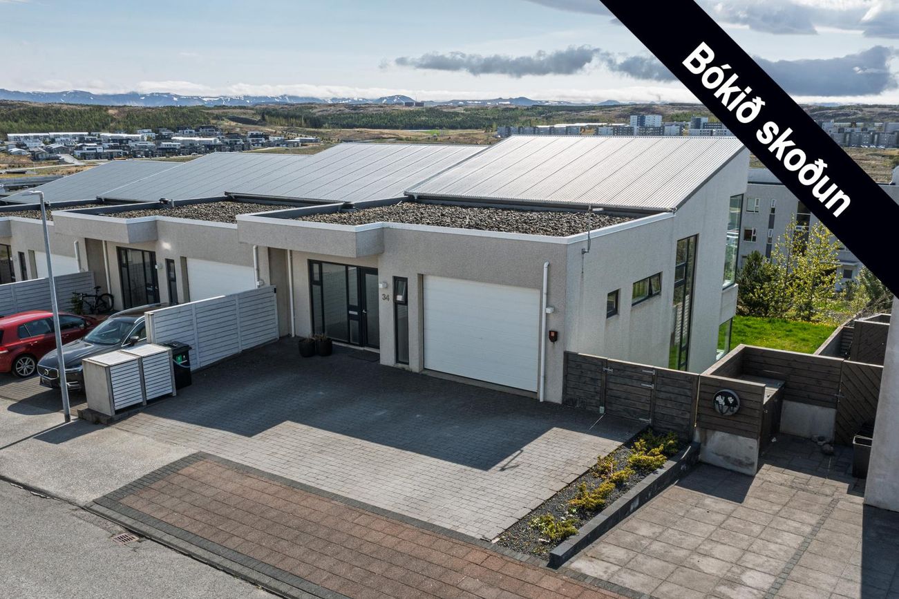 Helgafell fasteignasala kynnir til sölu fallegt endaraðhús við Friggjarbrunn í Reykjavík.Friggjarbrunnur 34, 113 Reykjavík er fallegt og vel skipulagt endaraðhús á tveimur hæðum með innbyggðum bílskúr á skemmtilegum og fjölskylduvænum stað í Úlfarsárdal. Grænt svæði bakvið húsið. Um er að ræða 224,4 fermetra eign sem byggt er árið 2008 og skiptist forstofu, fjögur svefnherbergi, tvö baðherbergi og rúmgóðri stofu með aukinni lofthæð, stórum gluggum og útsýni til suðurs. Gólfihiti er í öllu húsinu og innfelld lýsing er í flestum rýmum.