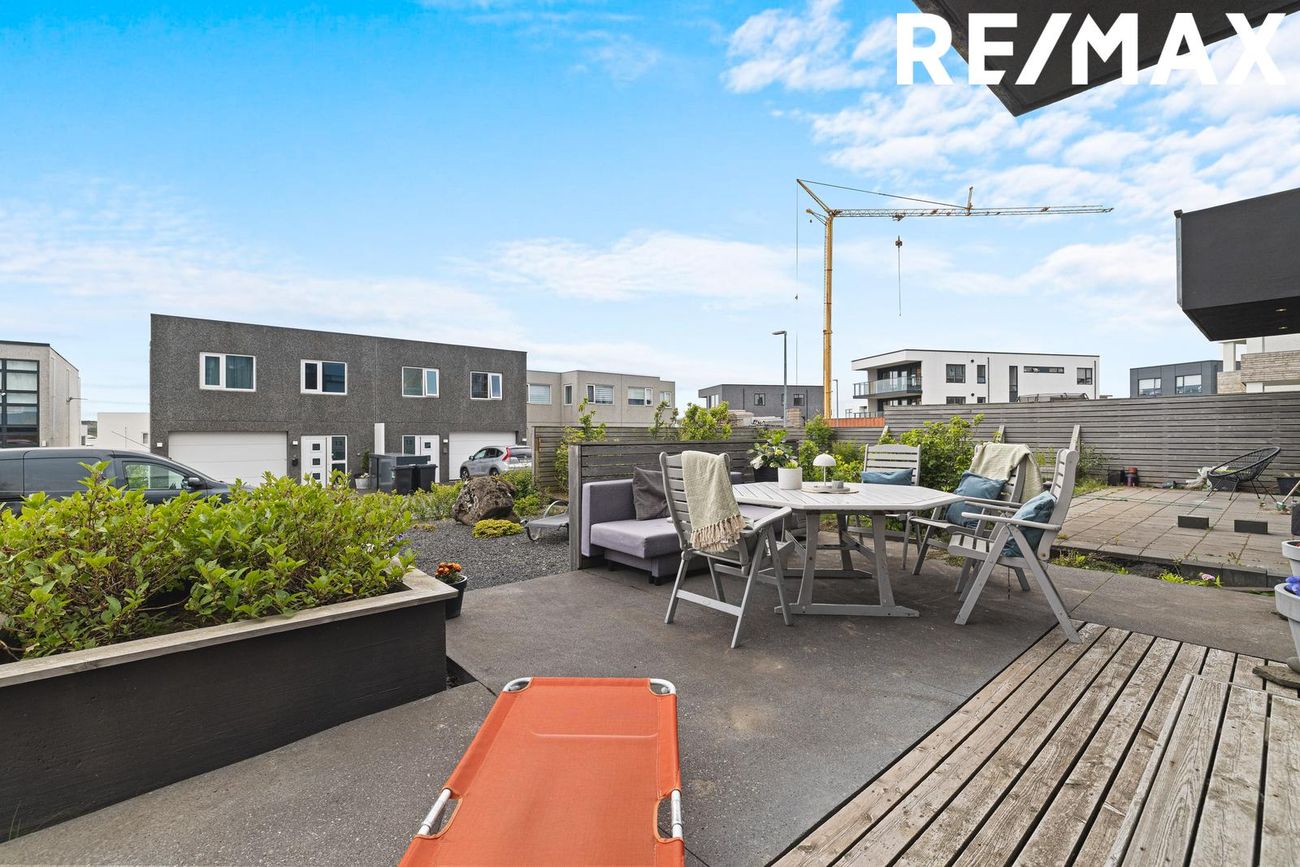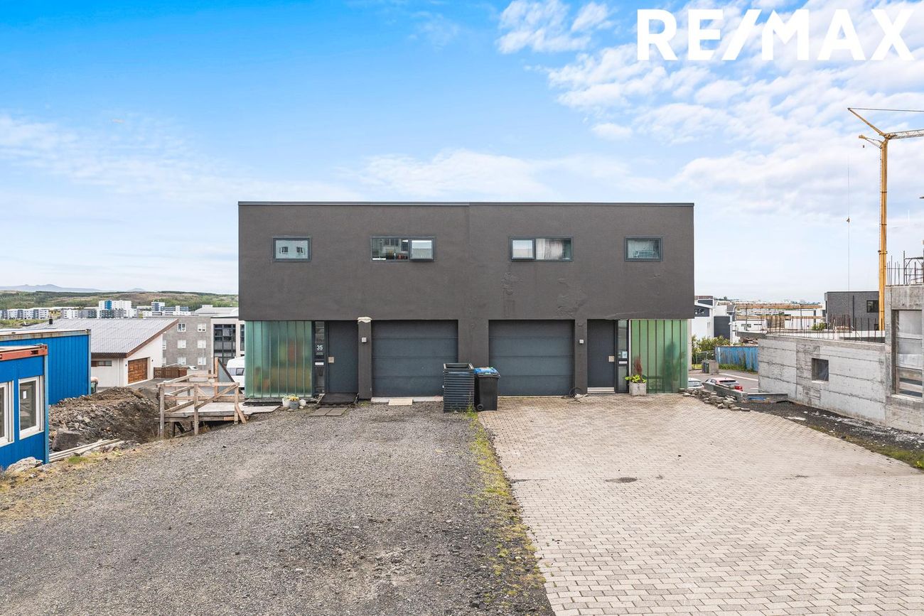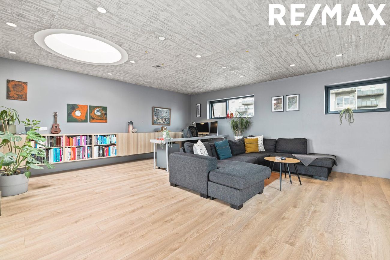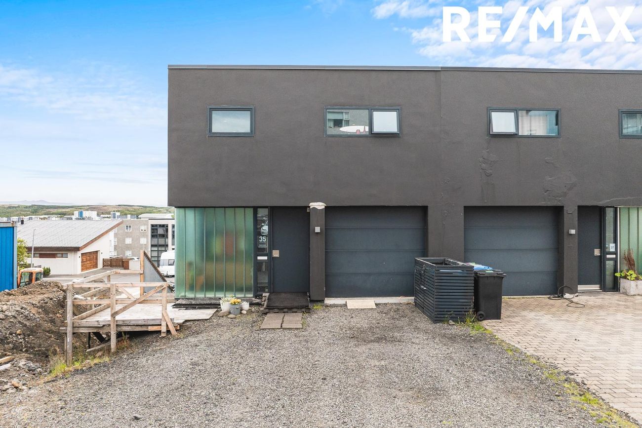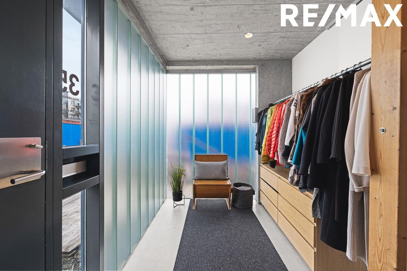Parhús í mödernískum stíl með opnu rými, 5 metra lofthæð á aðalhæð, sjónsteypuveggjum og möguleikum á aukaíbúð. Hús með sterku harðparketi, steyptum stigum og innfelldri LED lýsingu.