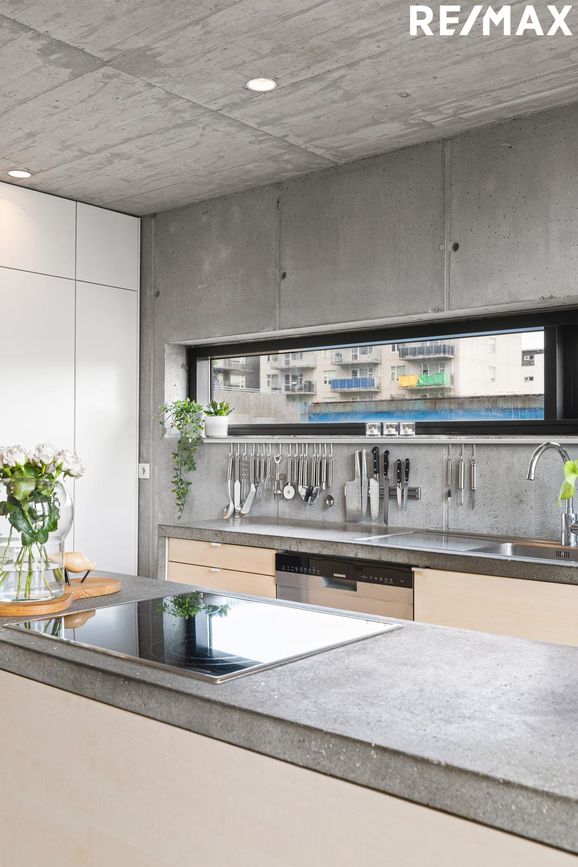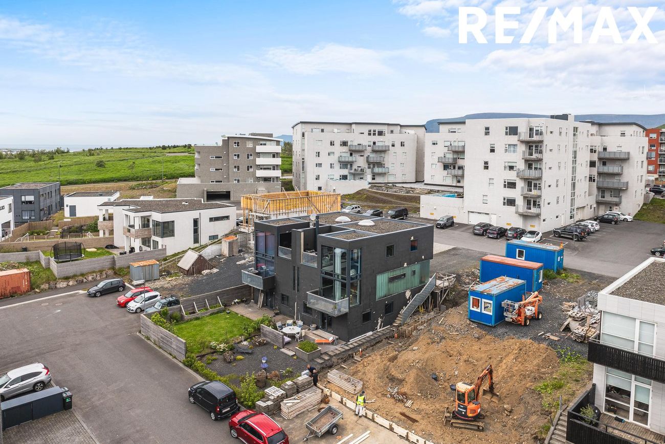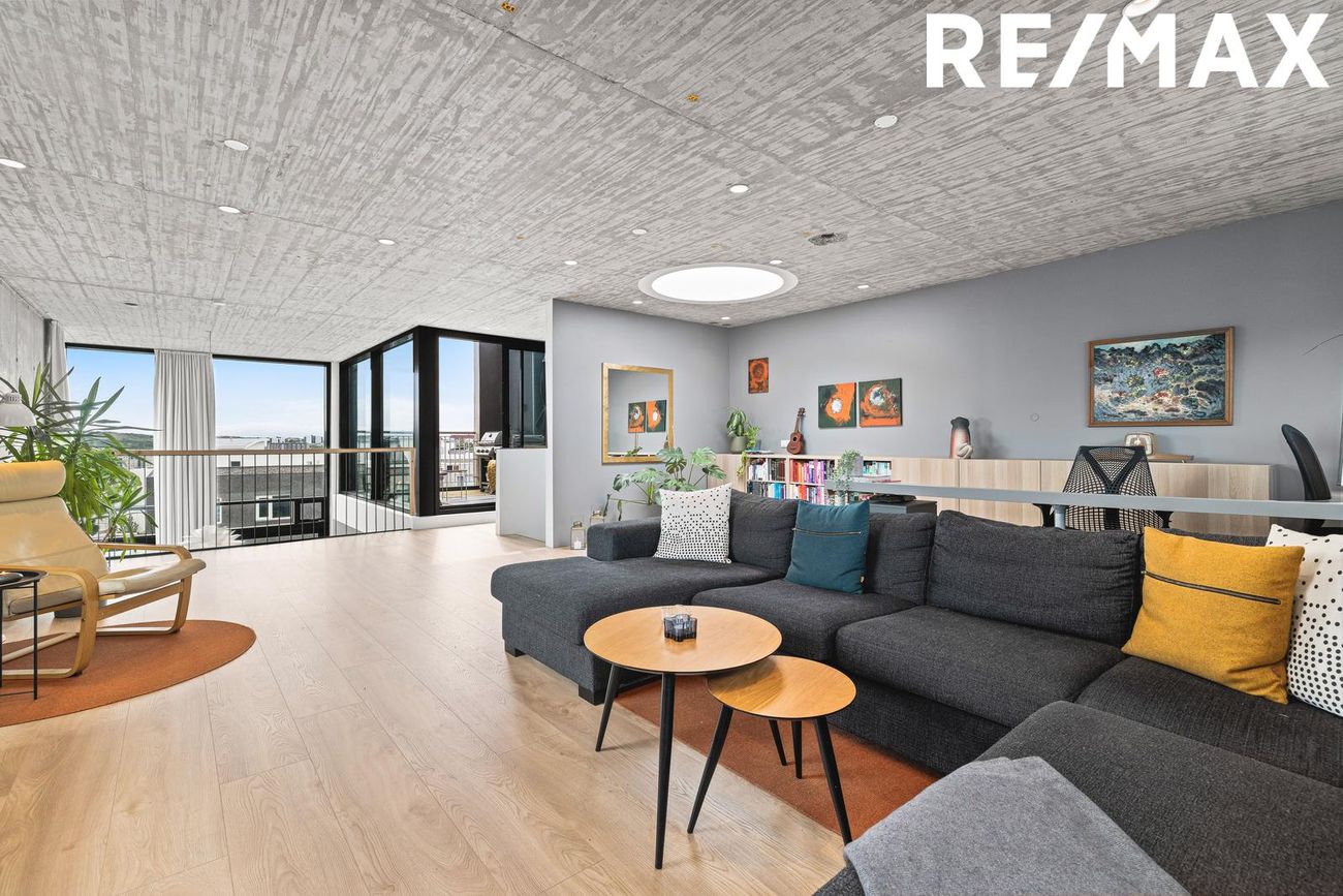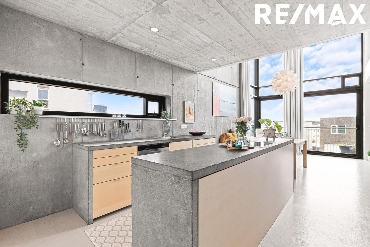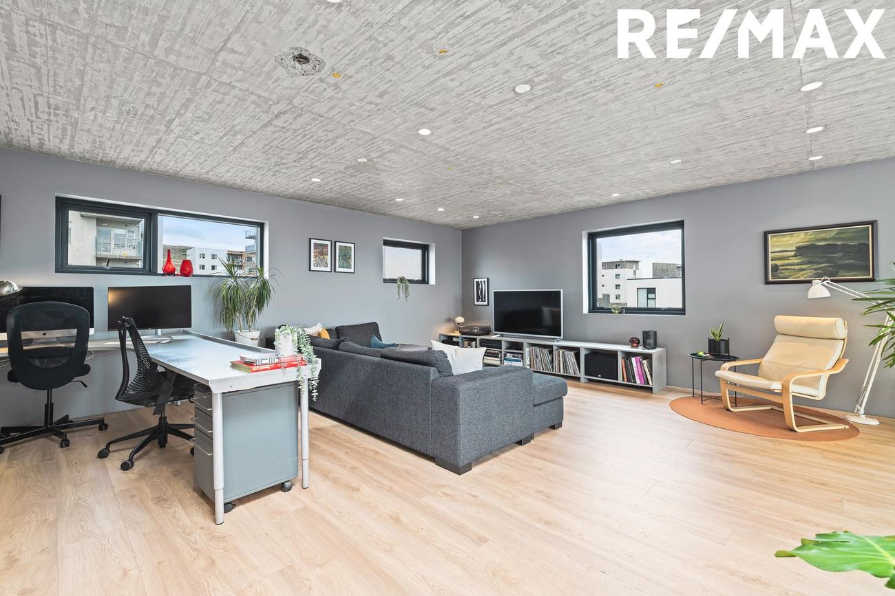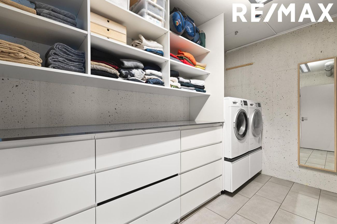 Parhús í mödernískum stíl með opnu rými, 5 metra lofthæð á aðalhæð, sjónsteypuveggjum og möguleikum á aukaíbúð. Hús með sterku harðparketi, steyptum stigum og innfelldri LED lýsingu.