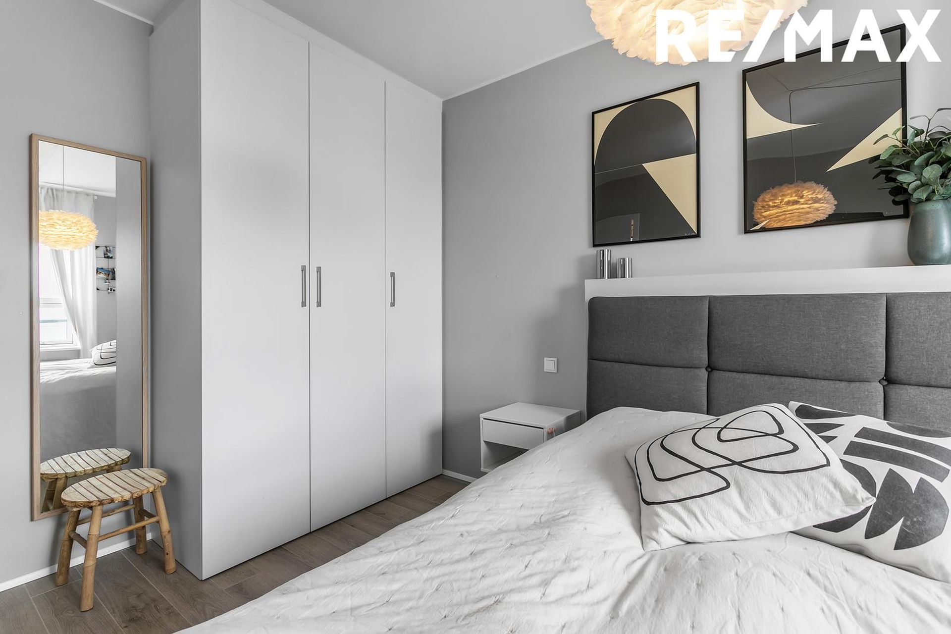 Hjónasvefnherbergi er mjög rúmgott með góðum fataskápum og parket á gólfi. Annað svefnherbergi er bjart með fataskáp og parket á gólfi.