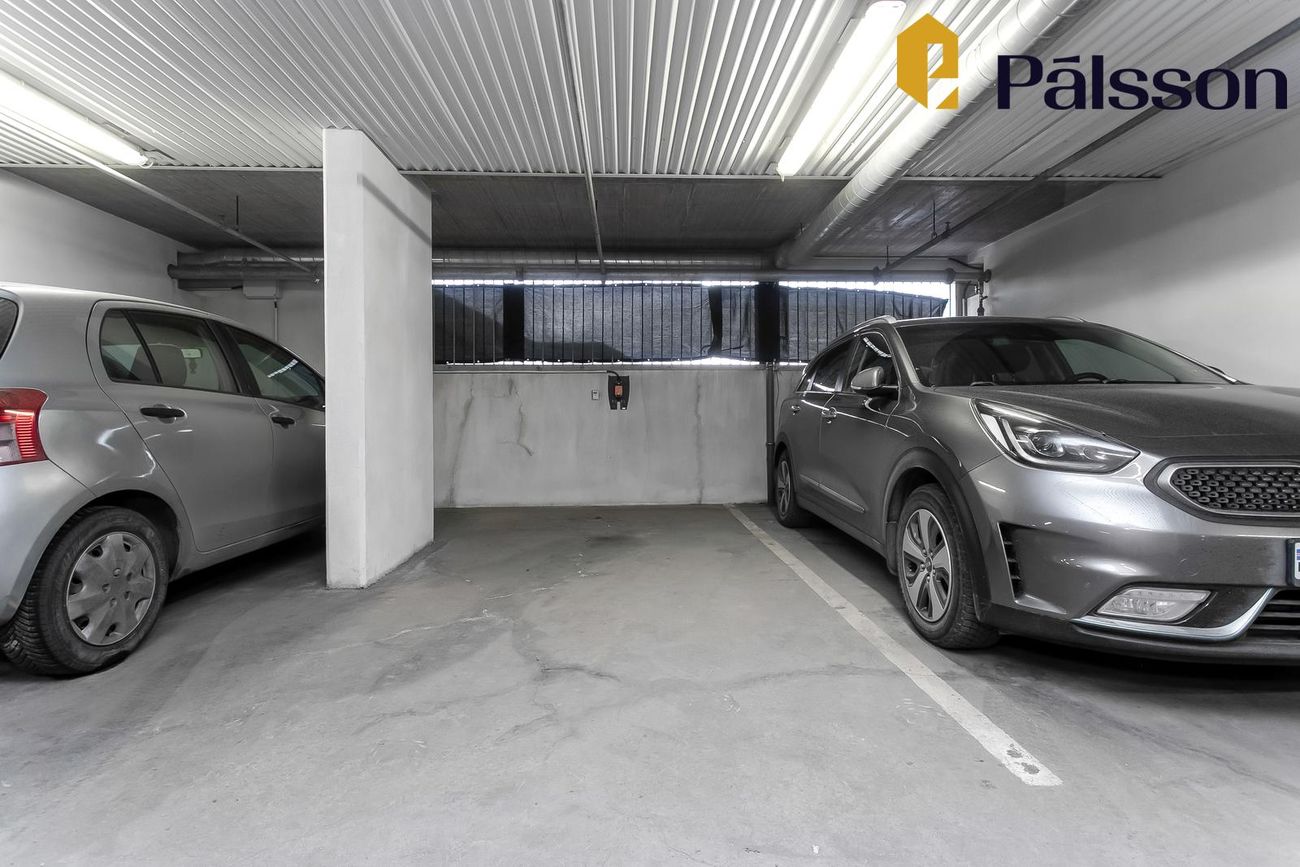 Bílastæði í bílageymslu með tengi fyrir hleðslustöð, merkt Y1.