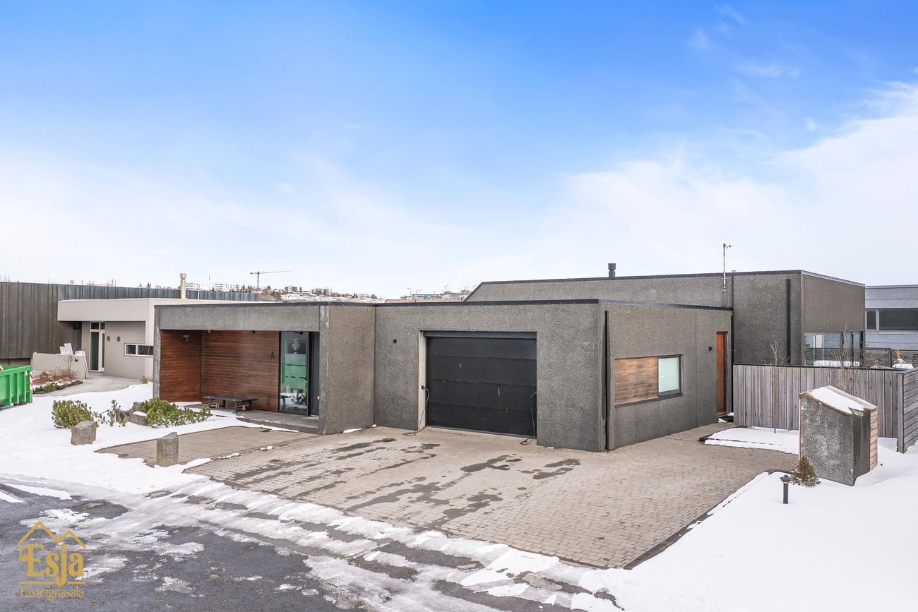 Esja Fasteignasala og Þóra Birgisdóttir Lögg. fasteignasali kynna einstaklega vel hannað og fjölskylduvænt einbýlis með innbyggðum bílskúr í Akrahverfinu í Garðabæ.