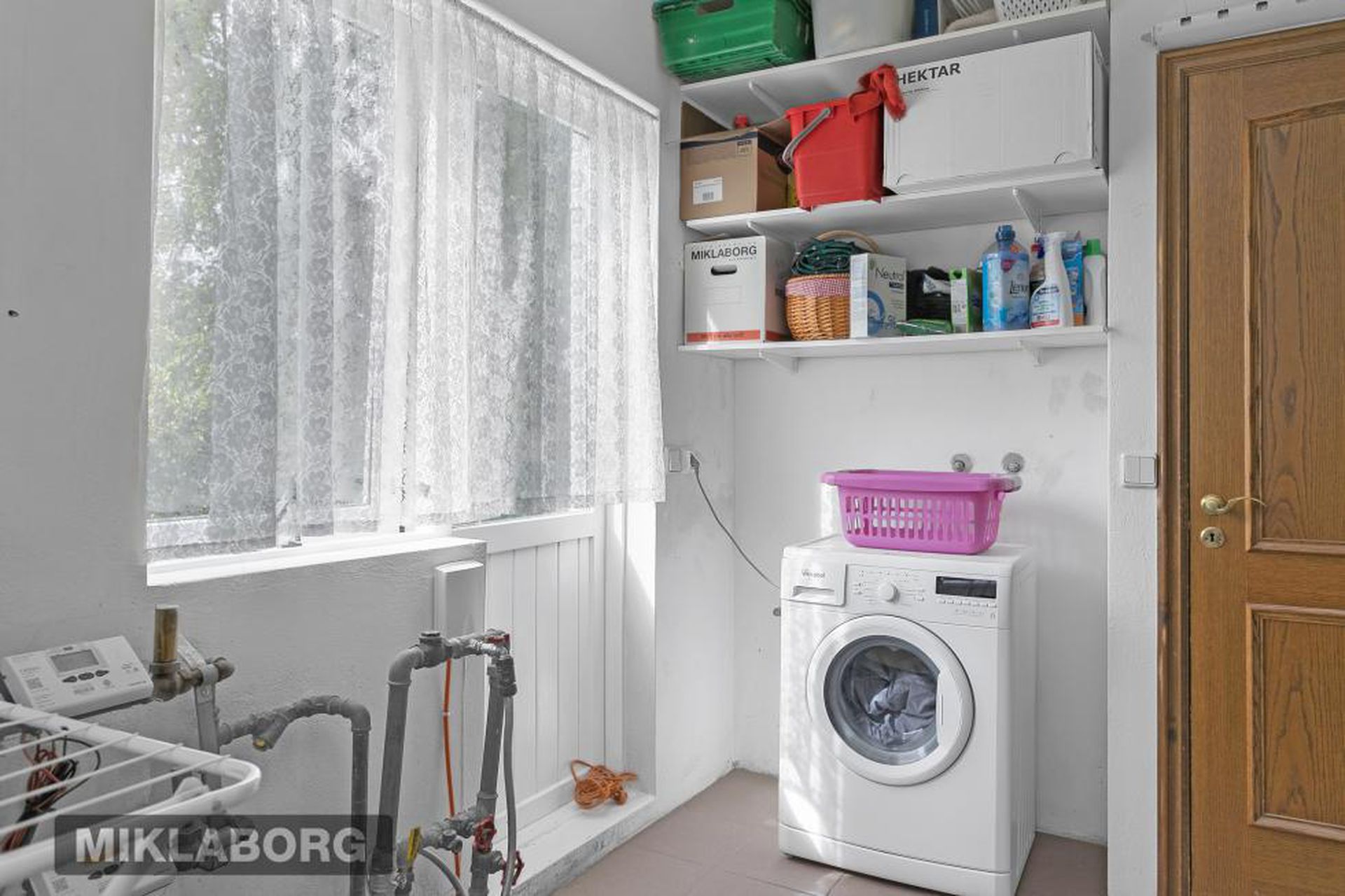 Þvottaherbergi/geymsla: Er mjög rúmgott með flísum á gólfi. Sérinngangur frá norðurhlið hússins inn í þvottaherbergi. Gluggar til suðurs og vesturs. Tenglar fyrir þvottavél/þurrkara og hillur. Möguleiki væri að útbúa útleigurými úr þvottaherbergi og svefnherbergi II þar sem sérinngangur og allar lagnir eru til staðar frá þeim hluta hússins.