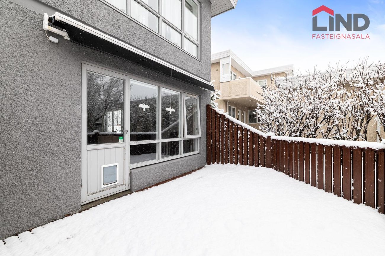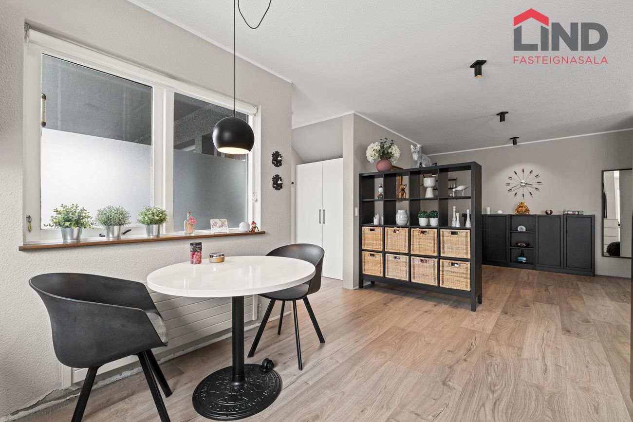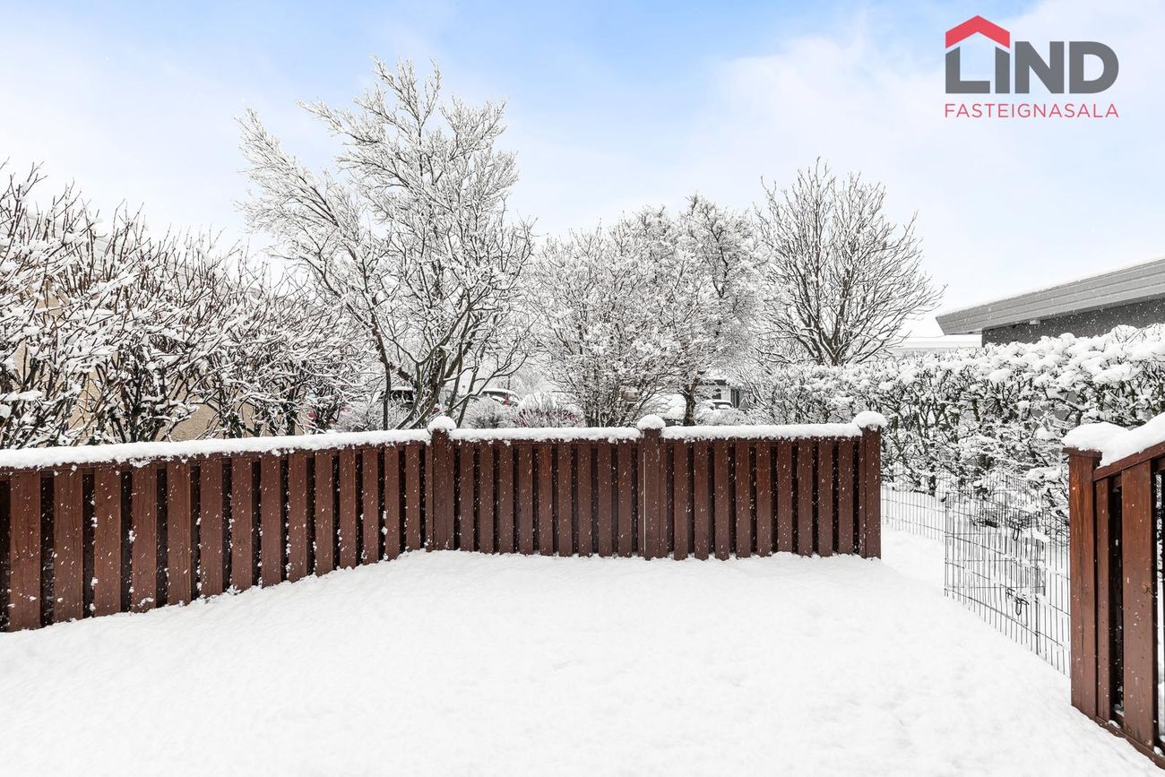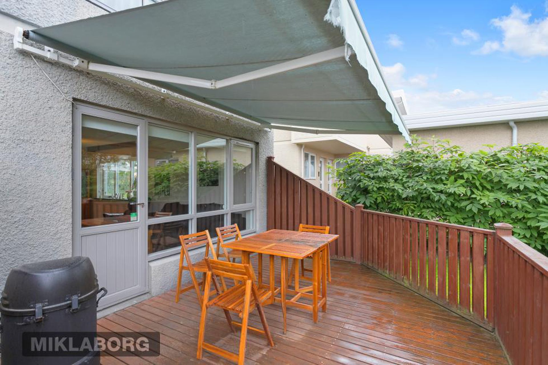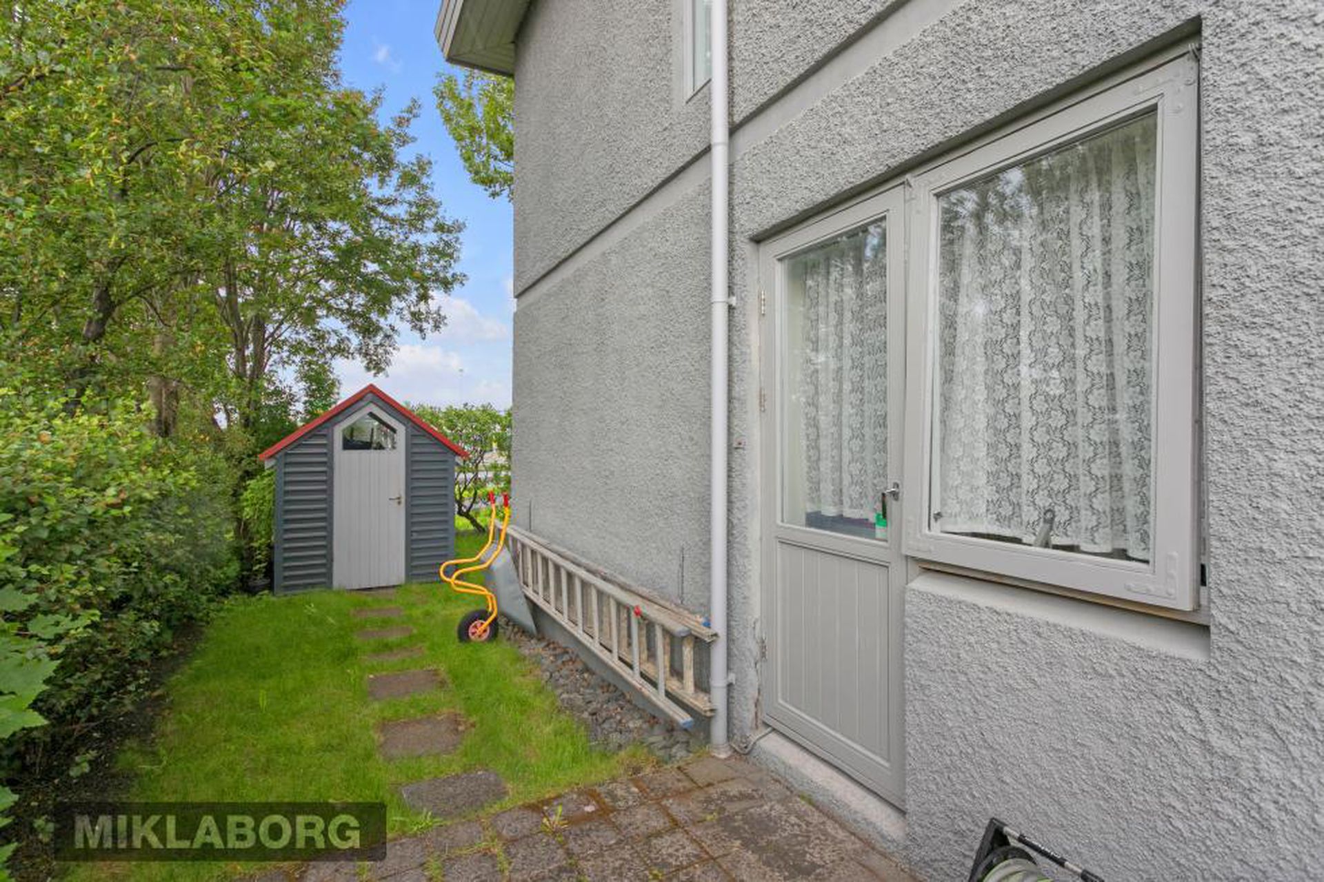 Rúmgott alrými sem skiptist í annars vegar stóra stofu sem rúmar setustofu og borðstofu og hins vegar eldhús með borðplássi. Útgengi úr stofu á rúmgóð verönd til suðurs í skjólgóðum og grónum garði í rólegum botnlanga. Eldhús er opið að hluta við stofu með plássi fyrir eldhúsborð og gluggum til suðurs og vesturs. Glæsilegt endurnýjað baðherbergi með baðkari, sturtu og saunuklefa. Í dag eru tvö svefnherbergi en voru áður þrjú þar sem baðherbergi var stækkað á kostnað eins svefnherbergis. Rúmgott þvottaherbergi með sérinngangi frá vesturshlið hússins. Möguleiki væri að útbúa útleigurými úr þvottaherbergi og einu svefnherbergi með sérinngangi.