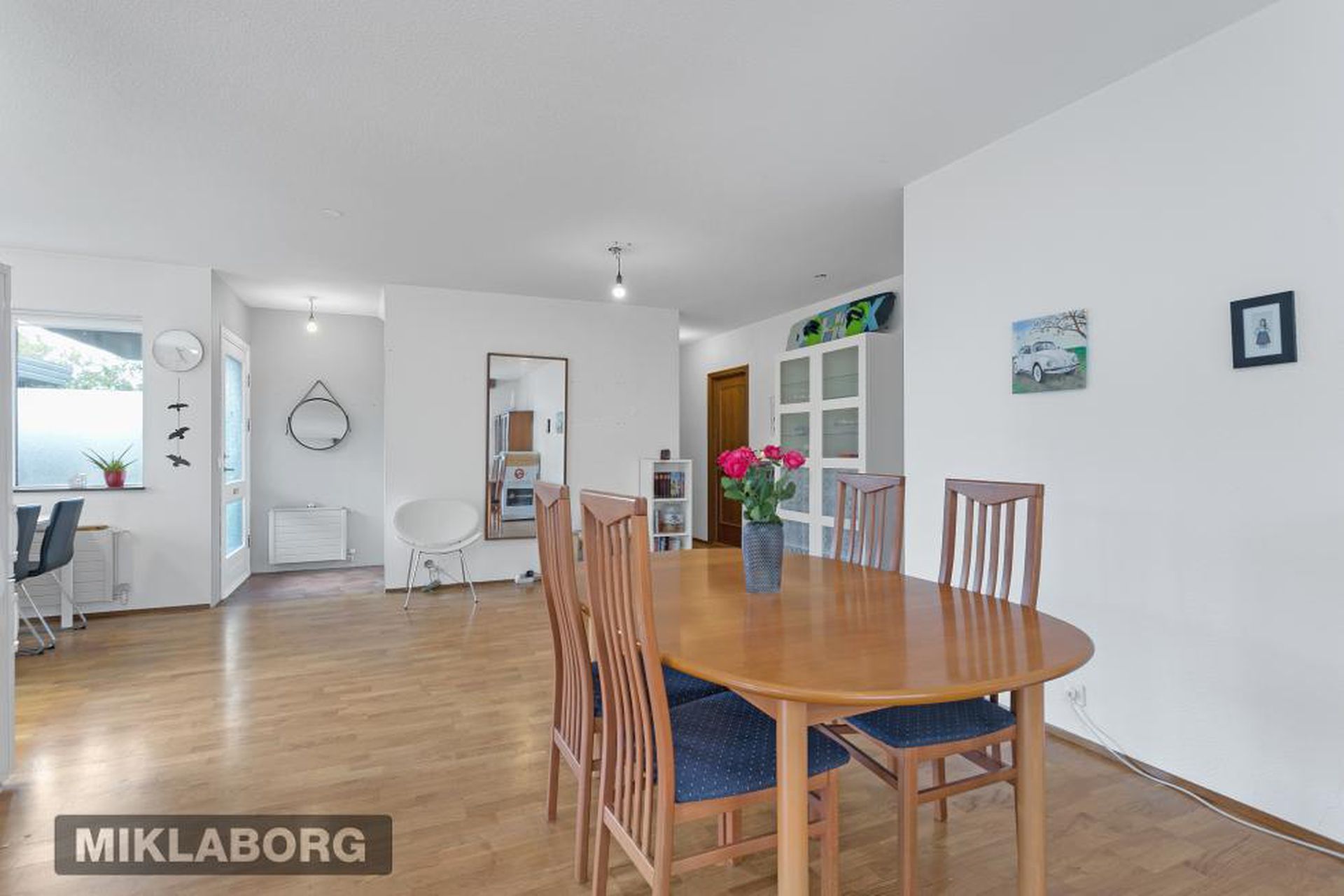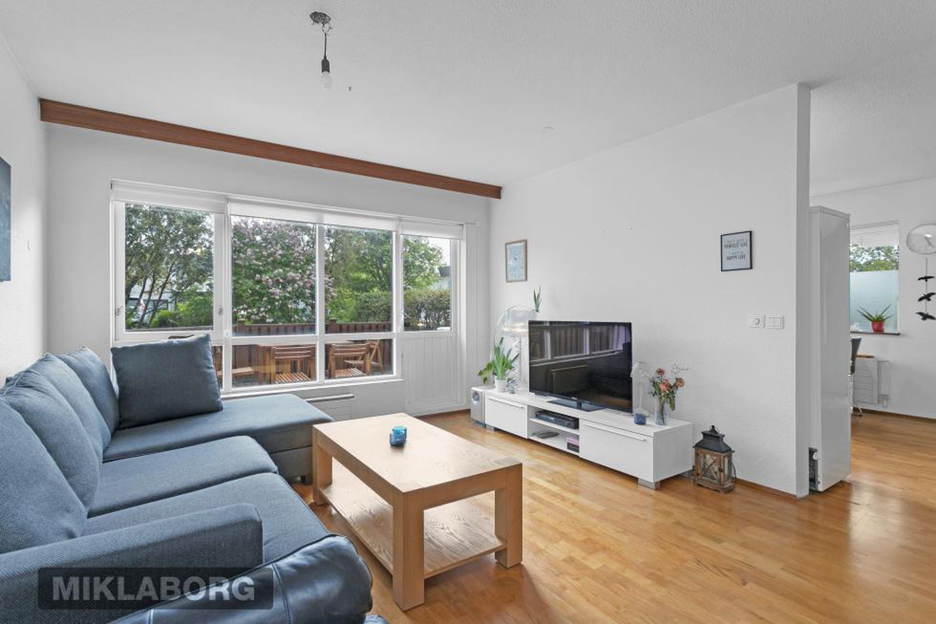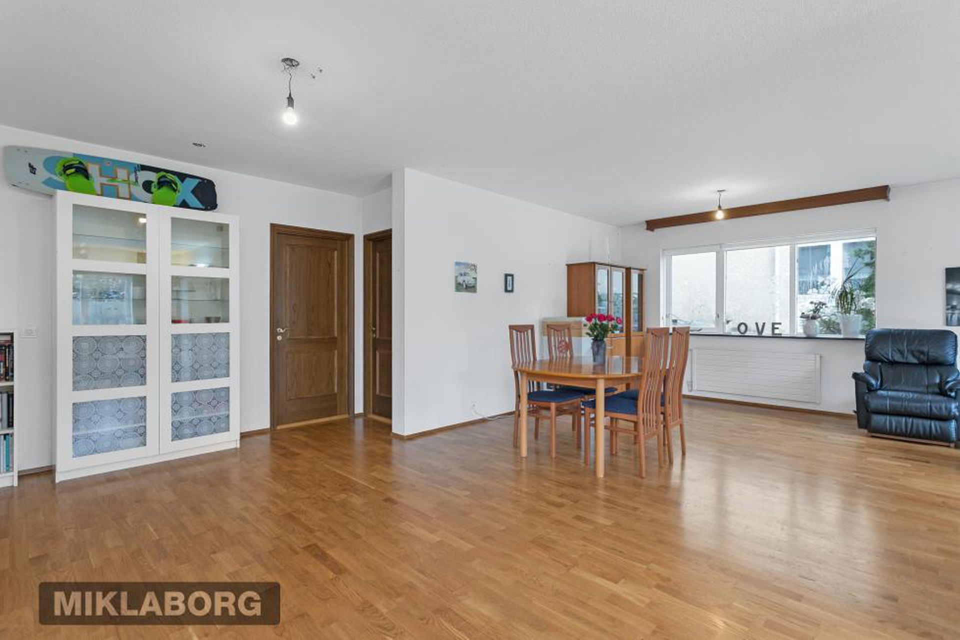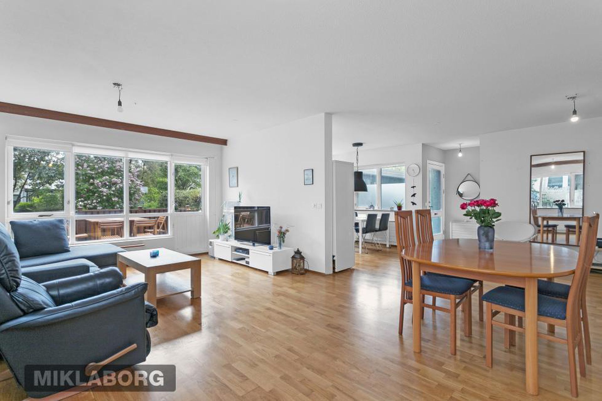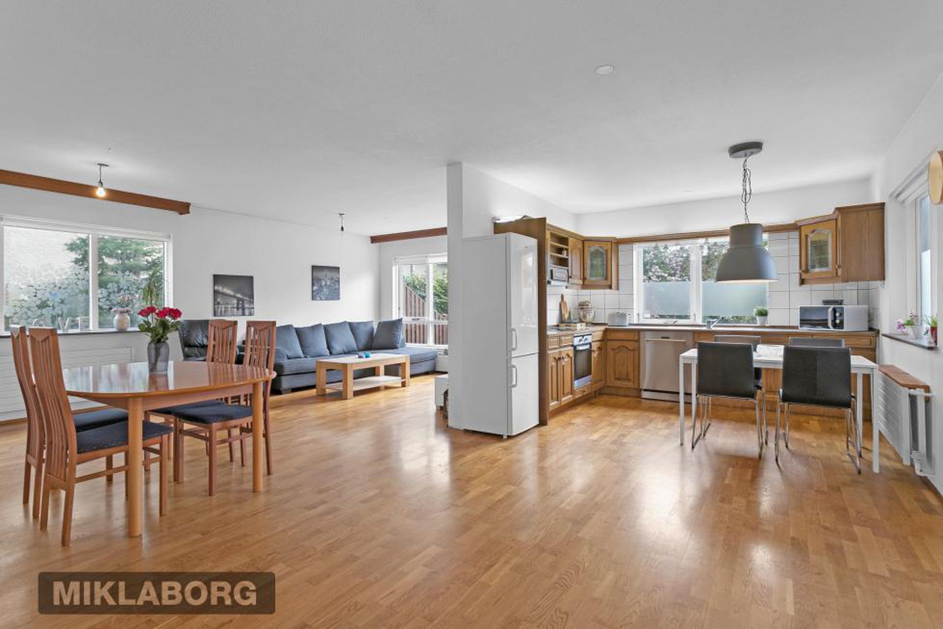 Rúmgott alrými sem skiptist í annars vegar stóra stofu sem rúmar setustofu og borðstofu og hins vegar eldhús með borðplássi. Útgengi úr stofu á rúmgóð verönd til suðurs í skjólgóðum og grónum garði í rólegum botnlanga. Eldhús er opið að hluta við stofu með plássi fyrir eldhúsborð og gluggum til suðurs og vesturs. Glæsilegt endurnýjað baðherbergi með baðkari, sturtu og saunuklefa. Í dag eru tvö svefnherbergi en voru áður þrjú þar sem baðherbergi var stækkað á kostnað eins svefnherbergis. Rúmgott þvottaherbergi með sérinngangi frá vesturshlið hússins. Möguleiki væri að útbúa útleigurými úr þvottaherbergi og einu svefnherbergi með sérinngangi.