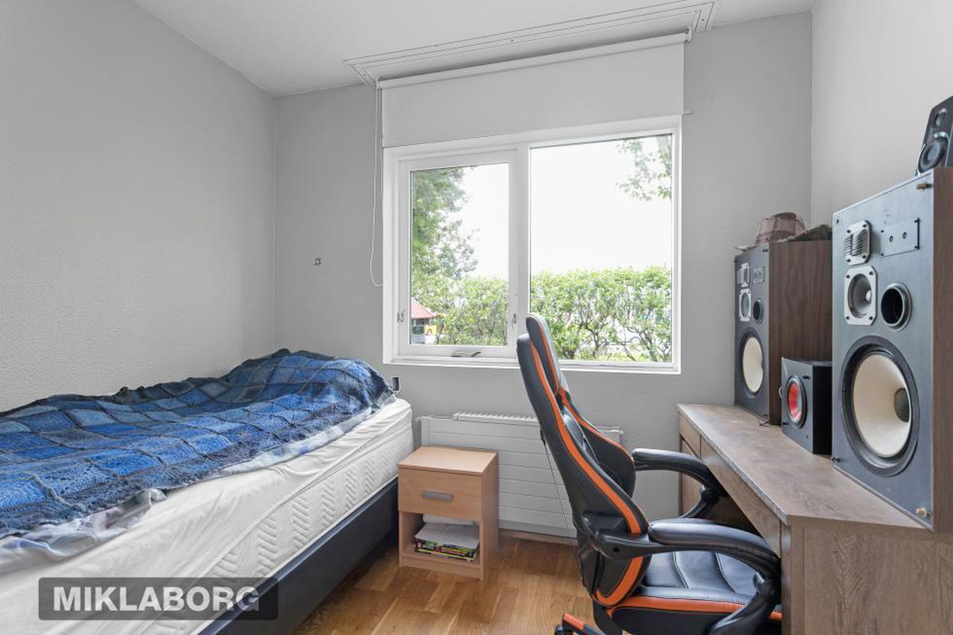 Hjónaherbergi: Er rúmgott með harðparketi á gólfi, góðum skápum og glugga til norðurs.