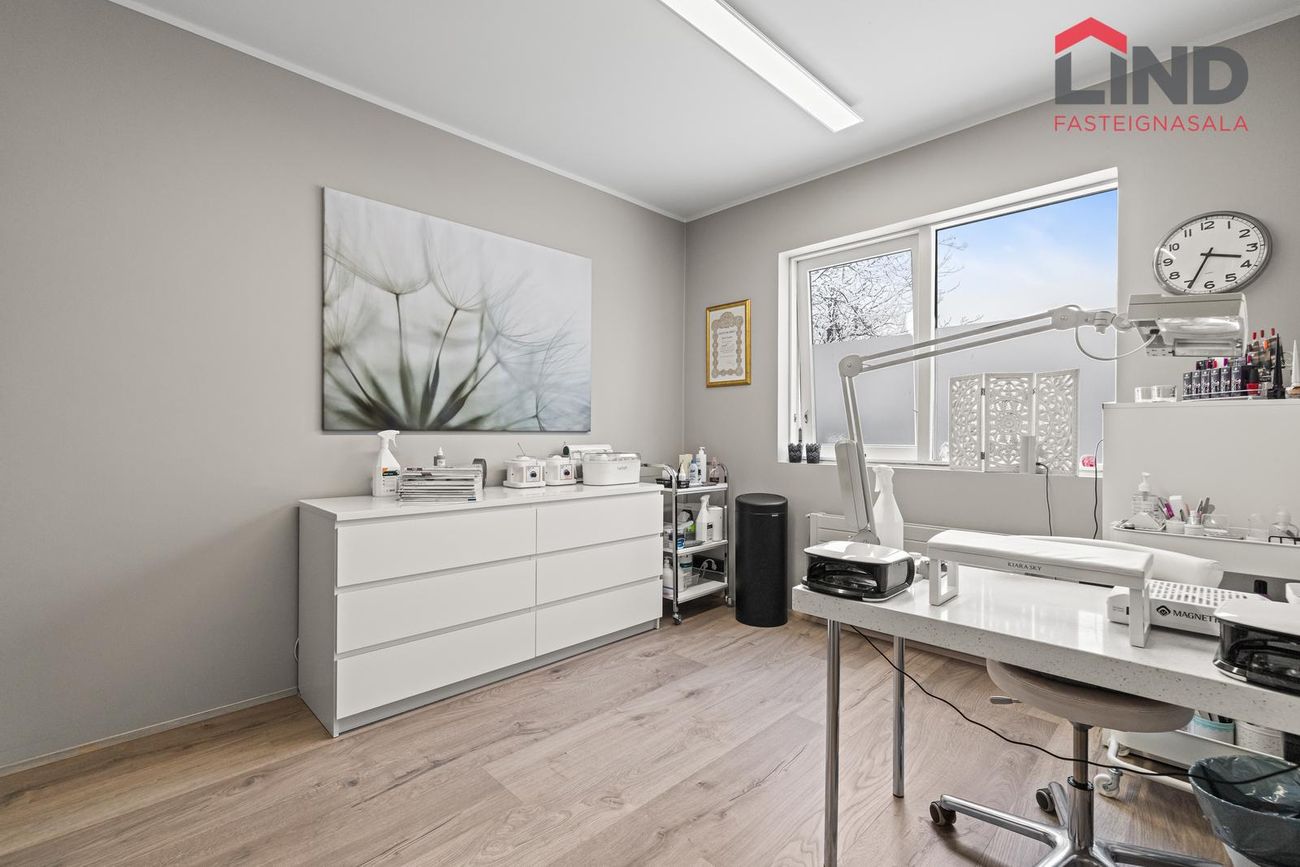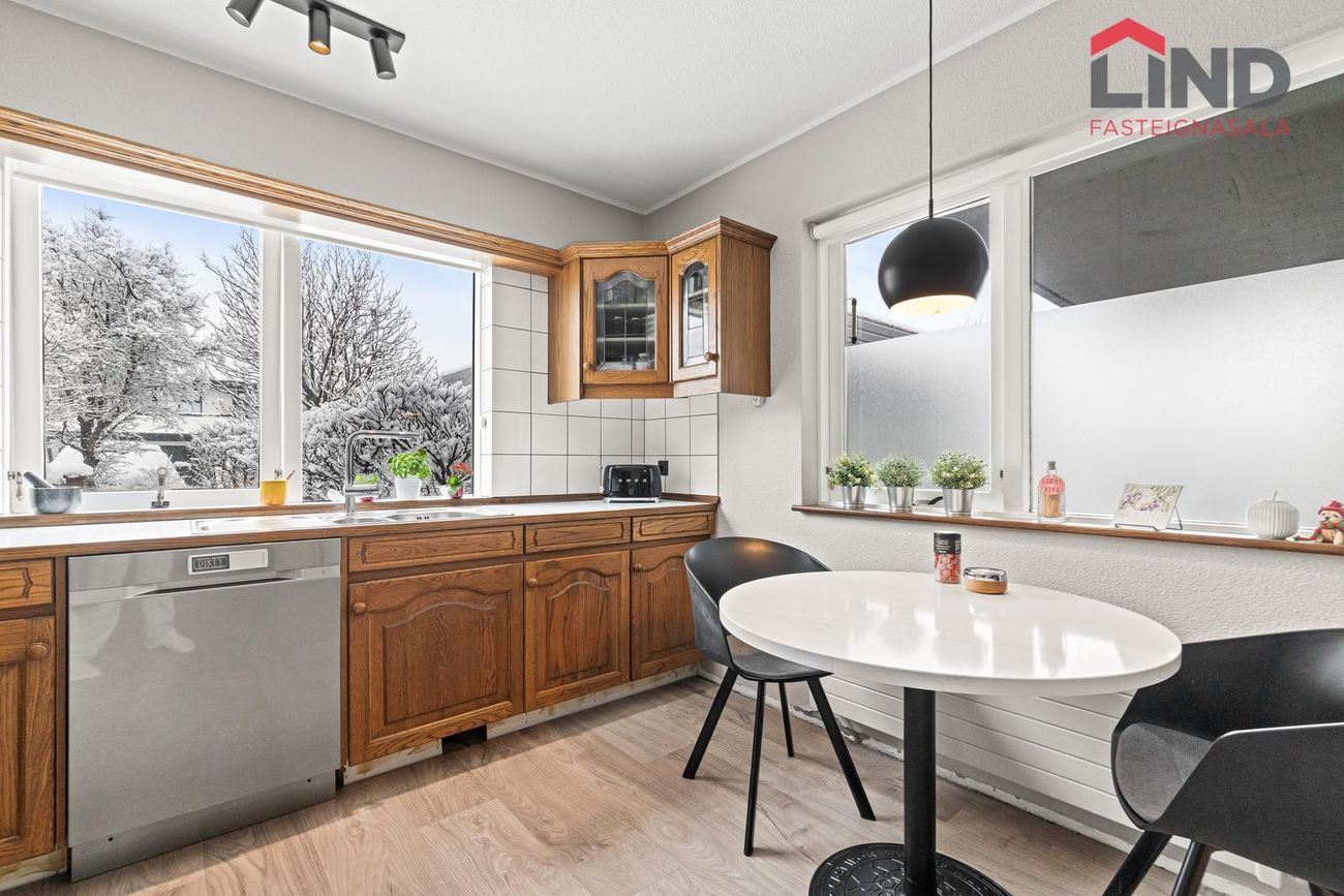 Bílskúr: Er mjög snyrtilegur og mikið endurnýjaður líkt og fram hefur komið. Nýleg bílskúrshurð og rafmagnsopnun. Gluggar til austurs og norðurs. Inngangshurð norðan megin við bílskúr (nær aðal inngangi). Auk þess er búið að endurnýja allan þakkant, koma fyrir lýsingu í þakkanti og múra/mála bílskúra.