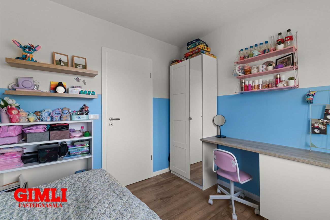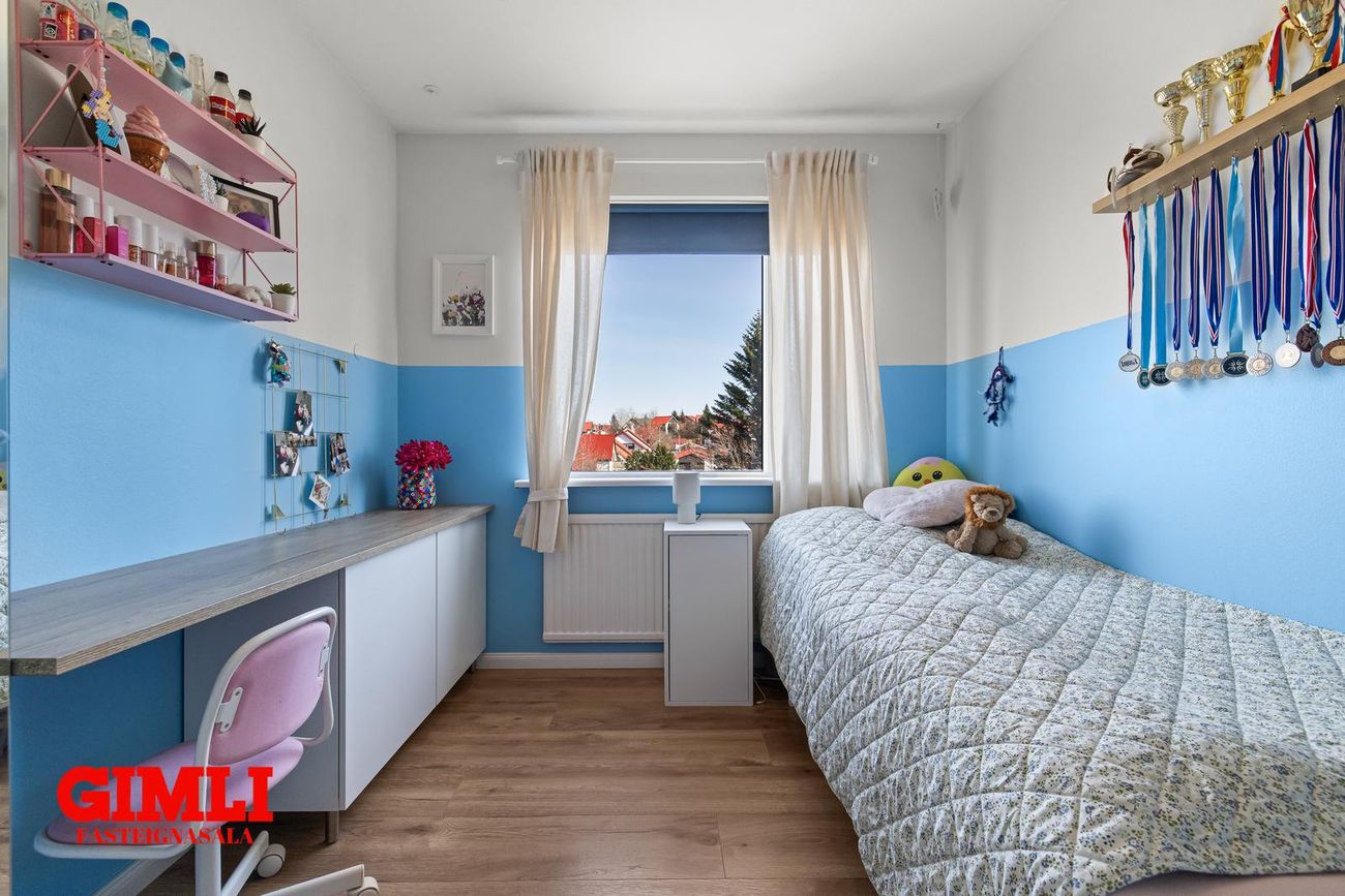 Barnaherbergi: Rúmgott með parket á gólfi.