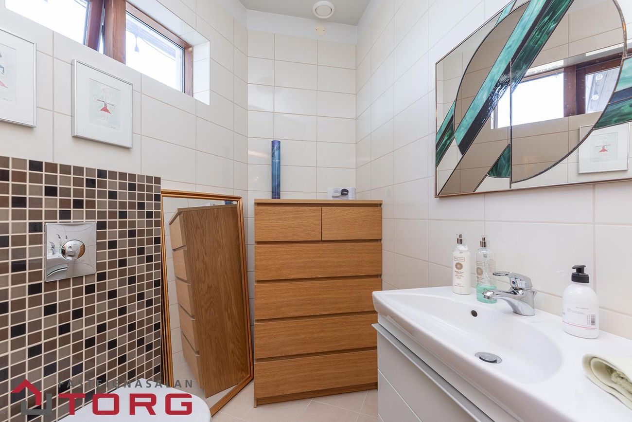 57,7m² bílskúr með epoxy gólfi, rafdrifnum hurðum, hitagrind fyrir heita pottinn og innkeyrslu, hillum og skápum. Útgengt út á verönd.