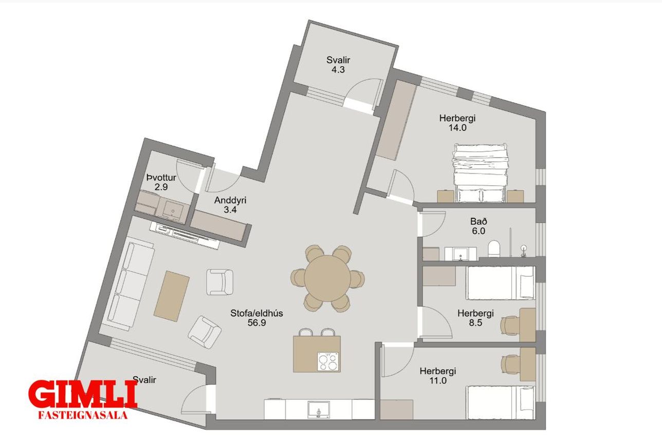 | 56,20 m² | 63.500.000 kr. 1. apríl 2026 | 58.500.000 kr. 26. júní 2024 |