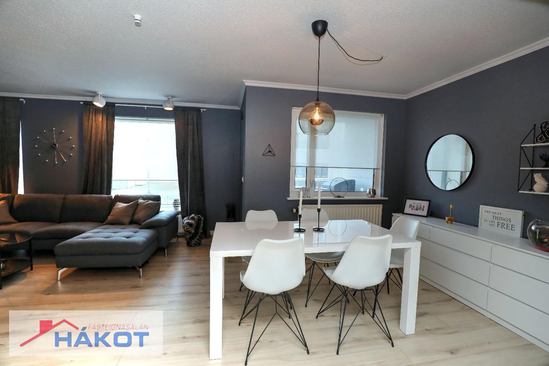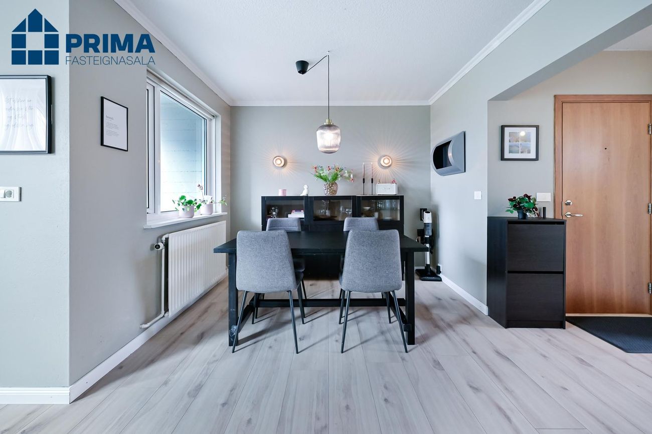 Stofa/borðstofa rúmgott og bjart alrými, parket, útgangur á suðursvalir.