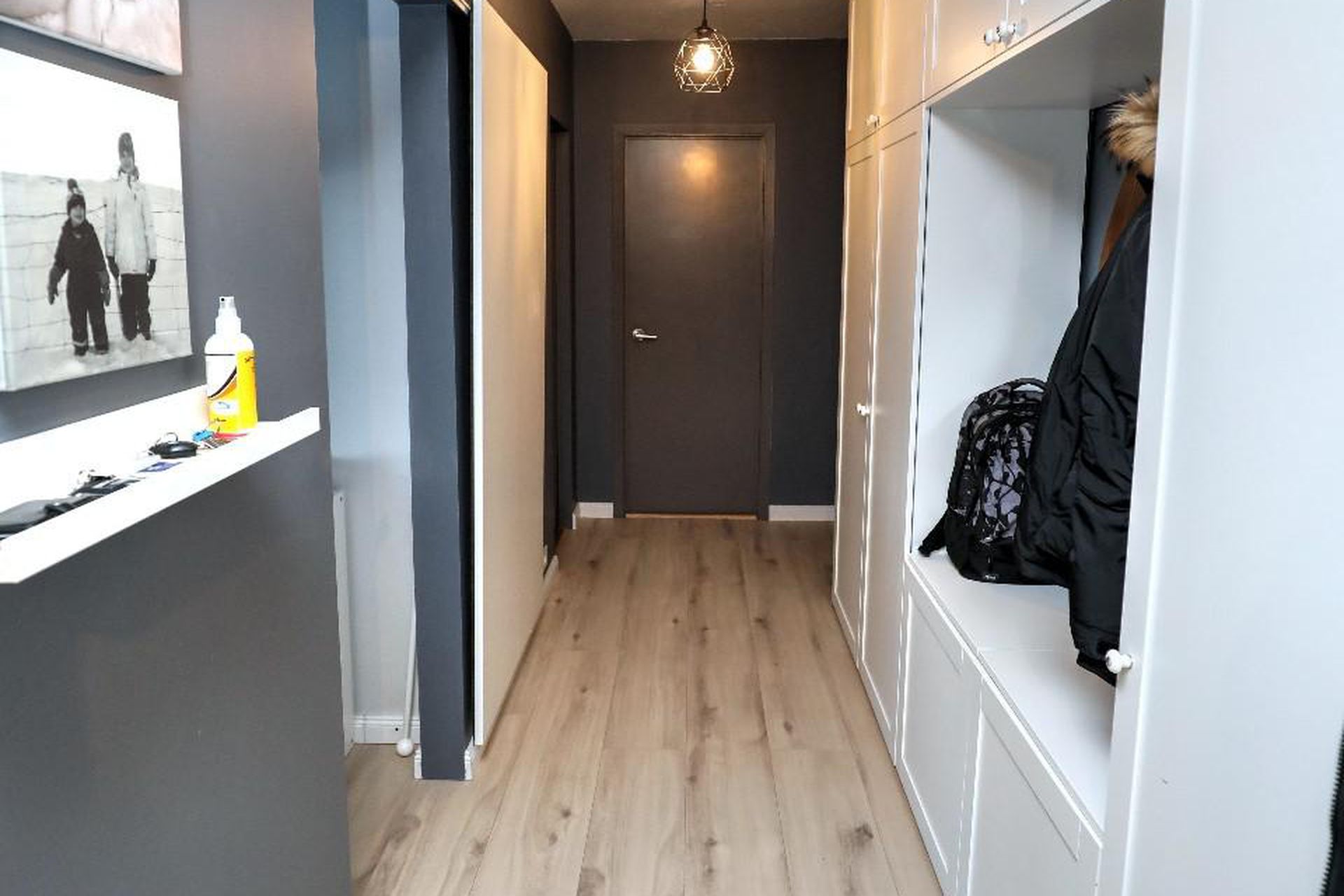 Forstofa/hol parket, stór skápur á gangi.