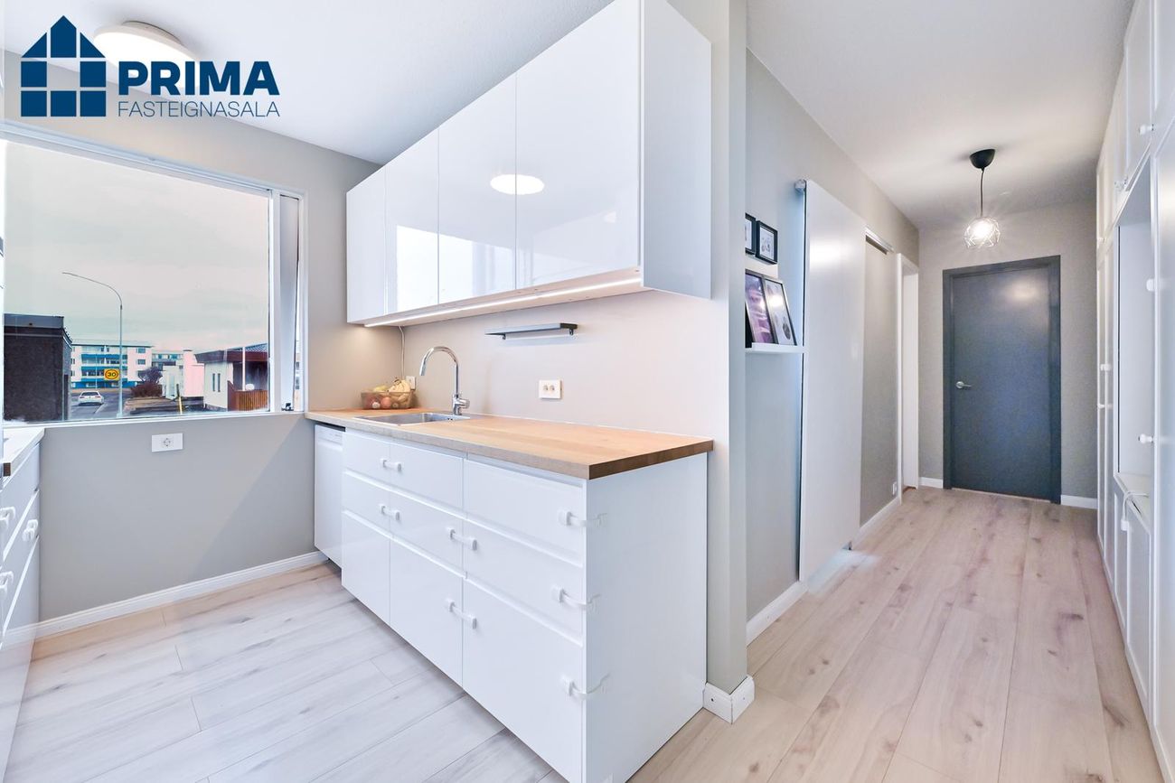 *** Garðabraut 10 - 300 Akranes *** PRIMA fasteignasala og Oliver Bergmann lögg.fasteignasali kynna: 4ra herbergja ENDAíbúð (86,3 fm) á 1. hæð til vinstri í fjölbýlishúsi ásamt sérgeymslu (17,1 fm) í kjallara = 103,4 fm. Eignin skiptist í forstofu, eldhús, stofu sem og borðstofu með útgang út á suður svalir. 3 svefnherbergi. Baðherbergi. Stór geymsla og hjólageymsla á jarðhæð. Sameiginlegt þvottahús á jarðhæð. Staðsett miðsvæðis, mjög stutt í skóla og íþróttamannvirki og verslunarkjarna.