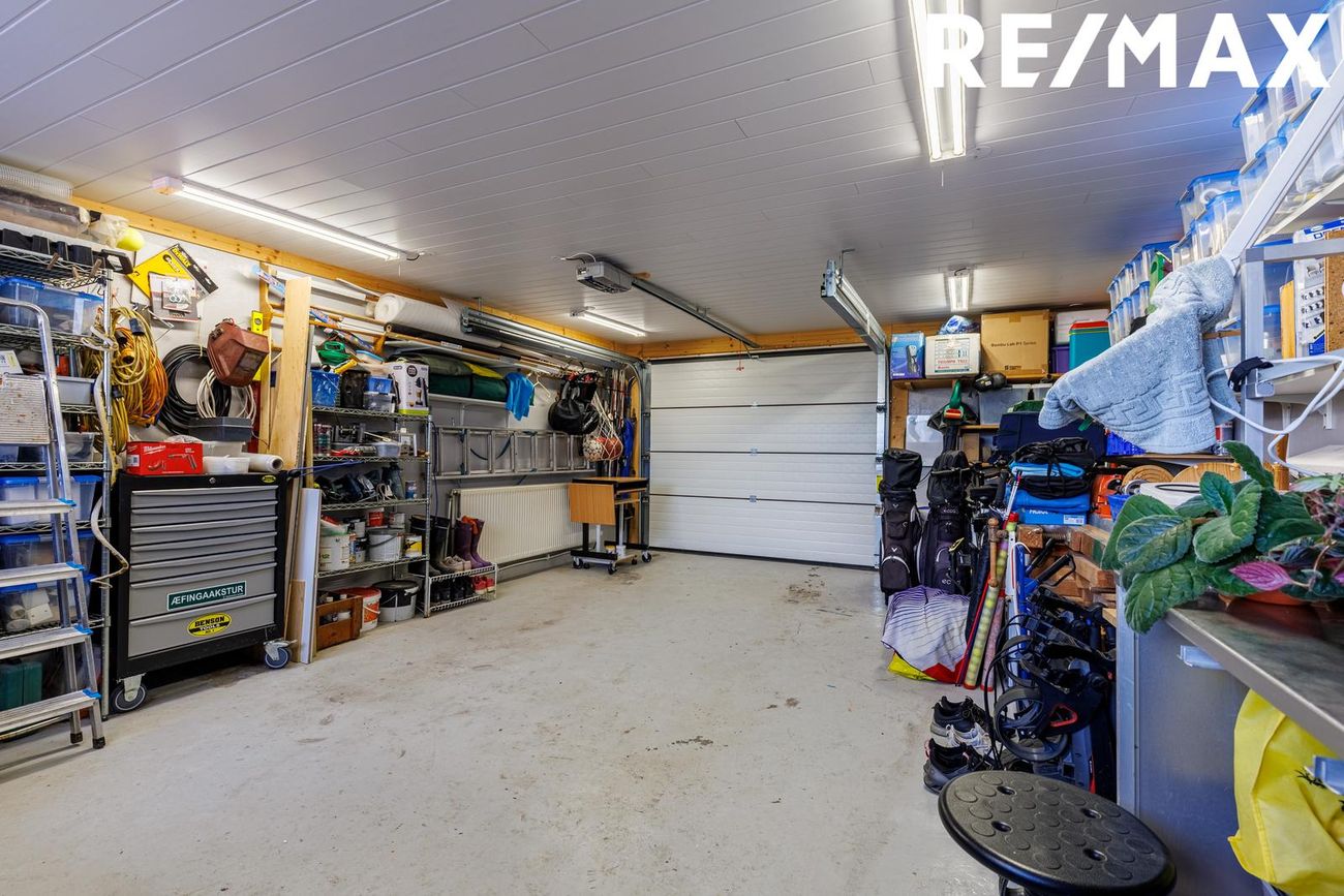 Mjög rúmgóður bílskúr með uppsettri hleðslustöð. Stórt bílaplan fyrir framan.