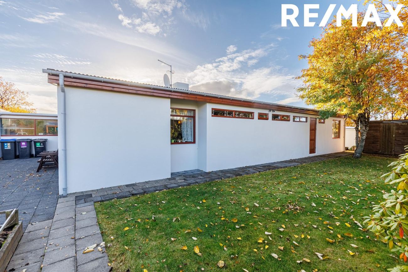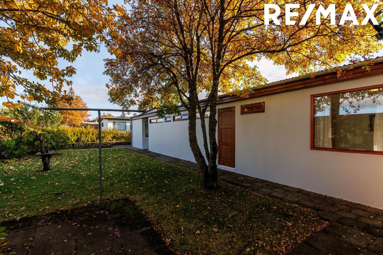 Einstök lóð. Hús á einni hæð með aukinni lofthæð að hluta. Öll herbergi: forsalur, stofa, borðstofa, eldhús, baðherbergi, þvottahús, geymsla, þrjú svefnherbergi og bílskúr. Gólfhiti í öllum gólfum. Fallegar innréttingar.