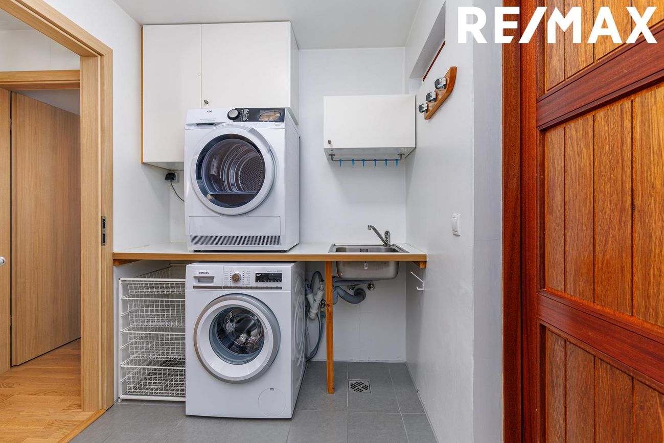 Flísalagt þvottahús, mjög rúmgott með skolvaski. Útgengi út í stóran bakgarð. Stór útigeymsla (8,2 fm) staðsett þar.