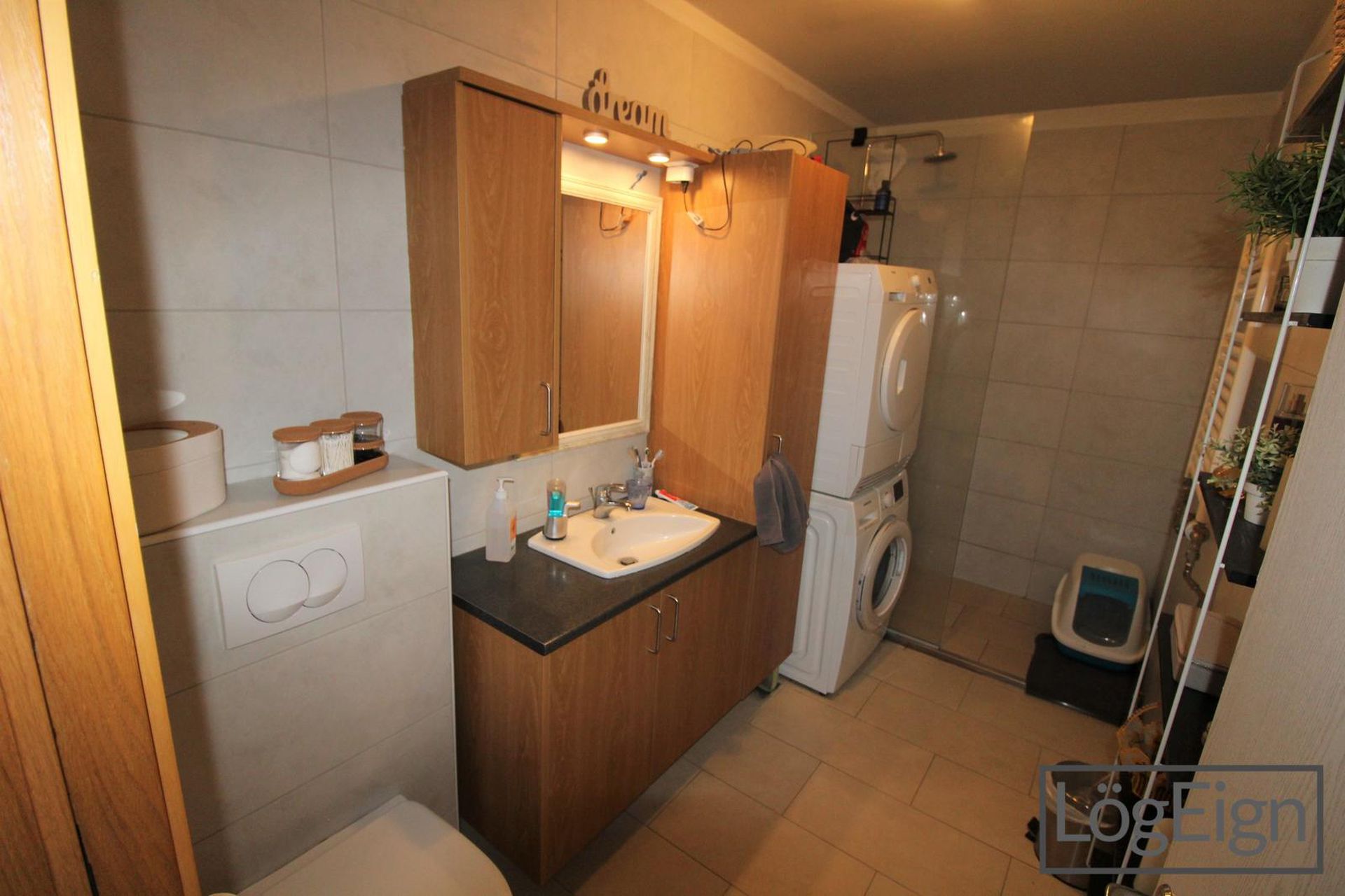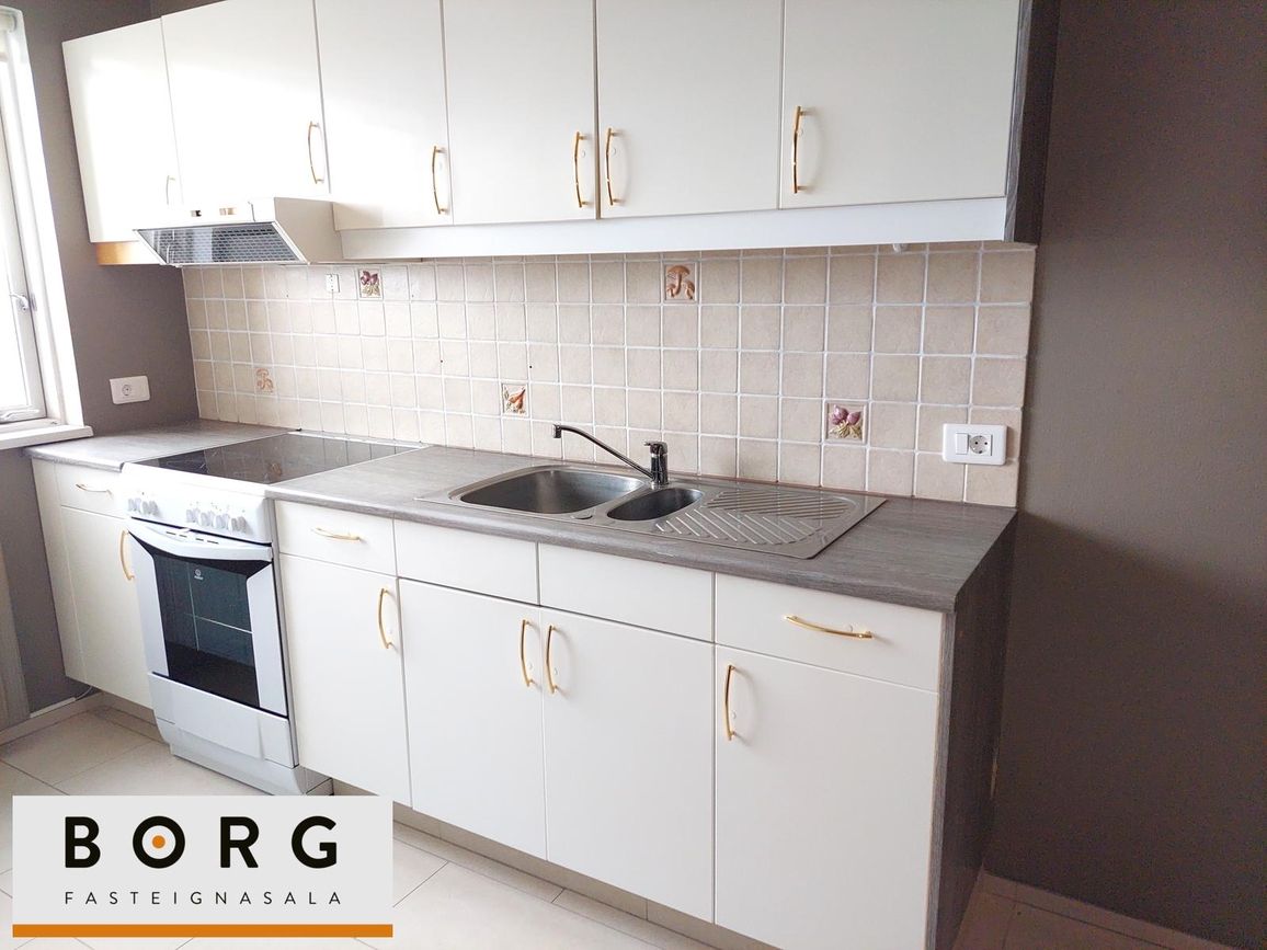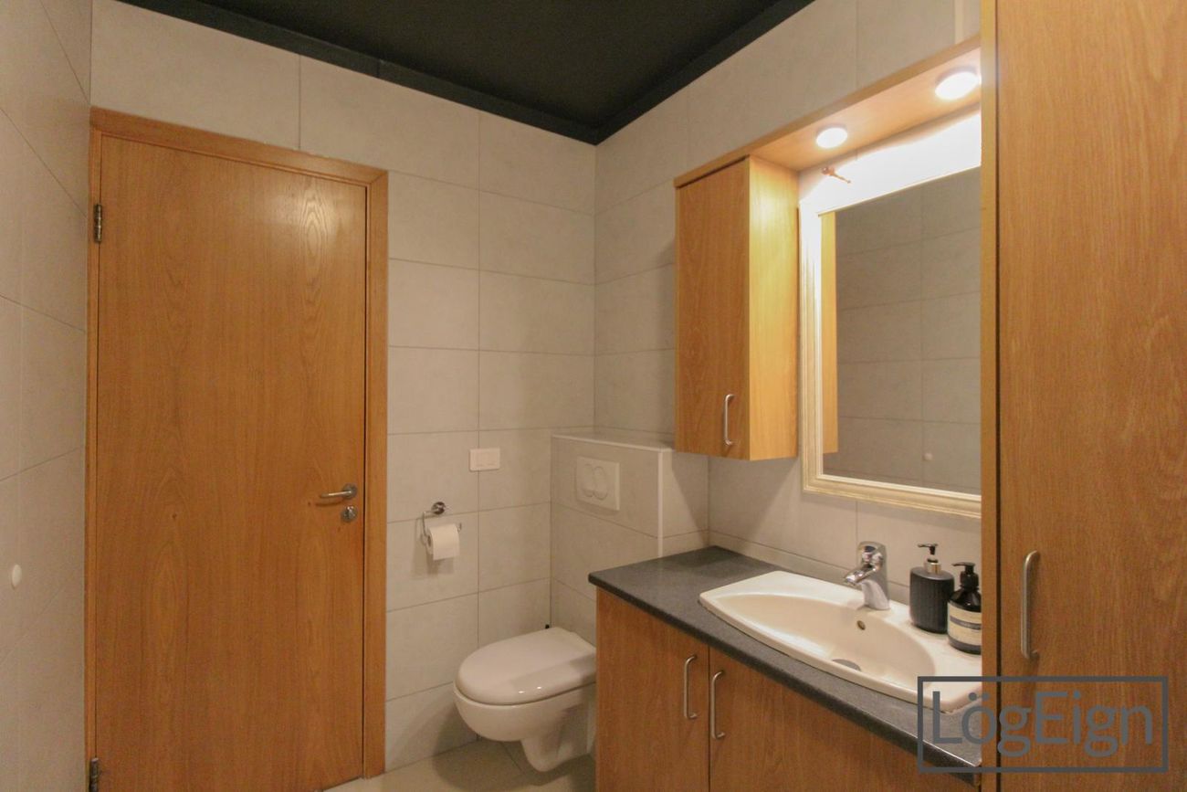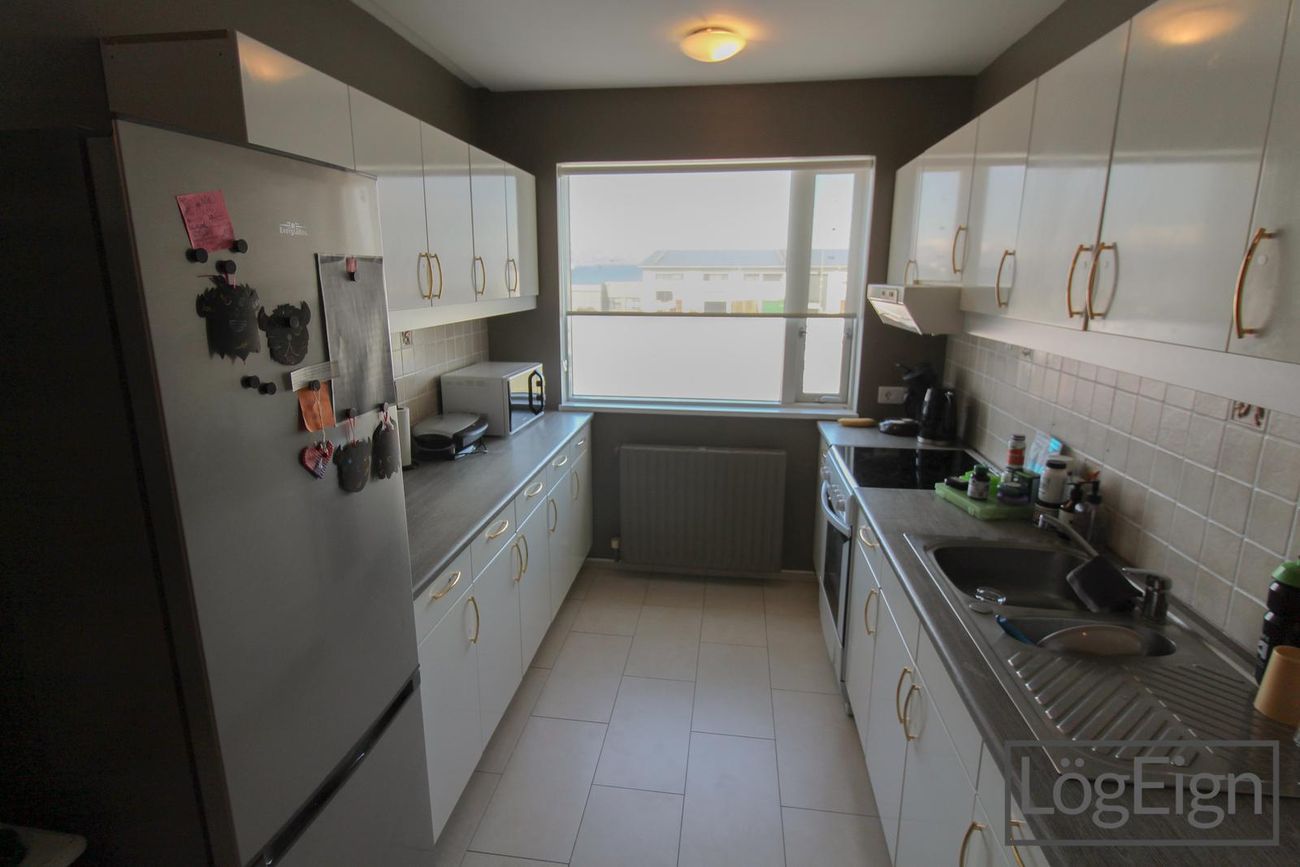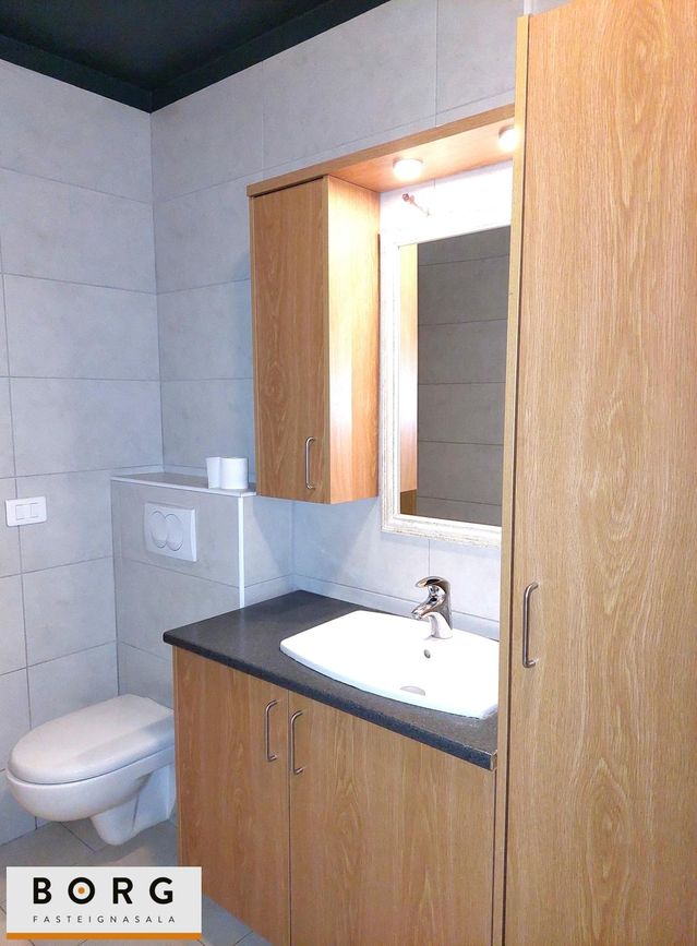 Baðherbergi: hefur verið endurnýjað og er með flísum á gólfi og veggjum, upphengdu klósetti og ágætis innréttingu með efri- og neðri skápum ásamt sturtu og handklæðaofn. Tengi fyrir þvottavél og þurrkara er inn á baðherberginu.