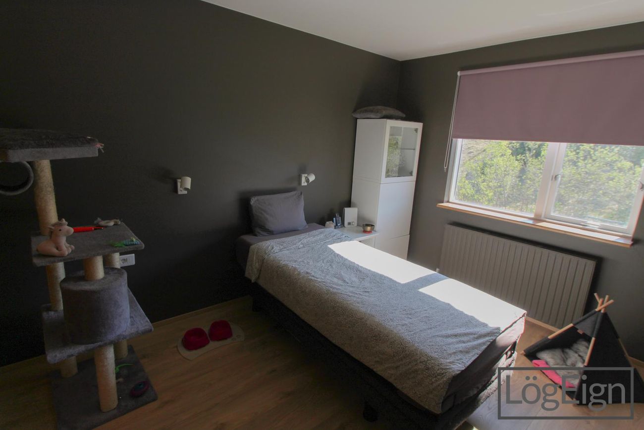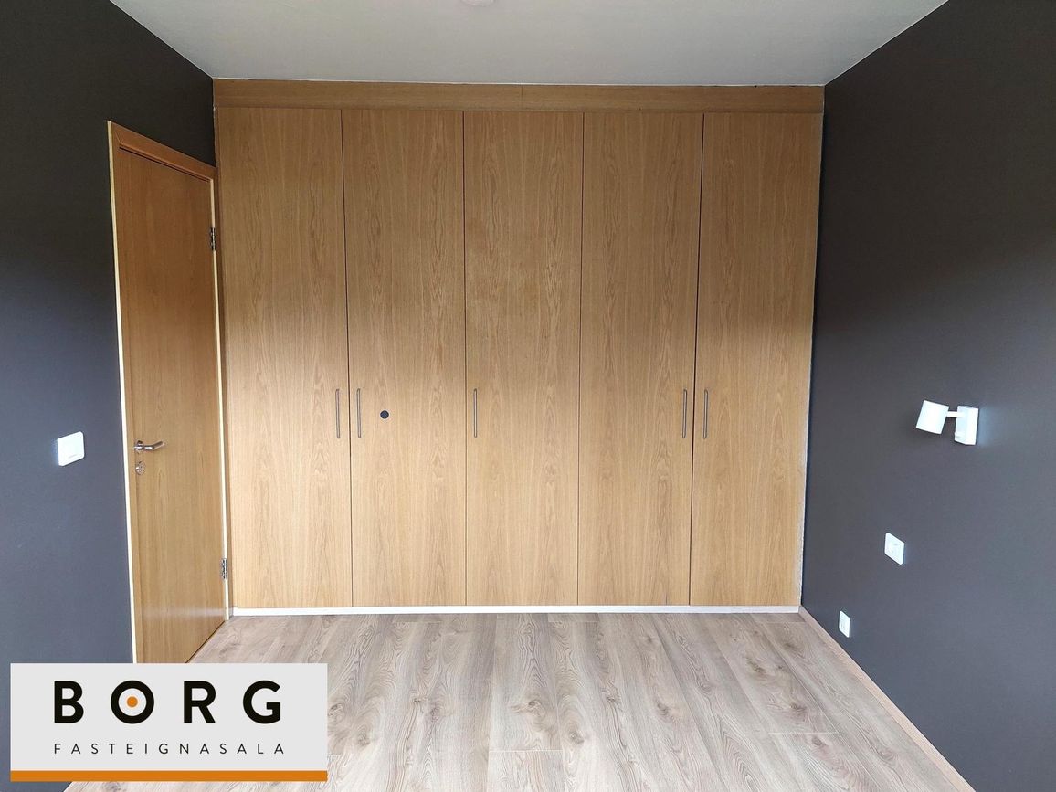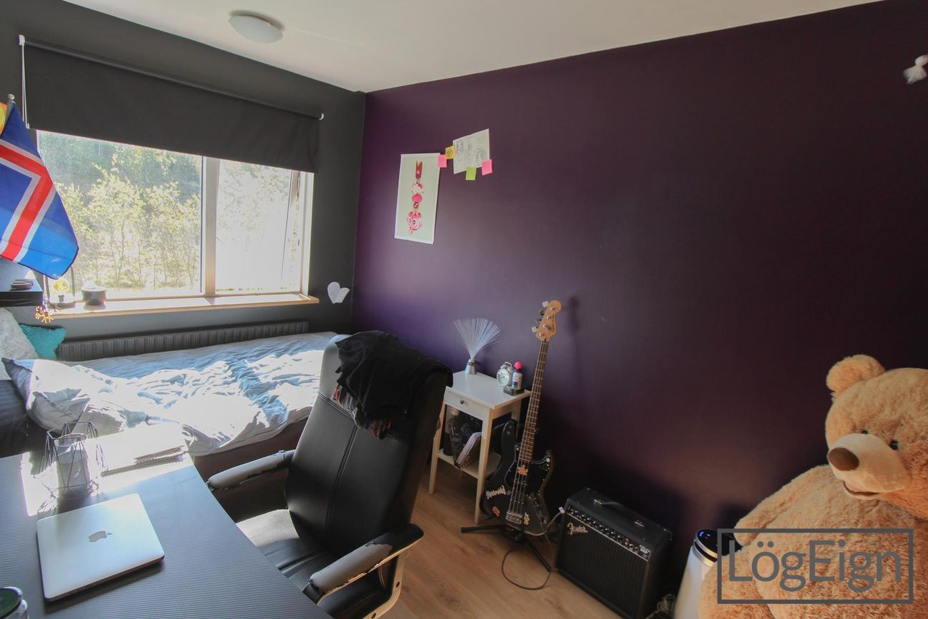 Svefnherbergin: eru þrjú, öll með parket á gólfi og tvö þeirra með föstum fataskápum.