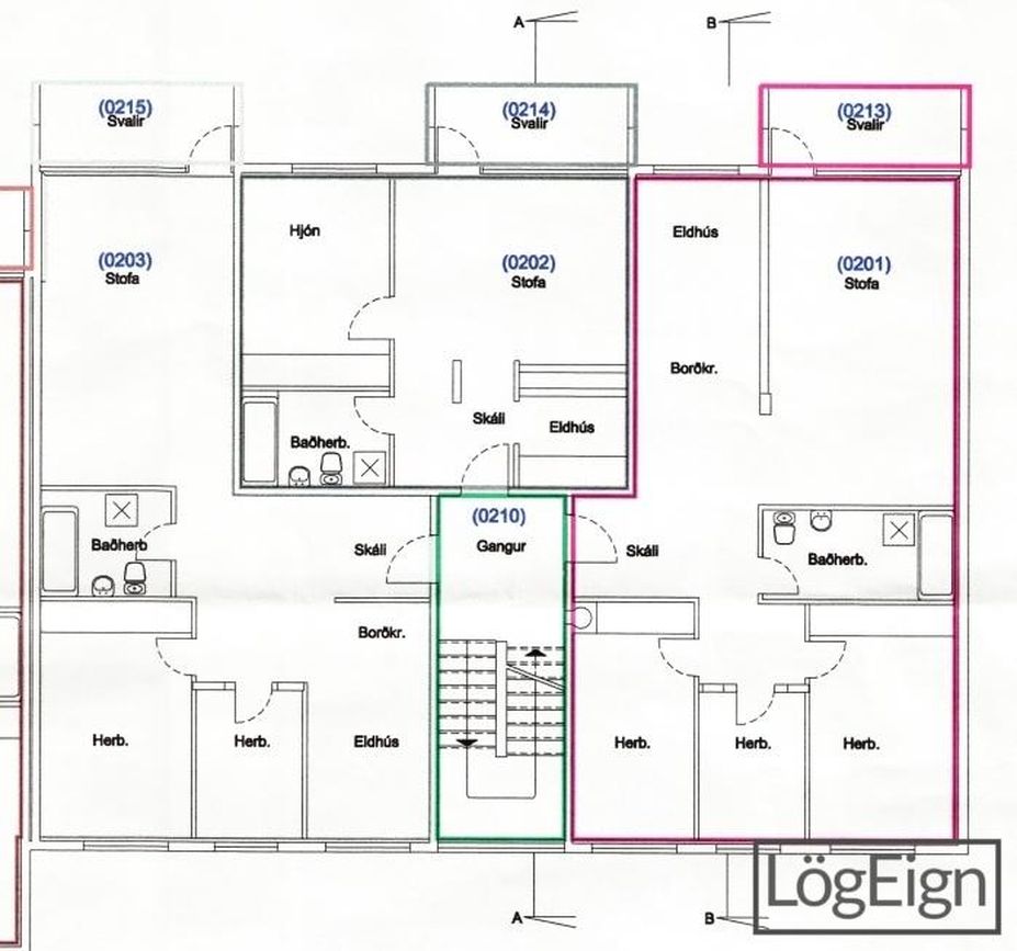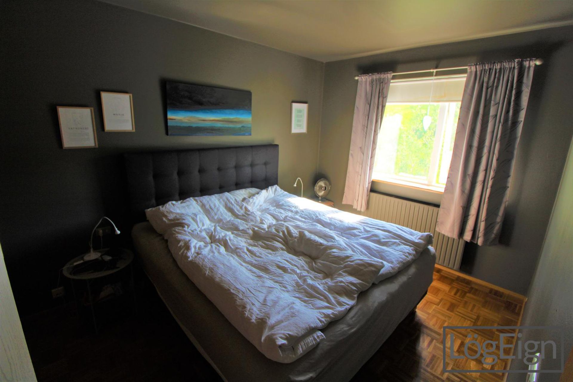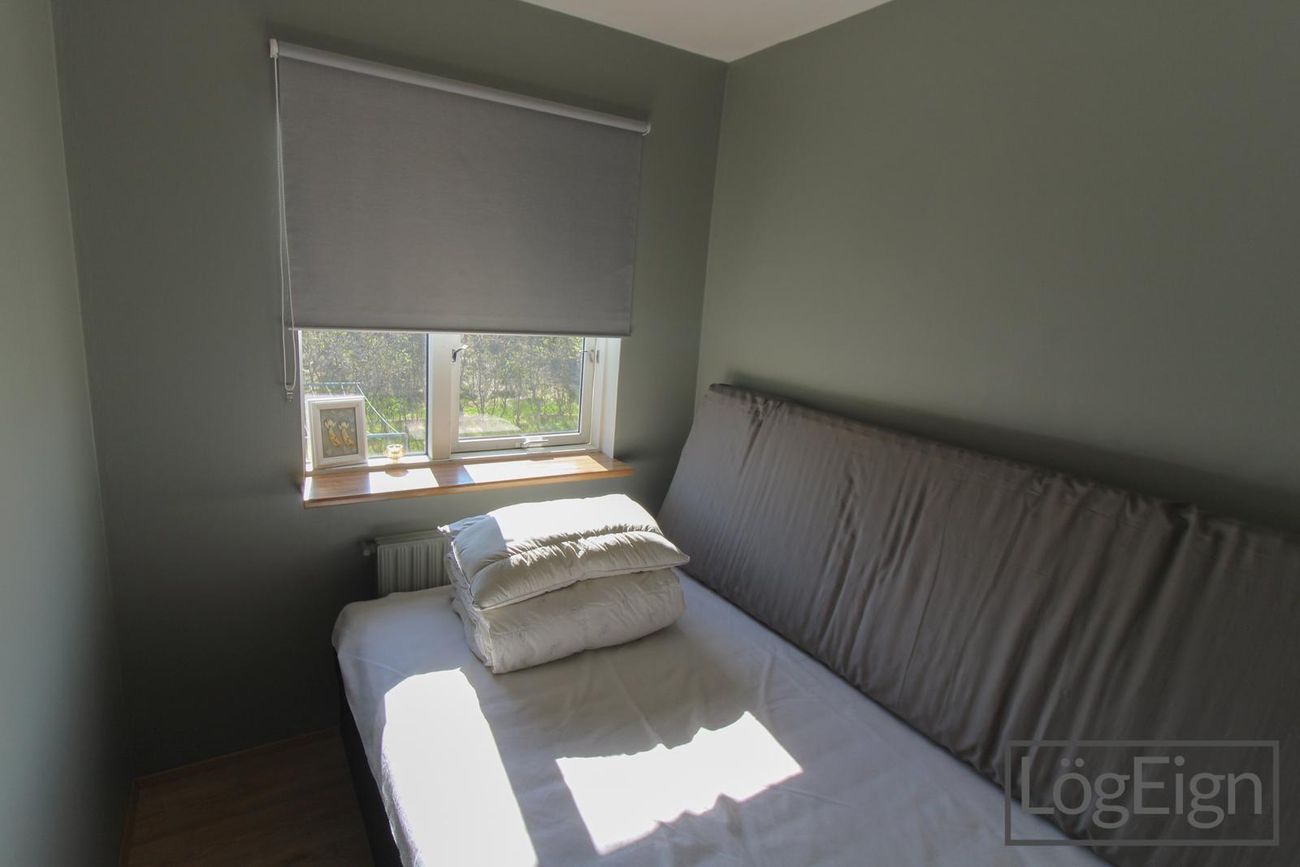 Svefnherbergin: eru þrjú, öll með parket á gólfi og tvö þeirra með föstum fataskápum.