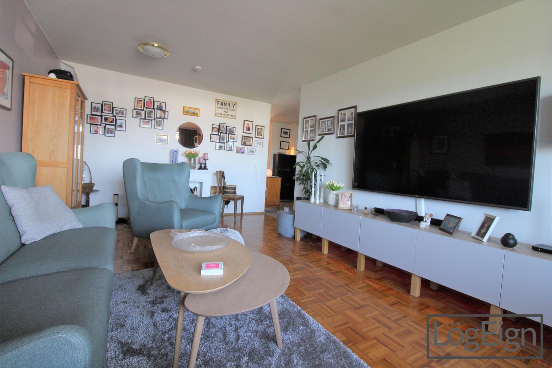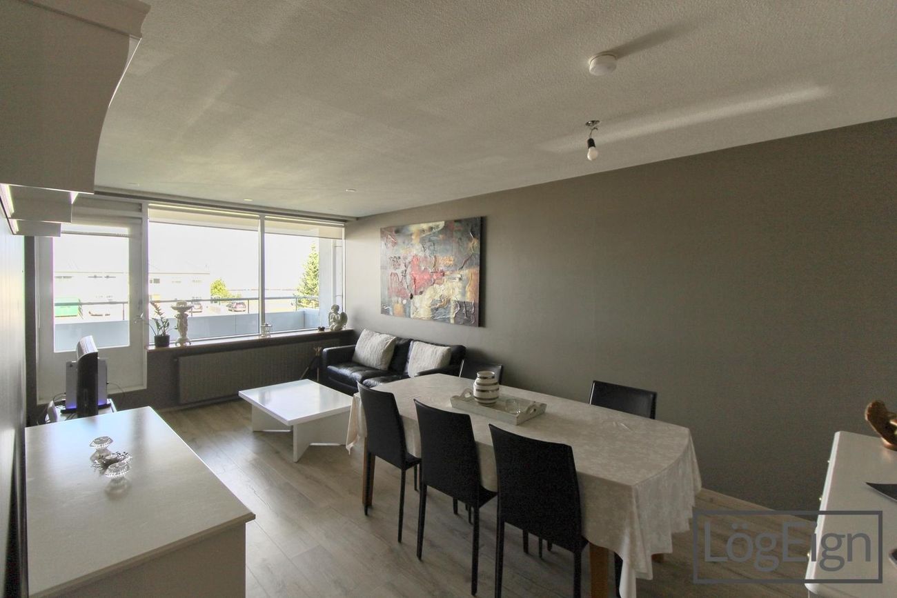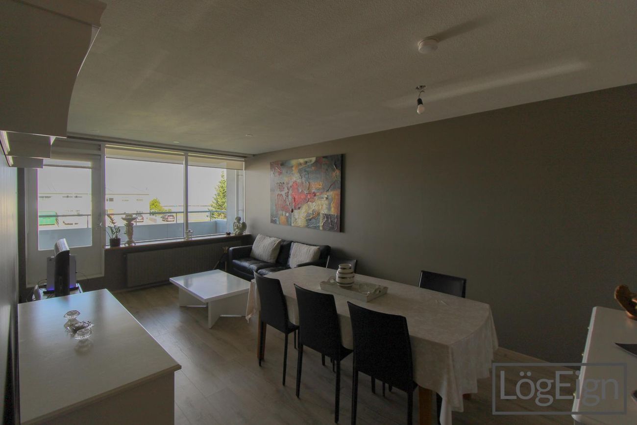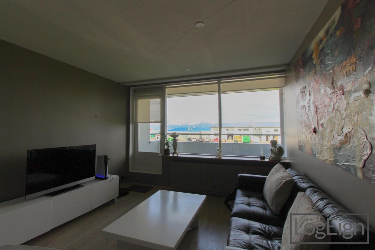 Stofan: er rúmgóð með parket á gólfi og útsýni til vesturs. Útgengt er úr stofu út á svalir íbúðar.