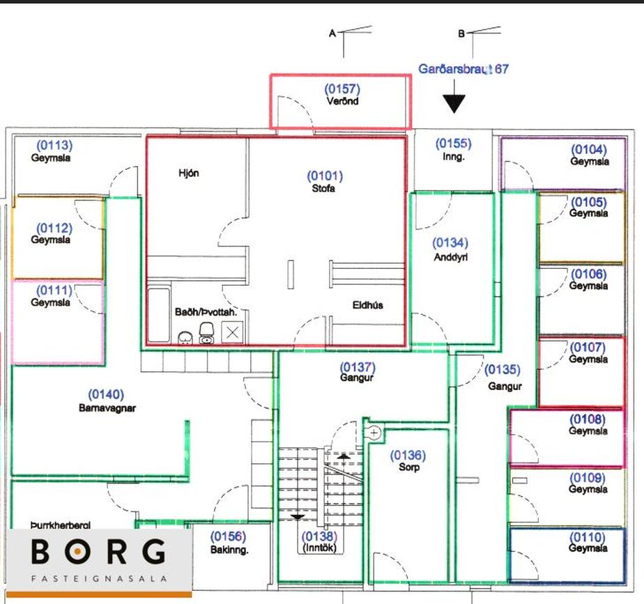 alls 6,5 fermetrar er á jarðhæð hússins ásamt sameignilegri vagna- og hjólageymslu ásamt þurrkherbergi.