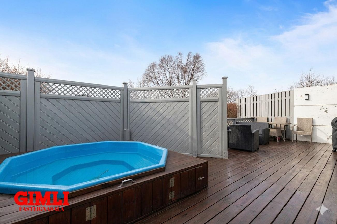 Gimli fasteignasala og Herdís Valb. Hölludóttir kynna: Fallegt og mikið endurnýjað 164.2 fm, 5-6 herbergja raðhús á tveimur hæðum með aukinni lofthæð, sólríkum garði og góðum bílastæðum fyrir framan hús og bílskúr að Geithömrum 13, 112 Reykjavík. Eignin skiptist í, forstofu, gang, baðherbergi, gestasnyrtingu, 3 svefnherbergi, stofu, borðstofu, eldhús, þvottahús, sjónvarpsstofu, geymslu og bílskúr sem er staðsettur gengt húsinu. Sólríkur og skjólgóður garður með timburverönd, heitum potti og rótgrónum afgirtum garði. Húsið er staðsett í eftirsóttu og rótgrónum hverfi þar sem skóli er í nokkurra metra fjarlægð.