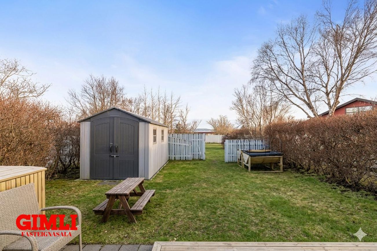 Bílskúr: Er staðsettur gengt húsinum. Bílskúrinn er rúmgóður með glugga, geymslurými, rafmagni, hita, vatni og rafknúnum hurðaopnara.