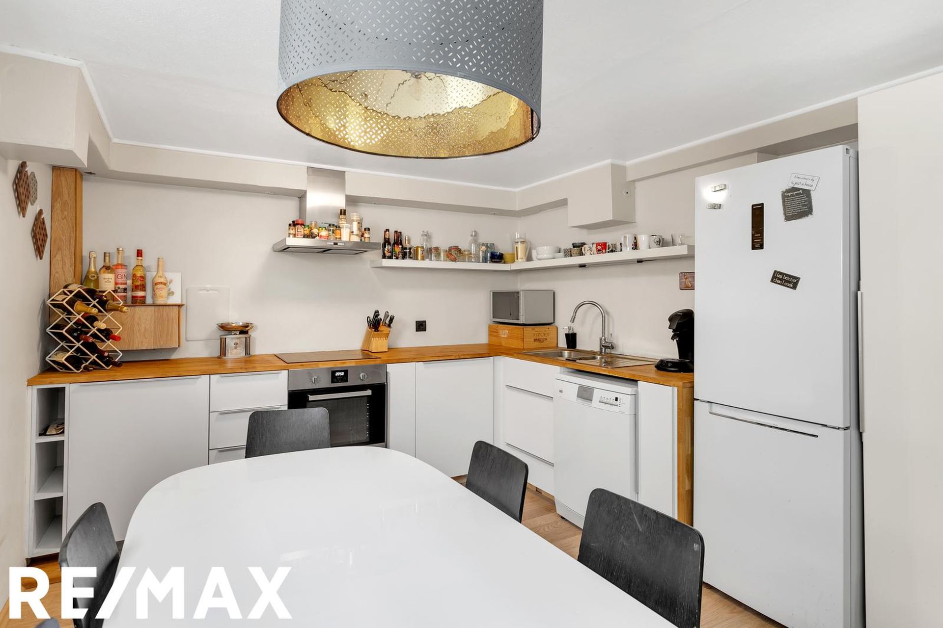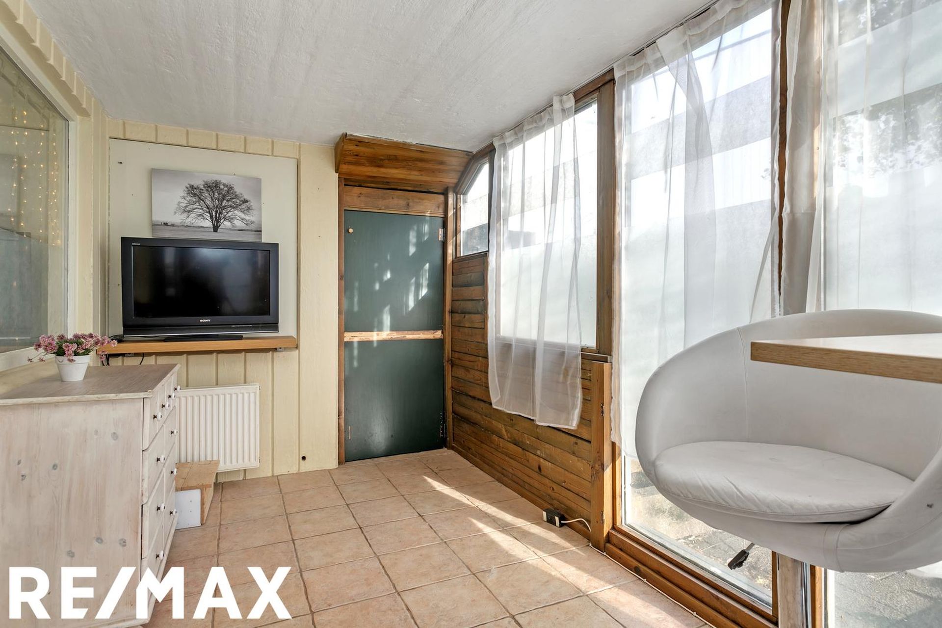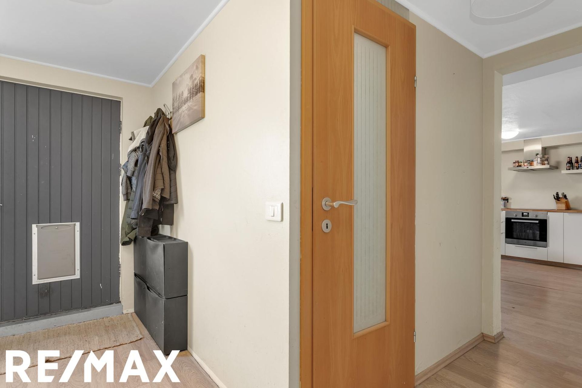 Nánari lýsing: Forstofa með fatahengi og harðparketi á gólfi. Eldhús er með hvítri fallegri innréttingu og viðarborðplötu. Tengi fyrir uppþvottavél og ísskáp. Rúmgott rými þar sem rúmast vel fyrir eldhúsborði. Harðparket á gófli. Baðherbergi er með handlaug, salerni og flísalögðum sturtuklefa með hengi. Flísar á gólfi og veggjum. Stofa er rúmgóð og þaðan er gengið út á yfirbyggðan skála sem er ekki inn í fermetra tölu íbúðarinnar. Harðparket á gólfi. Svefnherbergin 2 eru rúmgóð með harðparketi á gólfi. Þvottaherbergi er með tengi fyrir þvottavél og þurrkara. Borðplata og efri skápar. Sérgeymsla er stór og gengið í hana af verönd, hún er ekki inn í fermetratölu íbúðarinnar. Garður er allur stór timburverönd sem er sérafnotaréttur íbúðar.