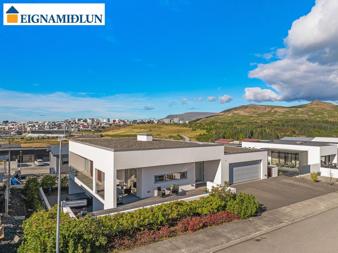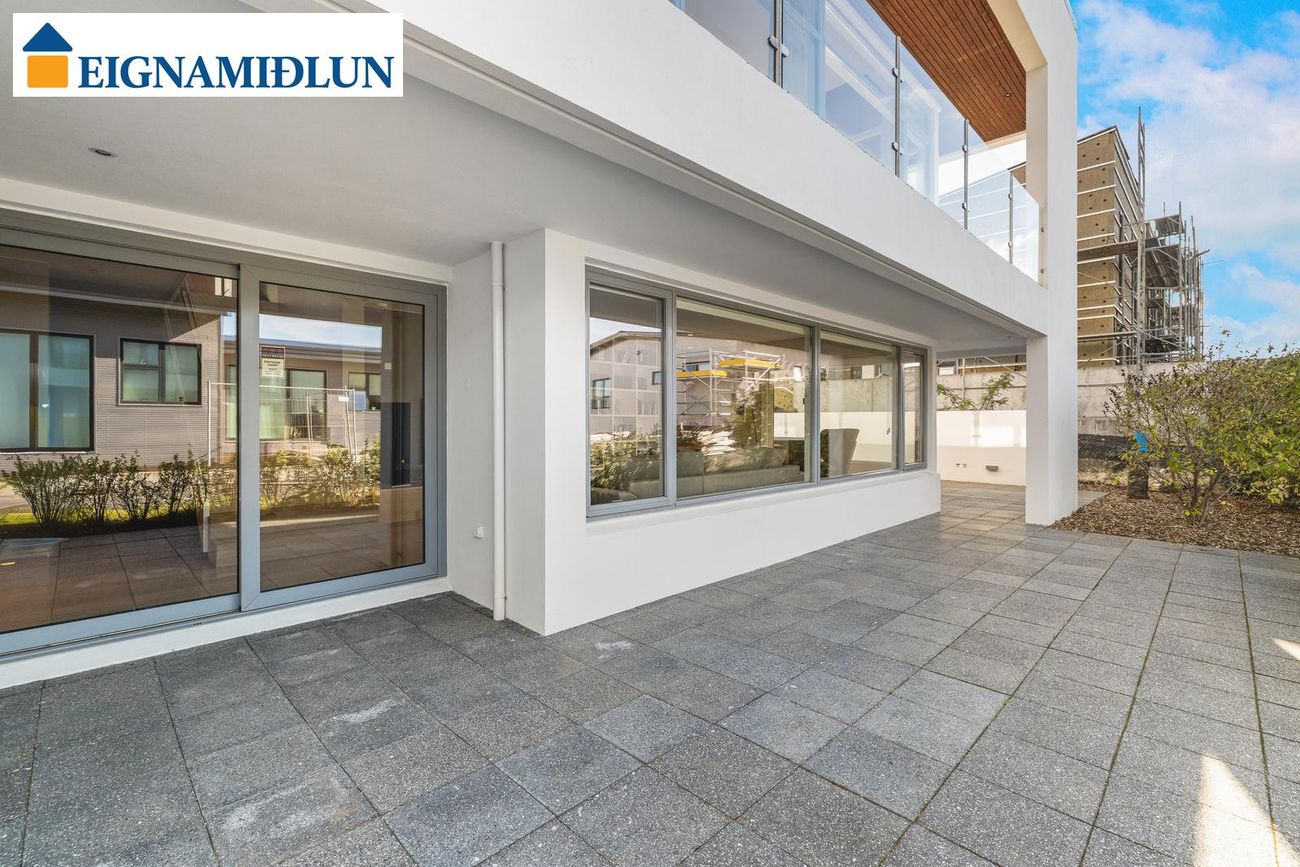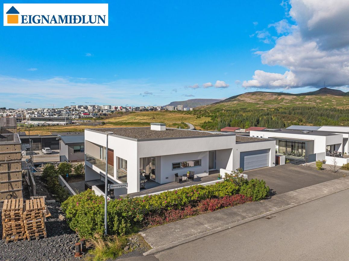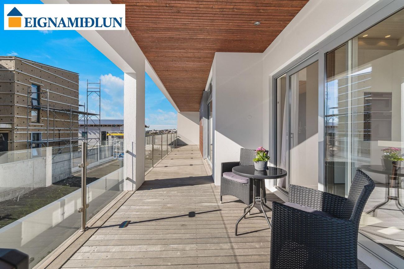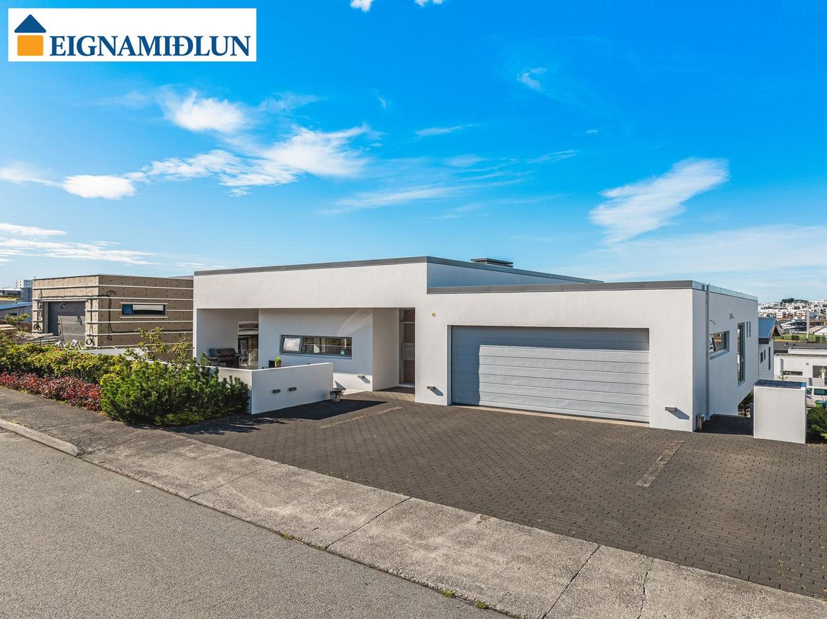 Húsið stendur á snyrtilegri lóð meðupphitað bílaplan sem rúmar vel þrjá bíla. Timburverönd er við inngang við suðurhorn hússins og steyptir skjólveggir. Frá verönd er gengið út á svalir sem eru meðfram suð- og vesturhlið hússins. Einnig er hægt að ganga niður á hellulagða verönd með heitum potti.