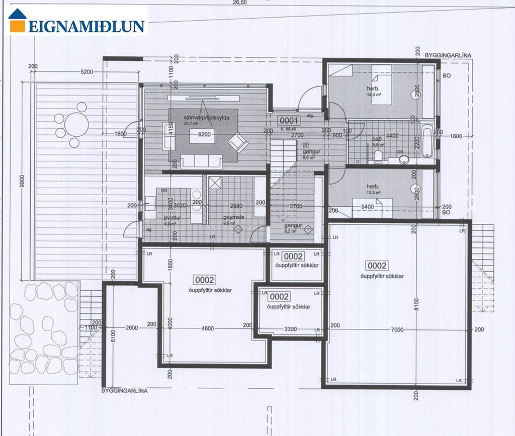 Á hæðinni er ca. 120 fm rými sem er óskráð og er í dag nýtt sem tómstundarherbergi og geymslur. Óskráða rýmið er gluggalaust en með loftræstingu. Ýmsir möguleikar.