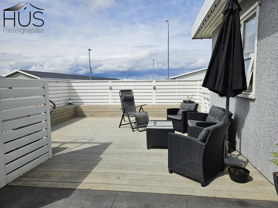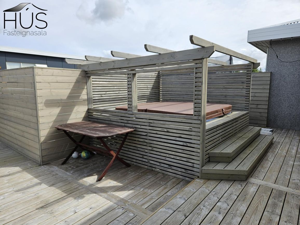 Húsið er steníklætt timburhús byggt 2006. Rúmgóð steypt innkeyrsla. Tveir aflokaðir sólpallar og heitur pottur. Grasflöt meðfram húsgafli.