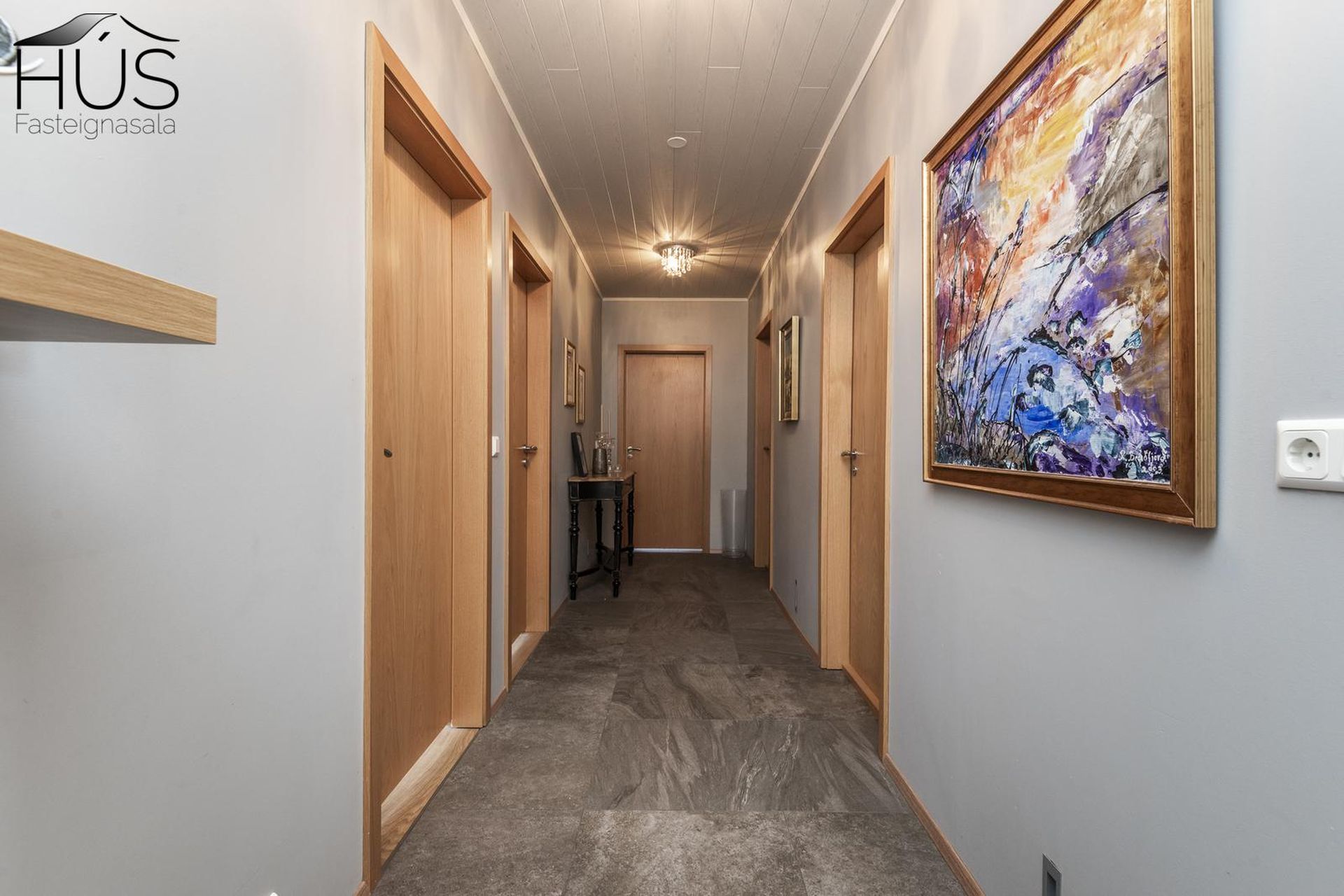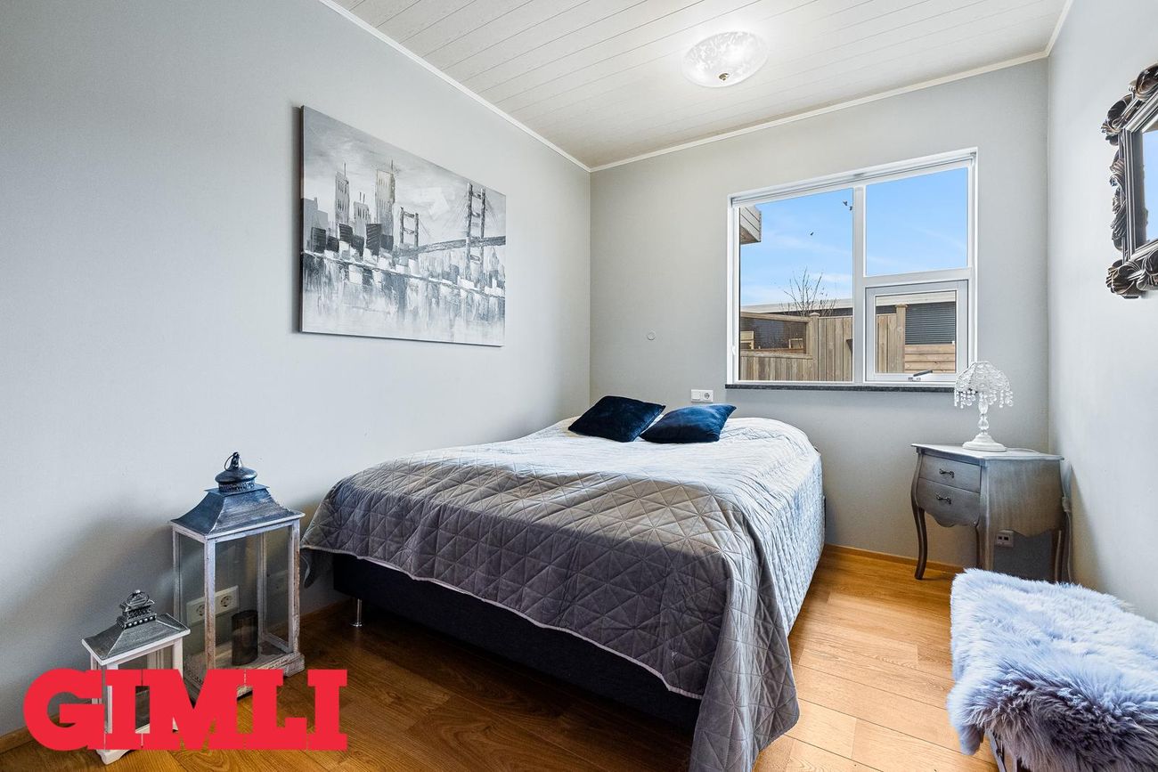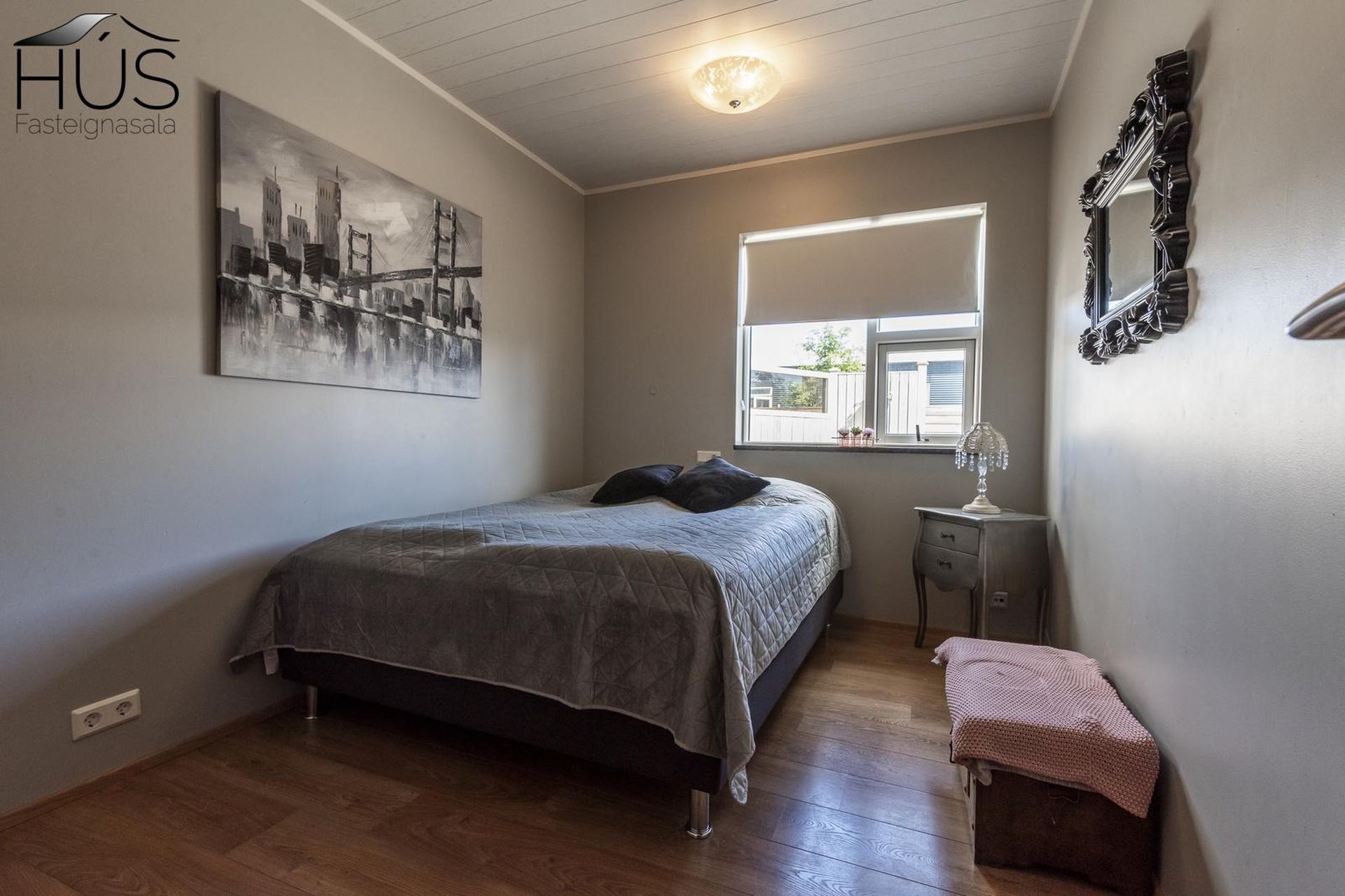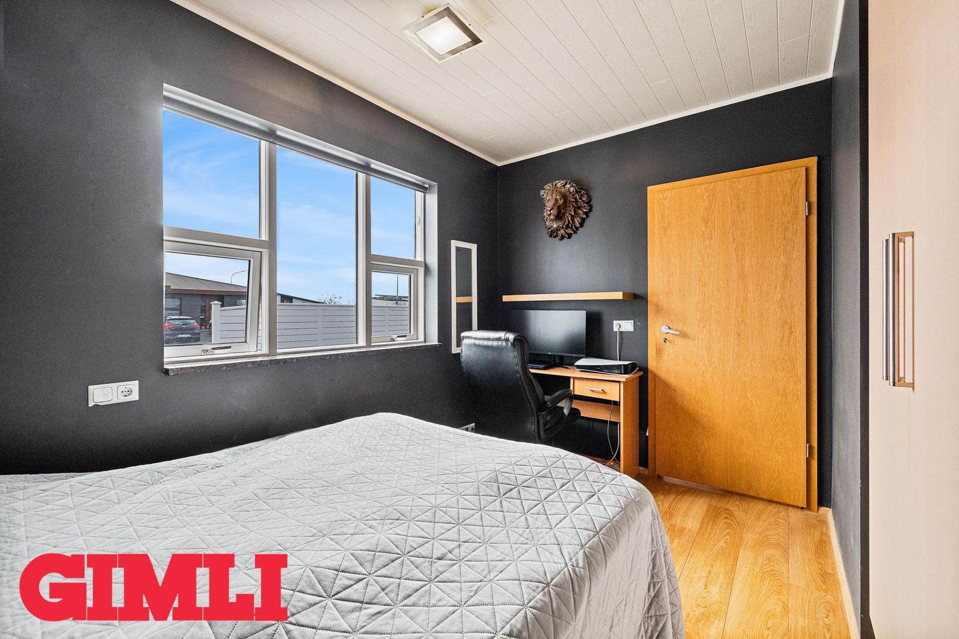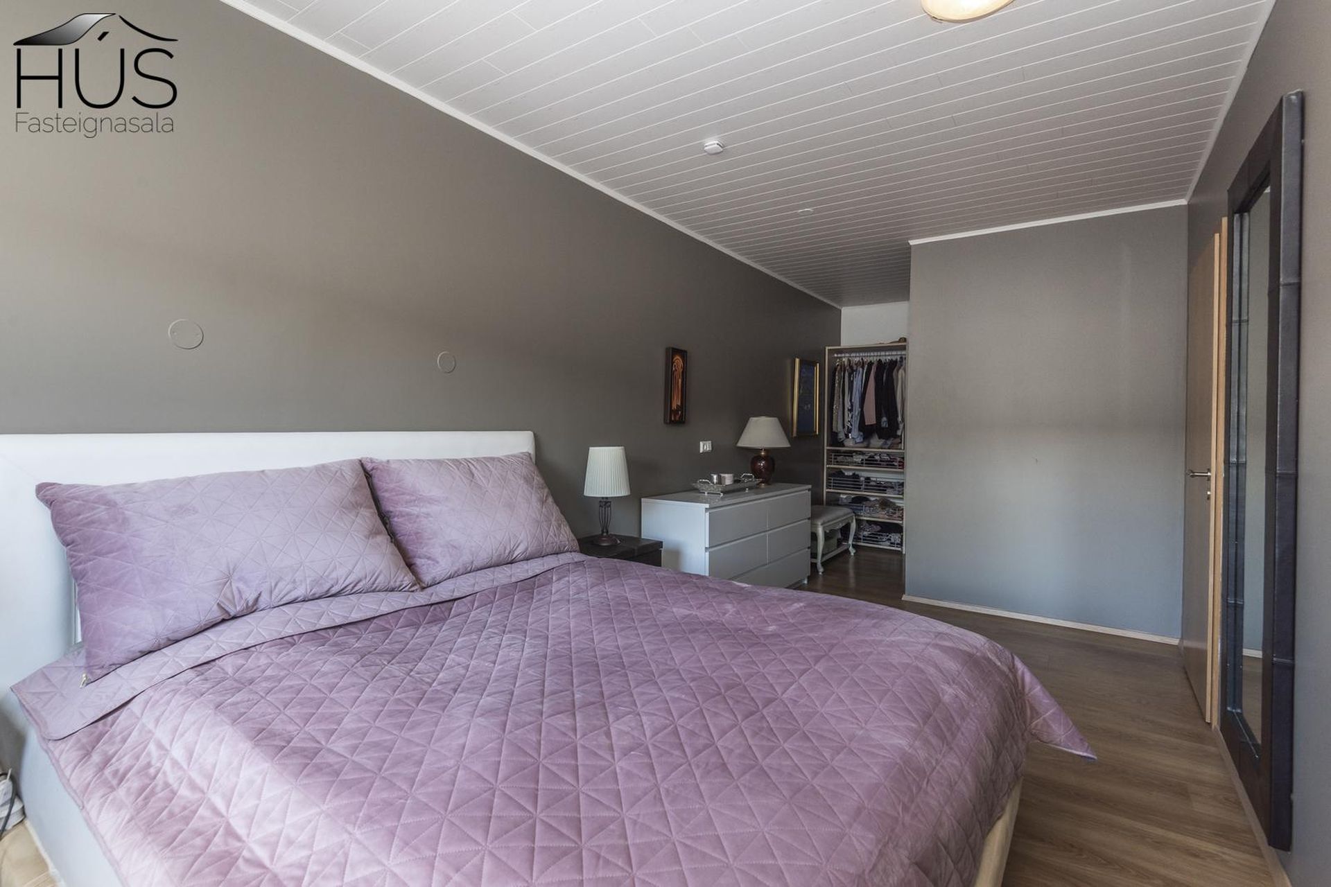 Hjónaherbergi 19,8fm með fataherbergi. Þrjú barnaherbergi (10,3fm, 10,5fm, 13,5fm) með fataskápum. Eitt herbergi notað sem sjónvarpsherbergi með útgöngu í garð.