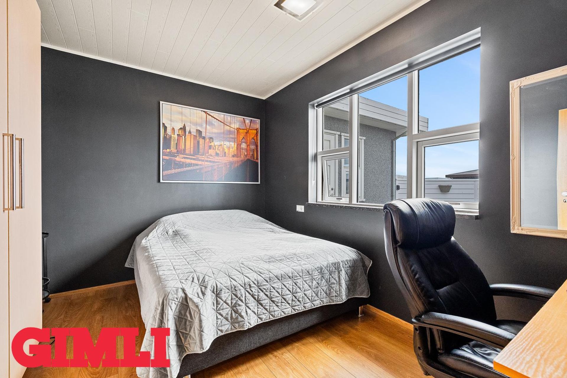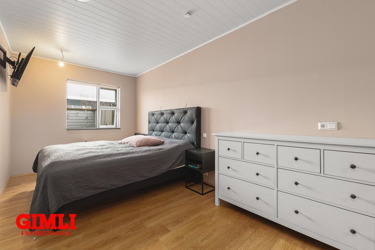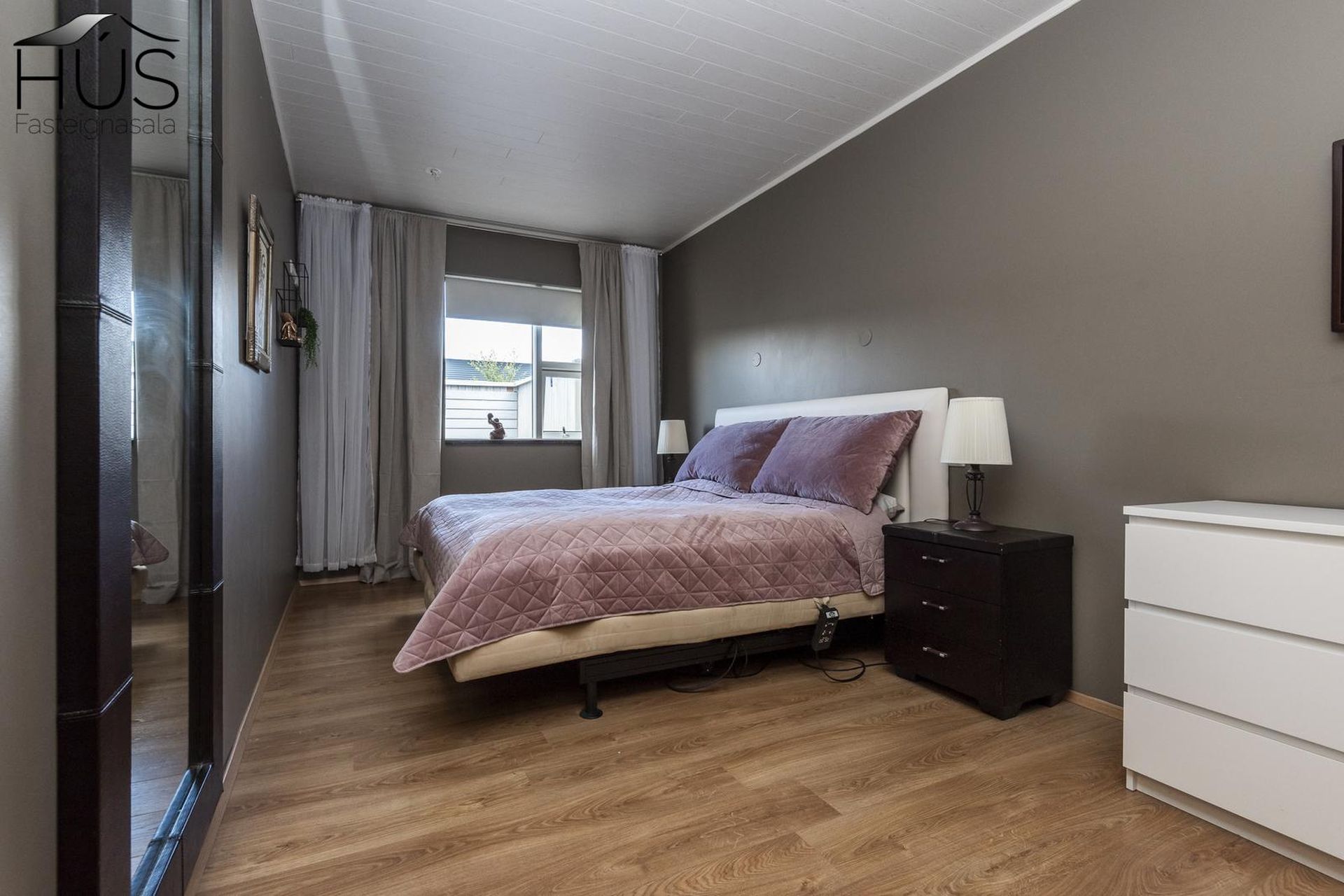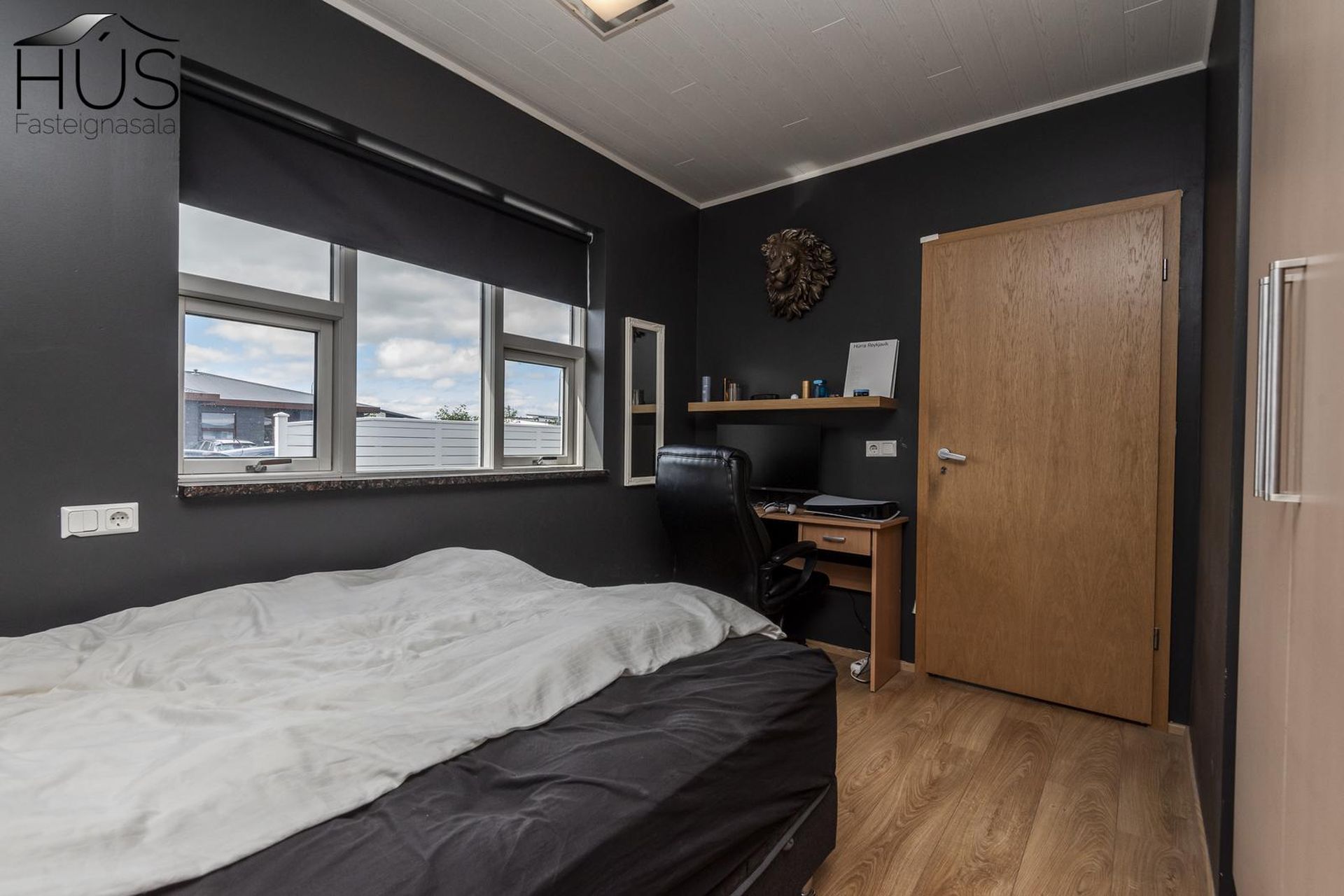 Hjónaherbergi 19,8fm með fataherbergi. Þrjú barnaherbergi (10,3fm, 10,5fm, 13,5fm) með fataskápum. Eitt herbergi notað sem sjónvarpsherbergi með útgöngu í garð.