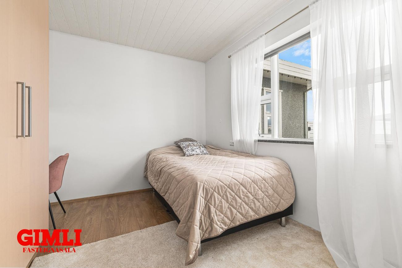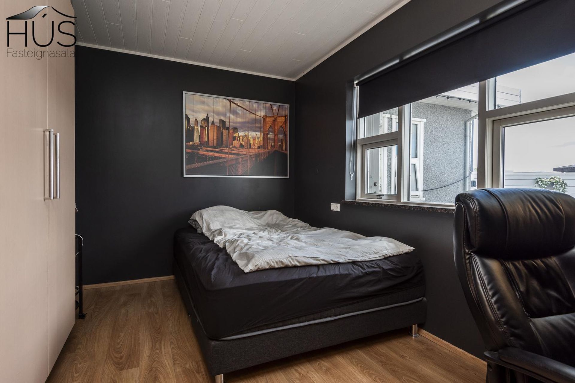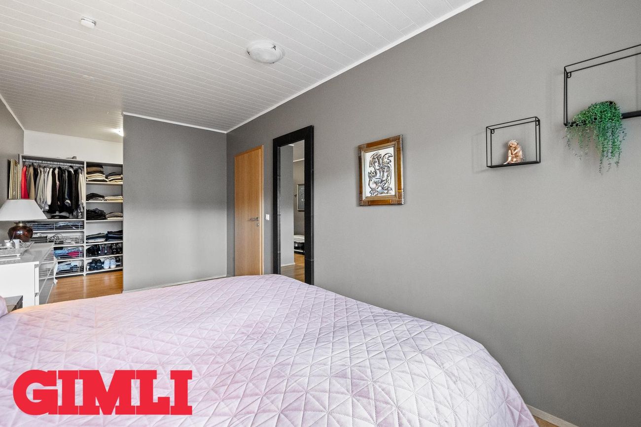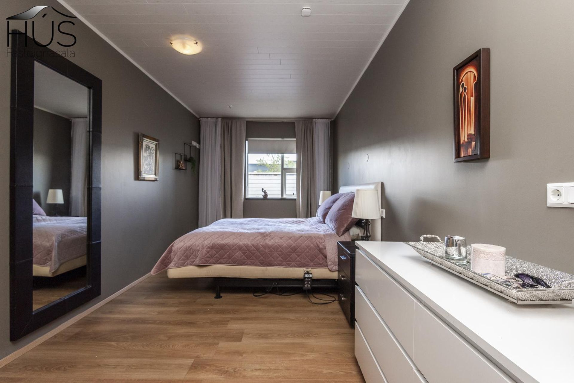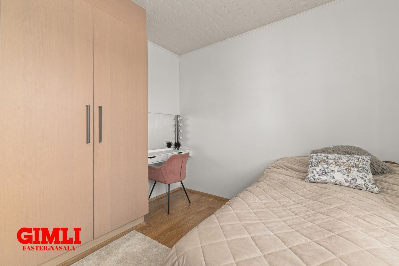Hjónaherbergi 19,8fm með fataherbergi. Þrjú barnaherbergi (10,3fm, 10,5fm, 13,5fm) með fataskápum. Eitt herbergi notað sem sjónvarpsherbergi með útgöngu í garð.