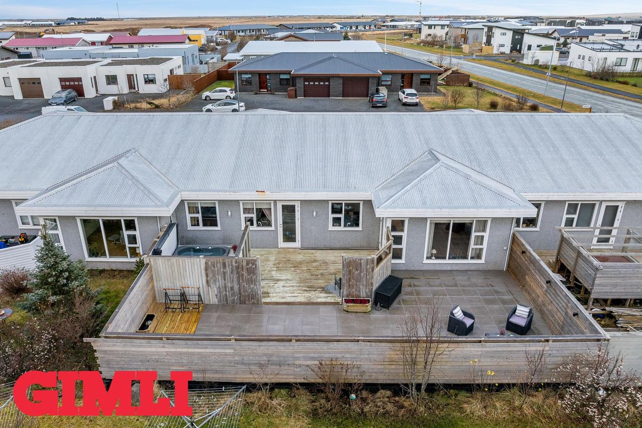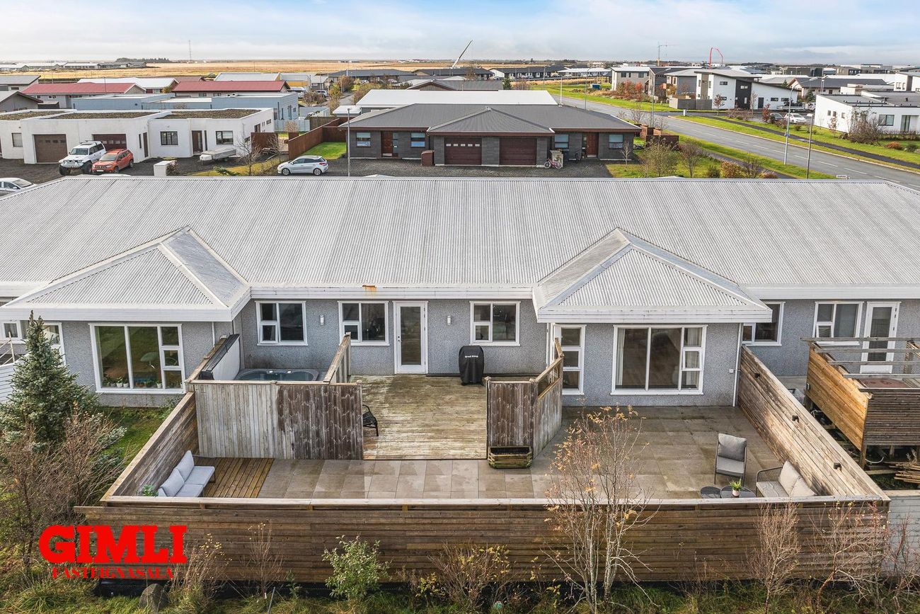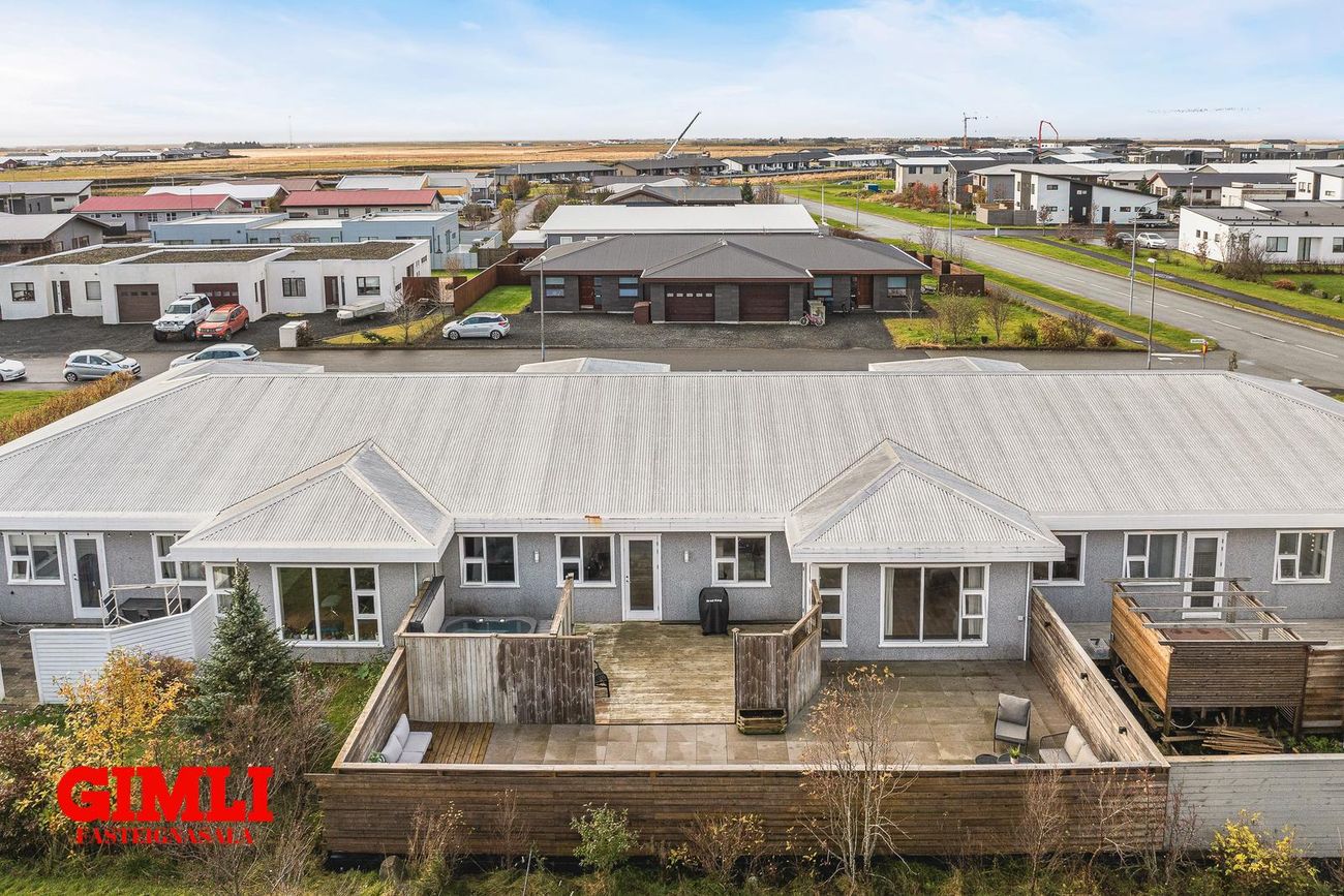 Raðhús í vinsællum stað á Selfossi. Forstofa, stofa/borðstofa í opnu rými, fjögur svefnherbergi, baðherbergi, þvottahús og bílskúr. Tvö útisvæði samtals 130fm með heitum potti og sólríkri verönd.