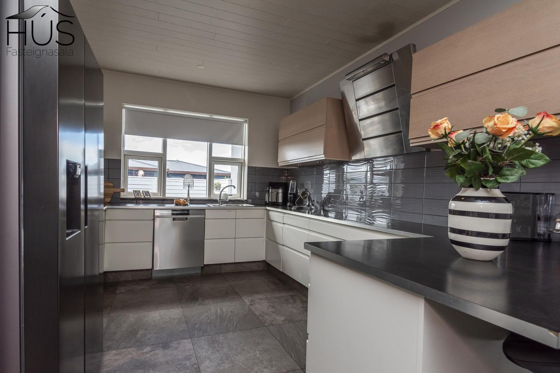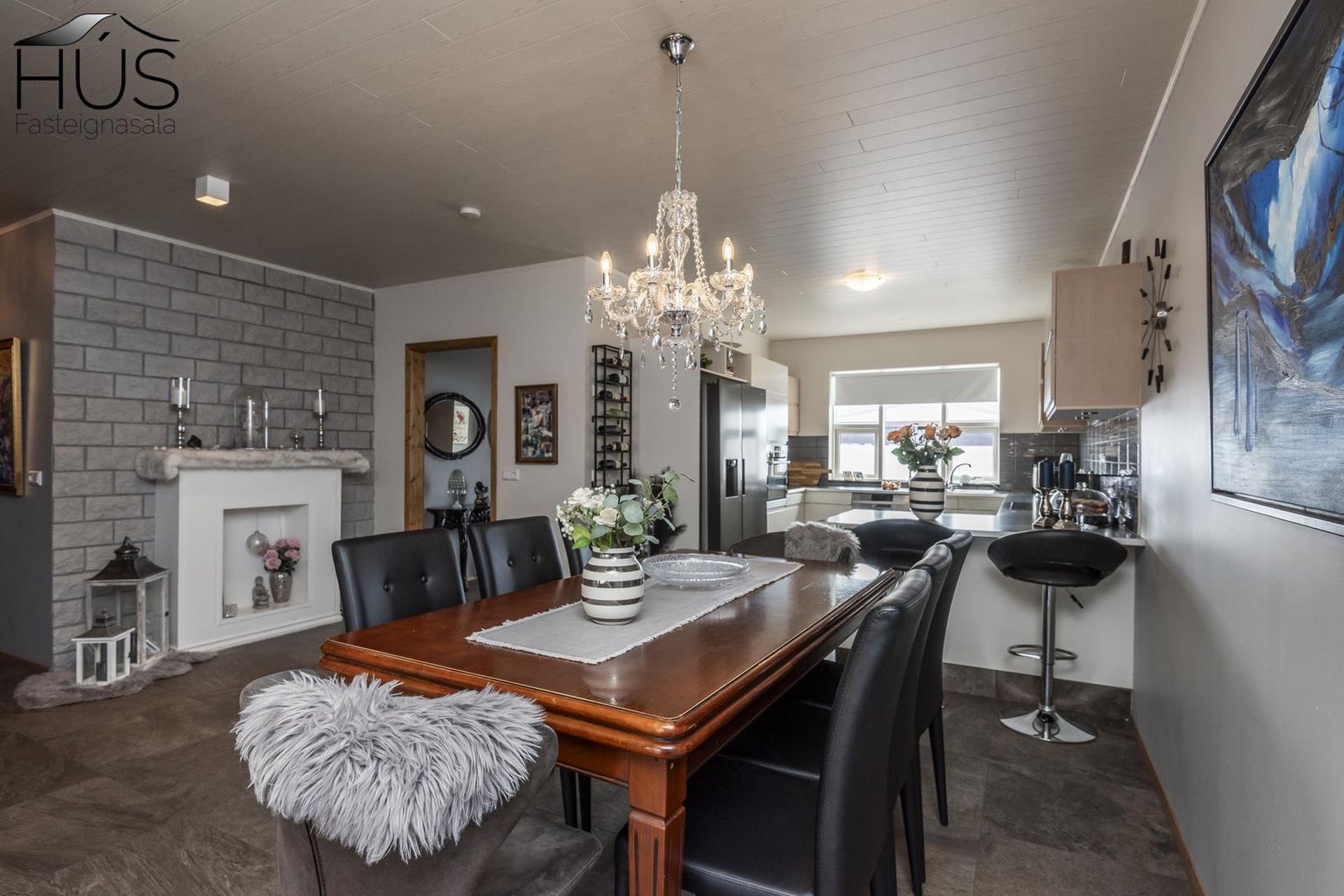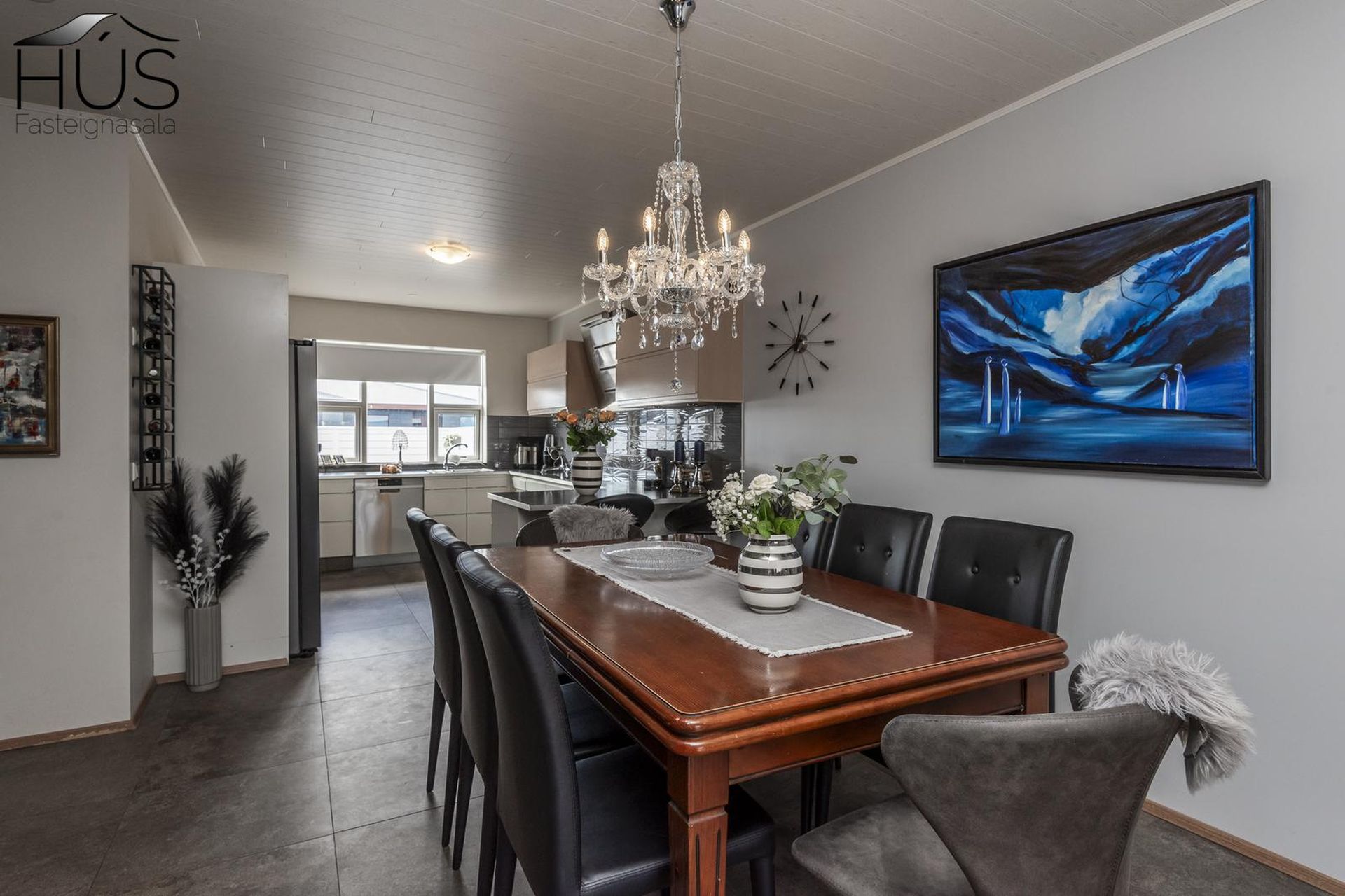 Raðhús í vinsællum stað á Selfossi. Forstofa, stofa/borðstofa í opnu rými, fjögur svefnherbergi, baðherbergi, þvottahús og bílskúr. Tvö útisvæði samtals 130fm með heitum potti og sólríkri verönd.