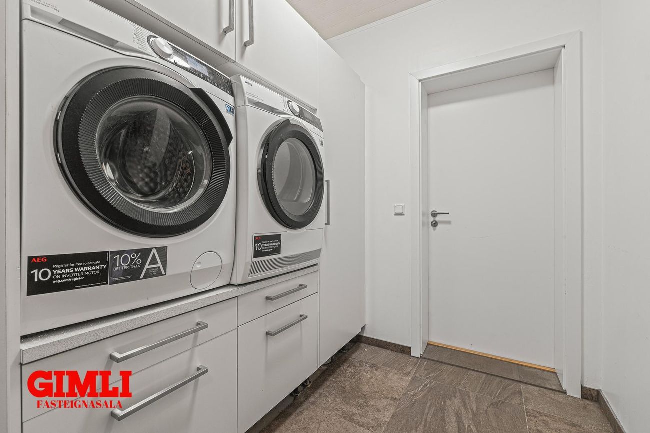 4,6fm þvottahús með plássi fyrir þvottavél og þurrkara. Flísalagt gólf og innangengt í bílskúr.